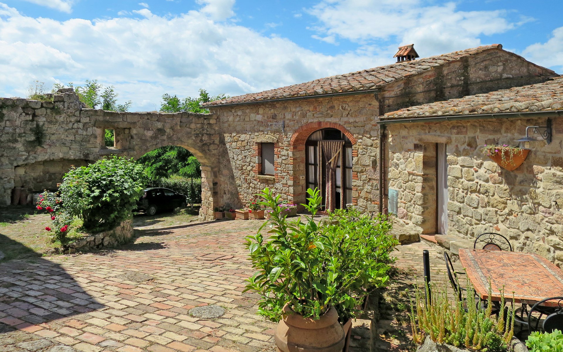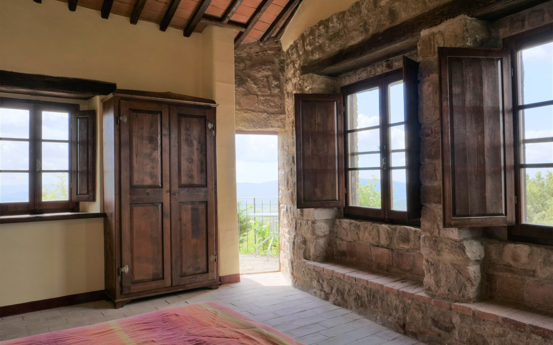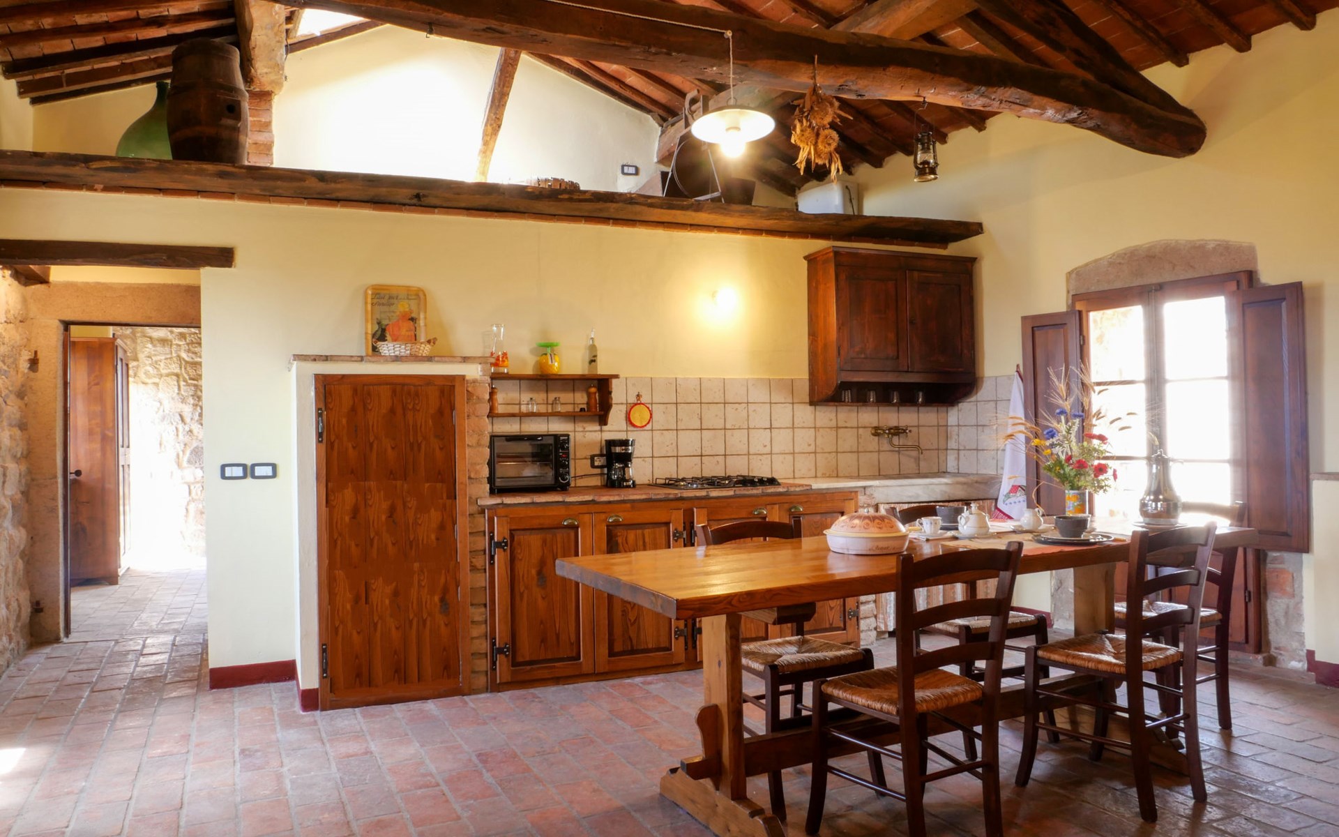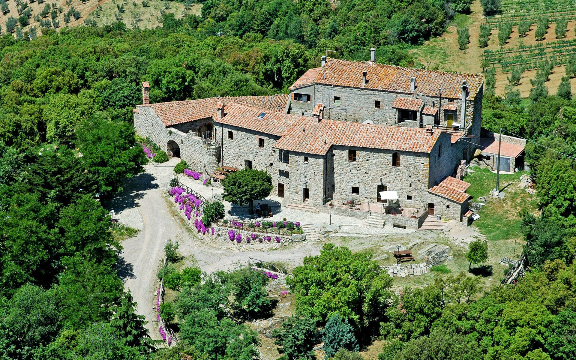 Rustieke, historisch landhuis "Borgo la Civitella", uit de 13e eeuw, omgeven door bomen en velden. 8 appartementen in de woning. 3.3 km van het centrum van Roccastrada, geïsoleerde, zonnige, verhoogde ligging, 40 km van zee. In het huis: wasmachine (voor medegebruik, extra). 600 m lange rommelige toegangsweg. Parkeerplaats op 50 m. Winkel 3.3 km, supermarkt 3.3 km, bushalte 1.5 km, treinstation "Roccastrada" 5 km, veerboot "Piombino" 66 km, meer Accesa 30 km. Jachthaven 44 km, golfterrein (18 holes) 41 km. Attracties in de buurt: Massa Marittima 30 km, Grosseto 35 km, Siena 55 km. Wandelgebied Mountain-bike 2 km. Auto noodzakelijk.