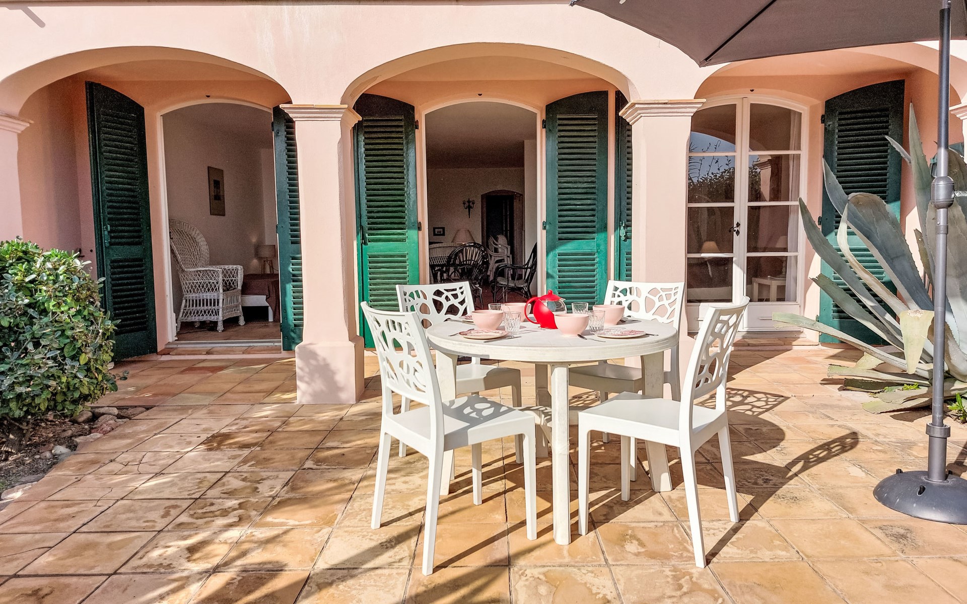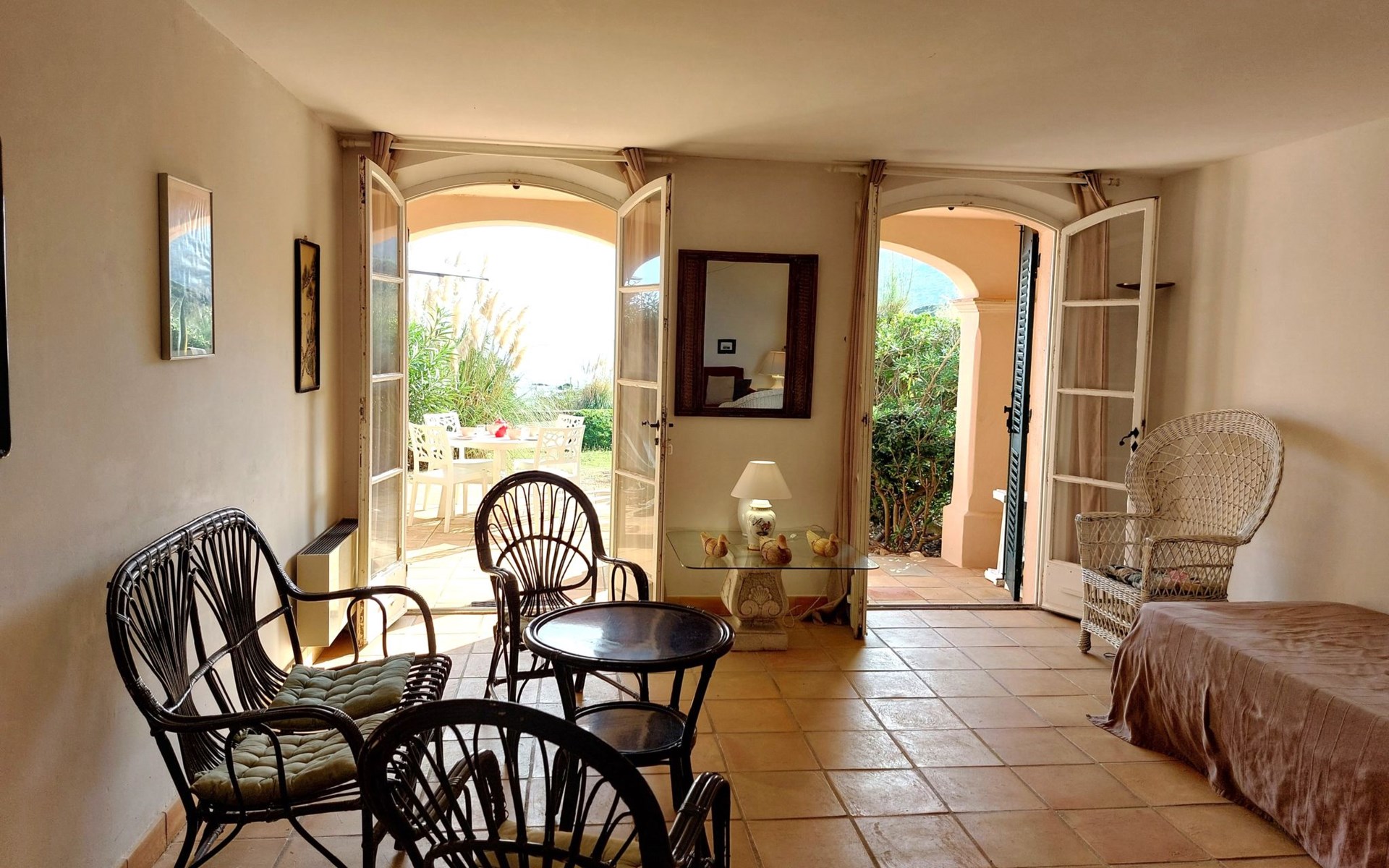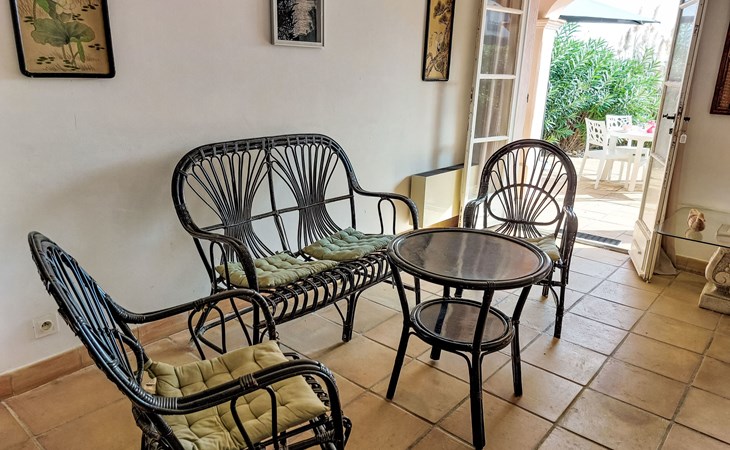 Ramatuelle 12 km van Saint-Tropez: Landgoed "Bonne Terrasse". Buiten de plaats, rustige ligging, 20 m van zee, 20 m van het strand, directe toegang tot het strand. Voor medegebruik: openluchtzwembad (18 x 6 m, 120 - 210 cm diepte, seizoensgebonden beschikbaarheid: 01.Jun. - 15.Sep.). Poolhouse, tennisbaan (extra). Winkel 6 km, levensmiddelenwinkel 6 km, supermarkt 6 km, winkelcentrum 10 km, restaurant 400 m, bushalte "Les Pins" 7.4 km, zandstrand "Bonne Terrasse" 20 m. Attracties in de buurt: Pampelonne 7 km, Saint Tropez 10 km, Parc d'attractions Azur Park 13 km, Port Grimaud 16 km, Cannes 93 km, Nice 115 km. Bekende meren kunnen gemakkelijk worden bereikt: Lac de Sainte Croix 92 km. Wandelgebied Massif de l'Esterel 50 km. Auto noodzakelijk. De sleuteloverdracht vindt plaats bij het agentschap Interhome in Gassin, 11 km.