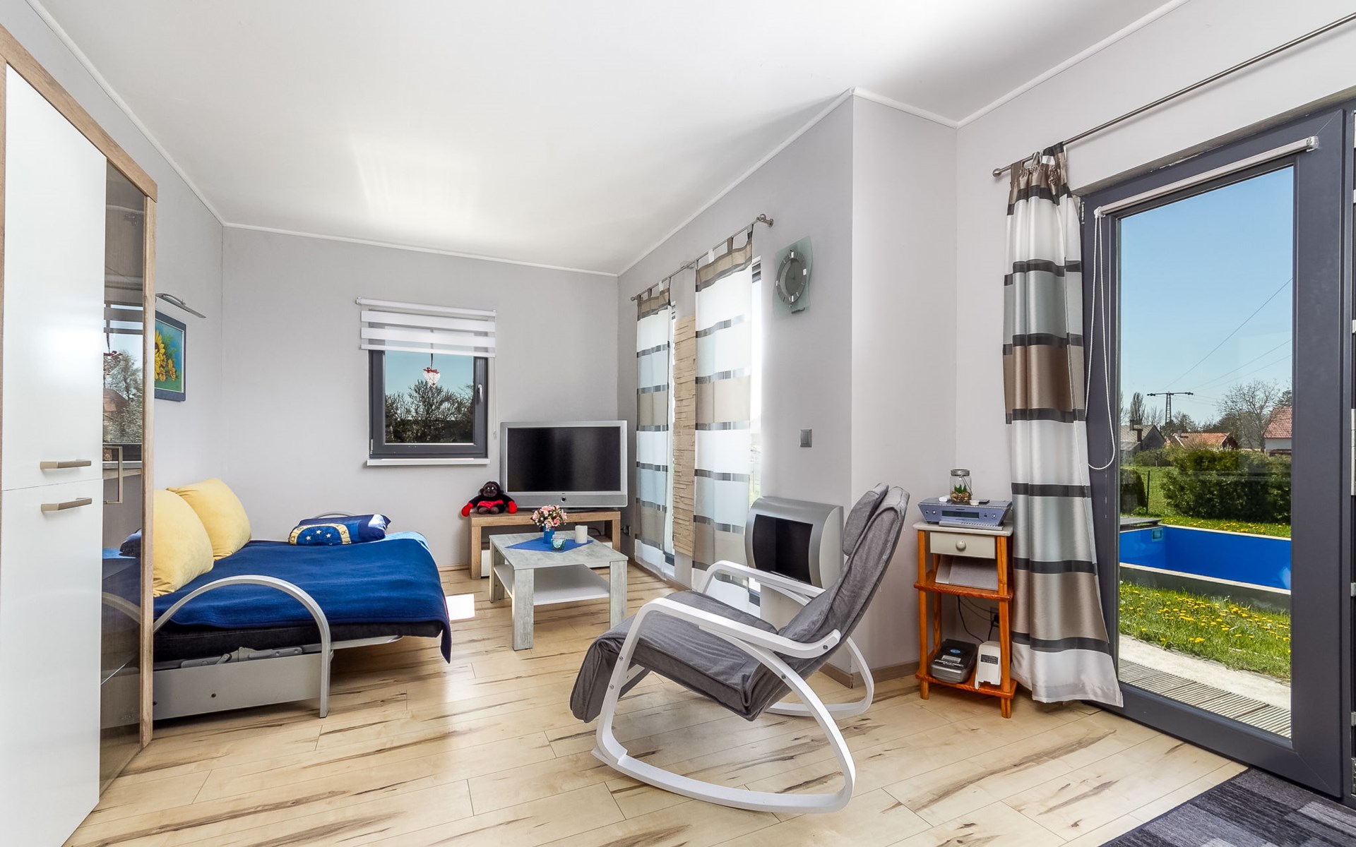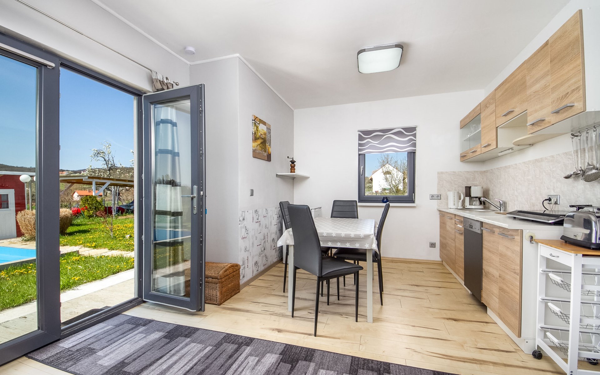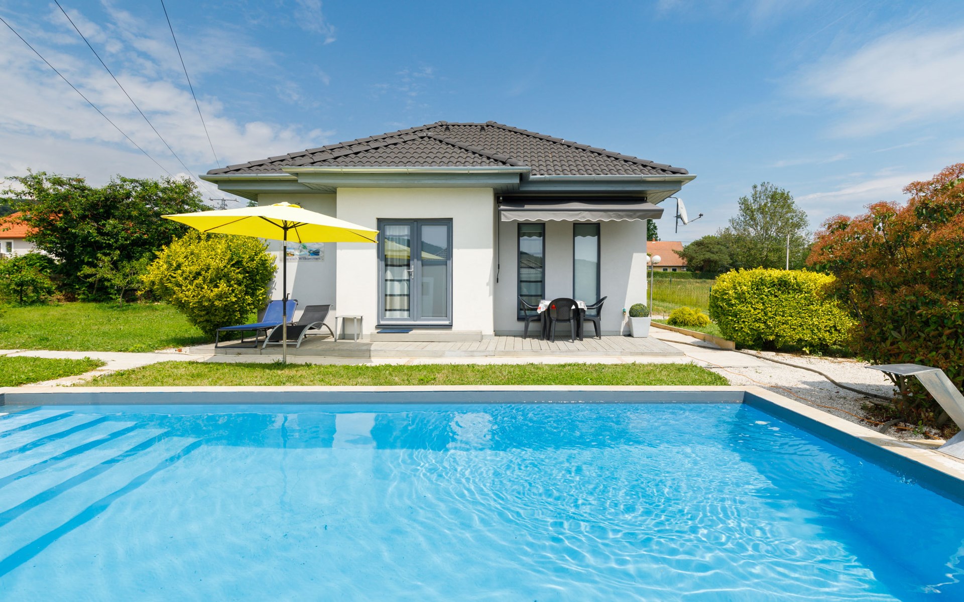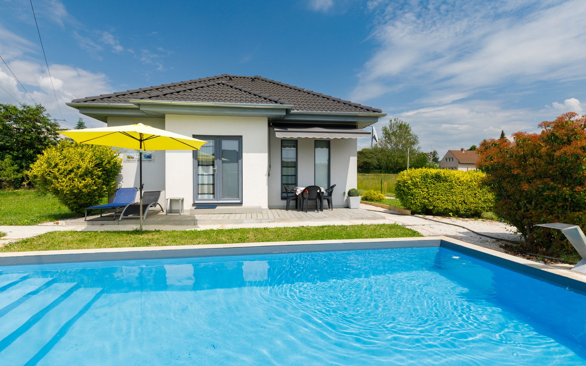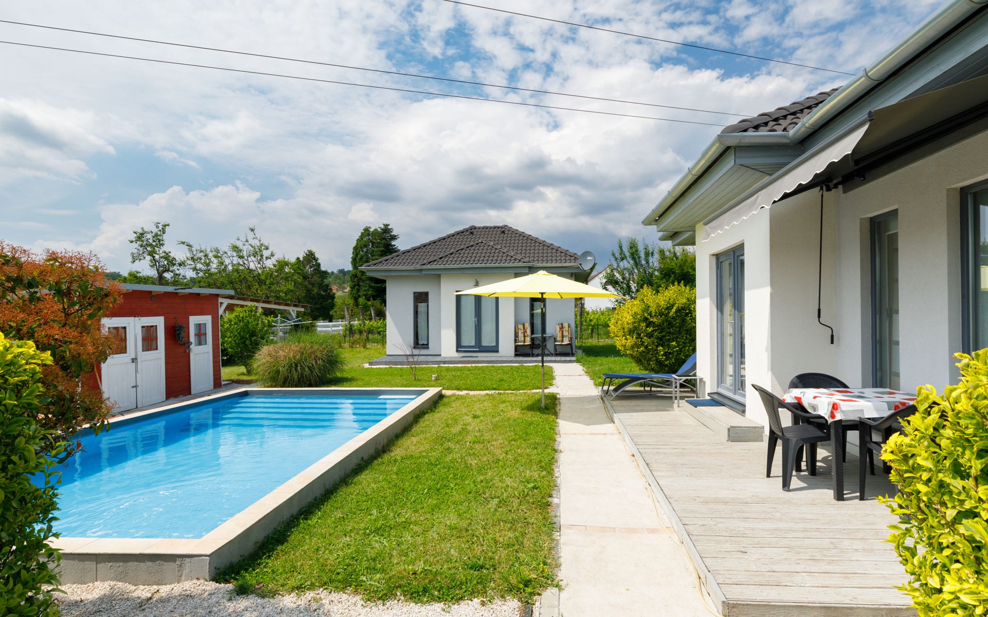 Ábrahámhegy 33 km van Keszthely: Mooi, comfortabel Huis met 2 woningen "Geminis", bouwjaar 2021. In de plaats, rustige ligging, 800 m van het meer, 1 km van het strand. Voor alleengebruik: terrein 800 m2 (omheind), tuin, ligweide, openluchtzwembad hoekig (4 x 7 m, 130 - 140 cm diepte, seizoensgebonden beschikbaarheid: 20.Mei. - 03.Okt.). In het huis: wasmachine. Beschikbaar: fietsen (2). Levensmiddelenwinkel 500 m, restaurant 600 m, grasstrand 800 m.