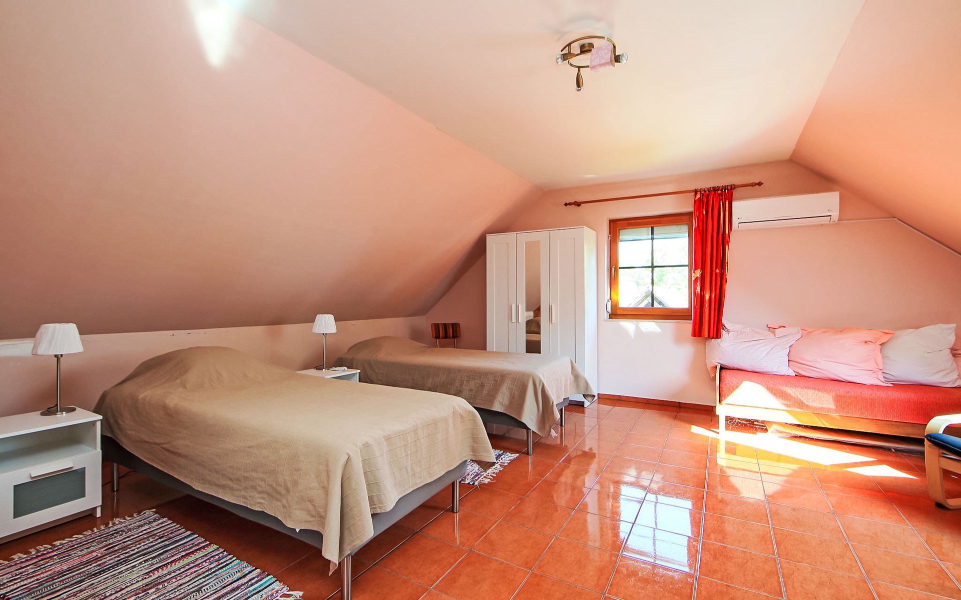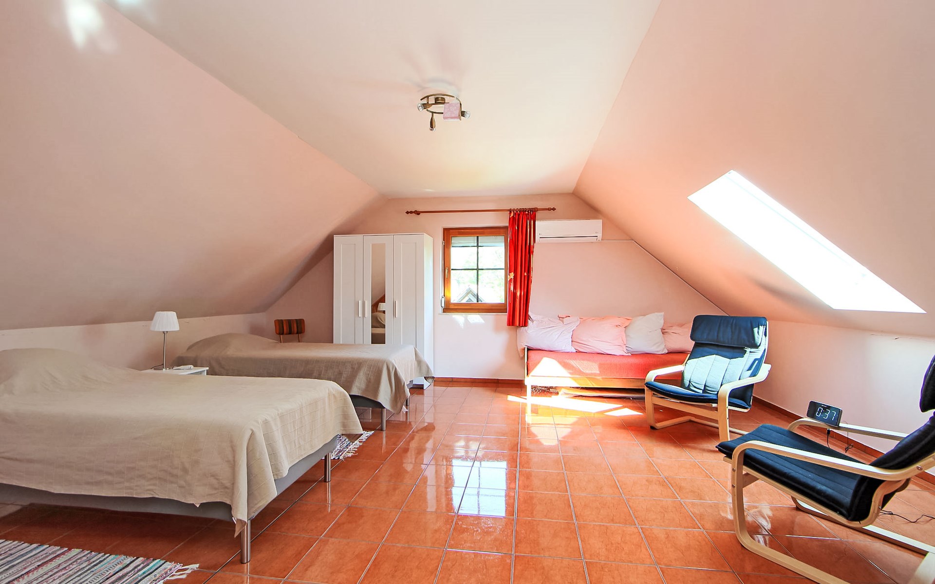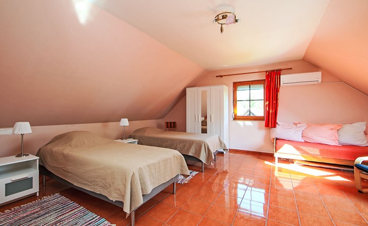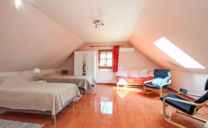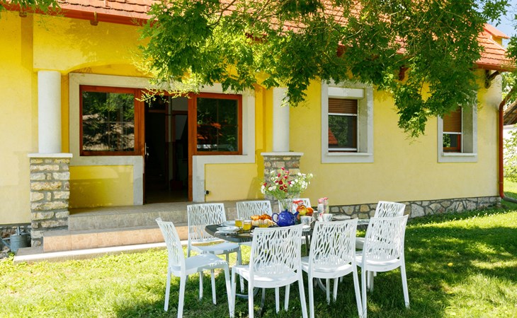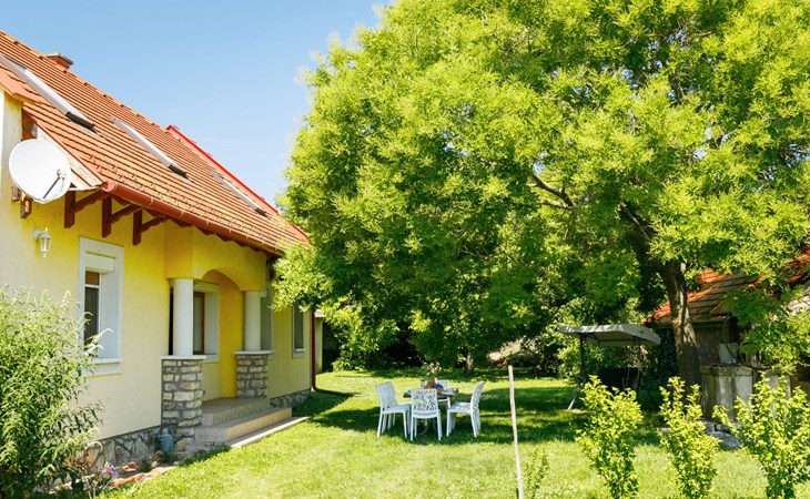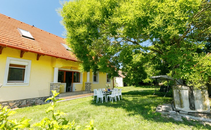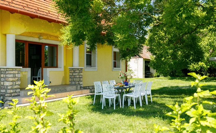 Balatonudvari 8 km van Balatonfüred: Gezellige twee onder één kap woning "Golf Tee", van 2 verdiepingen, bouwjaar 2006. In de plaats, 400 m van het meer, 550 m van het strand, aan een doodlopende weg. Voor medegebruik: terrein 800 m2 (omheind). Voor alleengebruik: tuin 600 m2 met bomen. (zandbak). In het huis: Internet (WiFi), centrale verwarming, air-conditioning, wasmachine. Oplaadstation. Levensmiddelenwinkel 600 m, supermarkt 8 km, restaurant 600 m, fietsverhuur 2 km, bushalte "Balatonudvari" 400 m, treinstation "Balatonudvari" 300 m, veerboot "Tihany" 10 km, grasstrand 500 m, overdekt zwembad 8 km, thermaalbad "Hévíz" 58 km. Golfterrein (18 holes) 1 km, tennishal 8 km, manege 7 km, sportcentrum 8 km, fietspad 100 m, kinderspeelplaats 550 m. Attracties in de buurt: Forrás Sports Park 8 km, Annagora Aquapark 8 km, BalatonBob Theme Park 30 km, Badacsony 29 km, Keszthely, Festetics Castle 53 km, Balaton Golf Club - Balatonudvari 1 km. Groepen jongeren uitsluitend op aanvraag. De sleuteloverdracht vindt plaats bij het agentschap Interhome in Balatonfüred, 10 km.