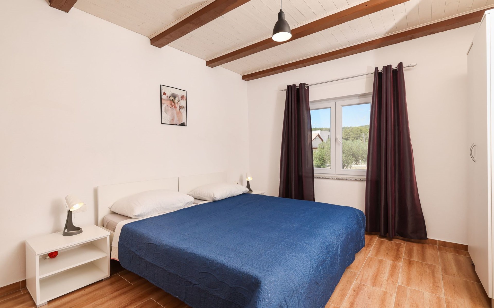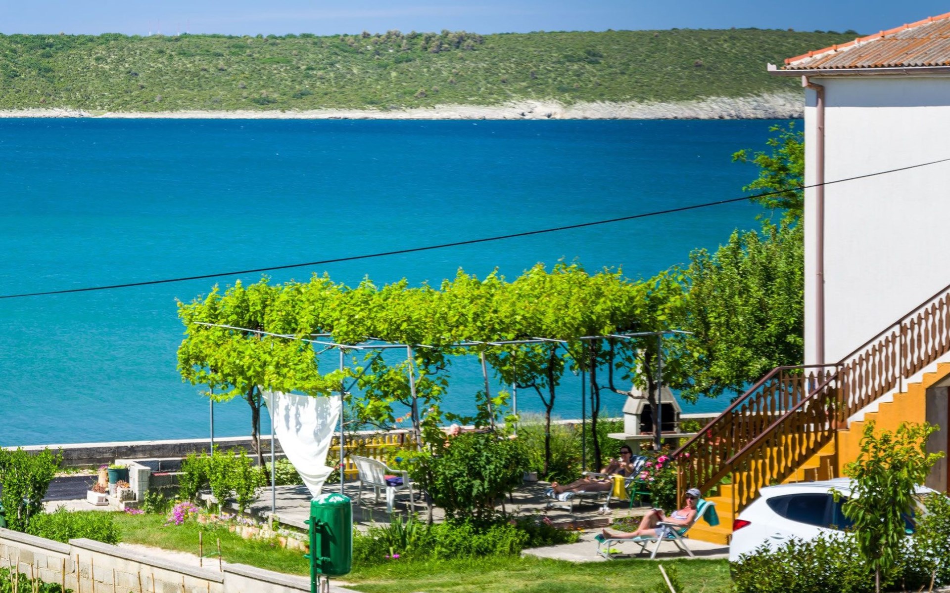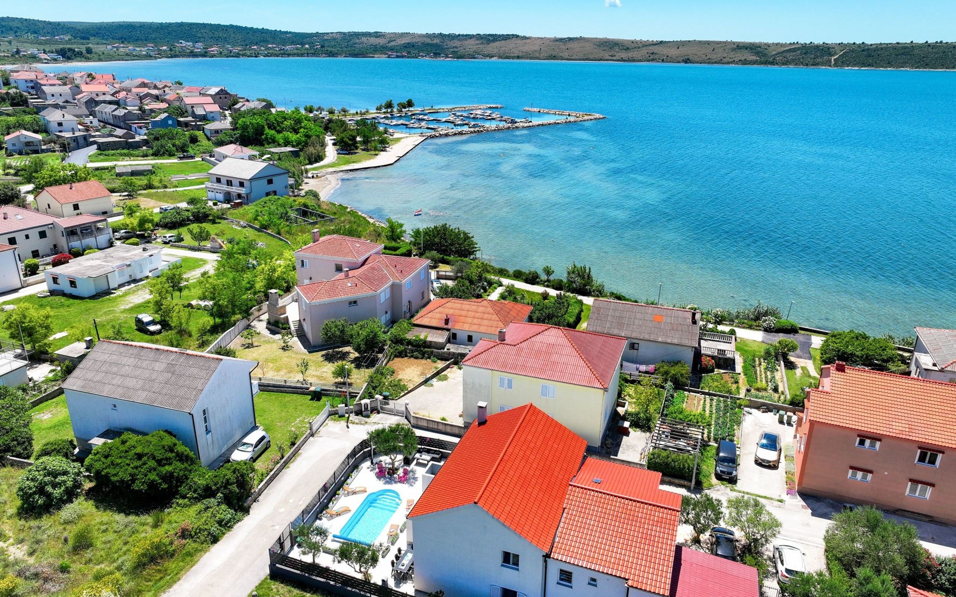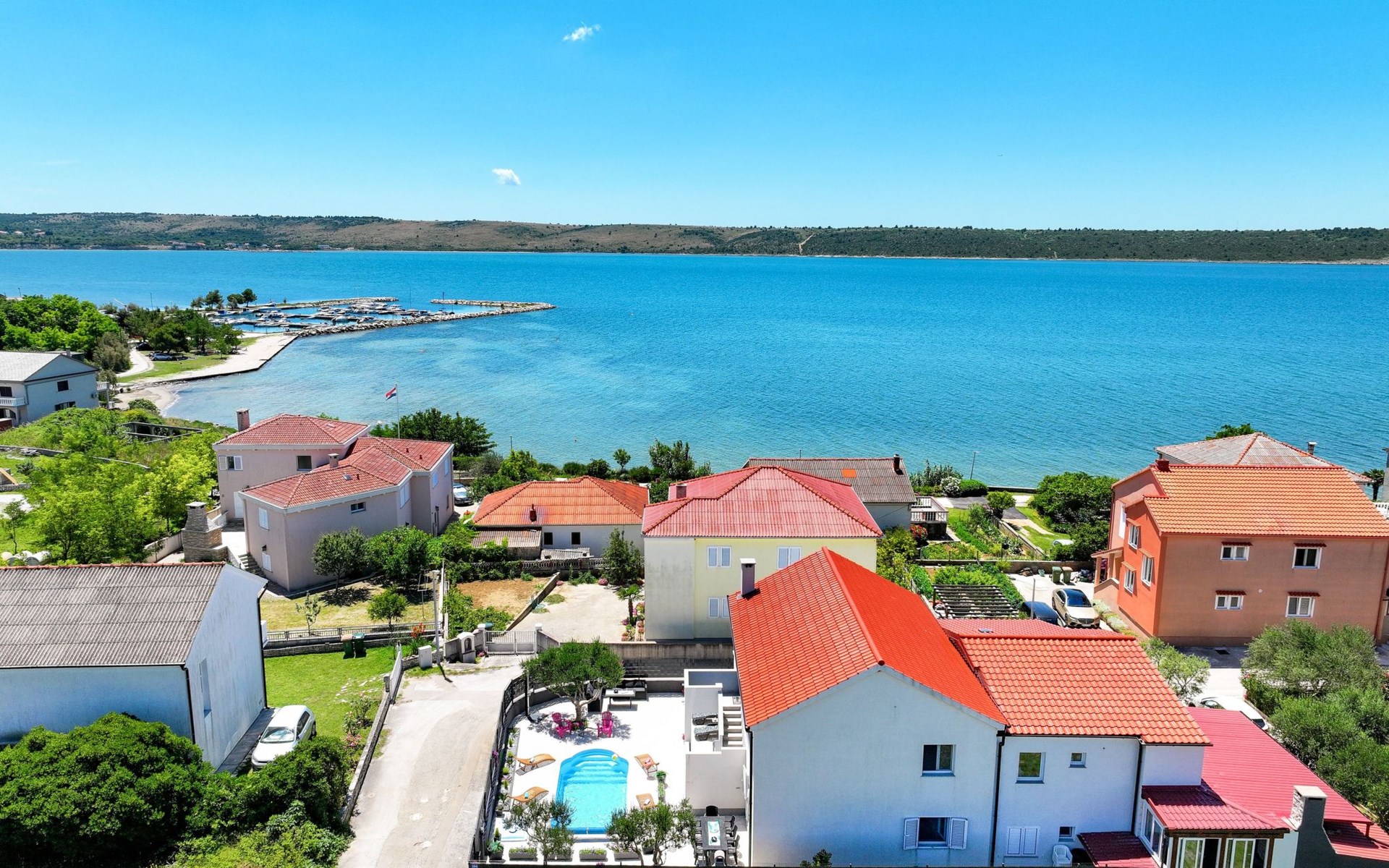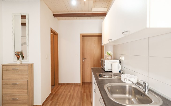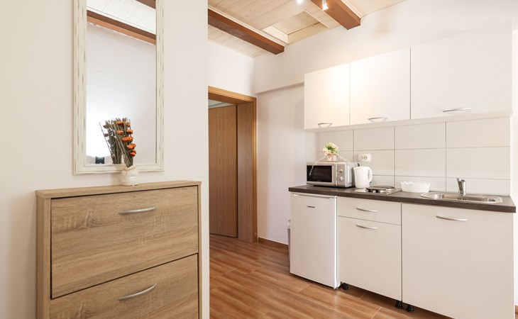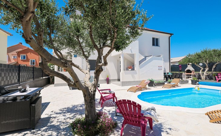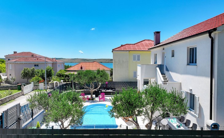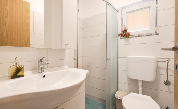 Maximaal 3 huisdieren/honden toegestaan. Welcome to our newly renovated holiday apartments, available since 2017, nestled in a serene location merely 50m away from the beach. Enclosed within a detached and fenced property in the picturesque town of Ljubac, near the vibrant city of Zadar, these apartments promise an idyllic escape right next to the pebble and sandy shores. Enjoy the tranquility along a seldom-used town road, offering a peaceful retreat from the hustle and bustle.Inside, the apartment on the first floor features a contemporary open plan living-/dining area, complete with a fully equipped kitchen, ensuring all the comforts of home. It accommodates guests in a cozy bedroom with a double bed and offers the convenience of a modern bathroom with a shower. For extra guests, the living area includes a sofa bed, and a baby cot is available upon request, ensuring a comfortable stay for couples, small families, or friends, complemented by amenities like air conditioning, TV, free WiFi, and picturesque views from the private balcony and/or terrace.The property's exterior offers ample amenities to enhance your stay. Each apartment has access to a private balcony, while the shared terrace downstairs invites relaxation with garden furniture, sunshade, and a grill/barbecue for delightful outdoor meals. A free parking area and an outdoor shower add to the convenience, ensuring a seamless beachside living experience.The location couldn't be more advantageous, positioned close to a market, a restaurant, and the historical city of Zadar, only 16 km away, known for its rich cultural heritage, attractions, and local delicacies. The house's proximity to natural wonders like Kornati, Paklenica, Krka, Plitvice Lakes, and Northern Velebit National Park makes it a perfect base for exploring the breathtaking surroundings. Additionally, Zadar Airport is just 19 km away, facilitating easy travel arrangements.Offering a blend of comfort, convenience, and natural beauty, these holiday apartments present an unparalleled opportunity for a memorable getaway. Whether you're looking to unwind near the beach, explore the local culture, or indulge in outdoor activities, our location serves as the perfect backdrop for a delightful vacation. The owner's presence next door means assistance is always at hand, ensuring a stress-free and enjoyable stay. Pets are welcome, and private mooring is available, making it ideal for every member of the family and boating enthusiasts alike.