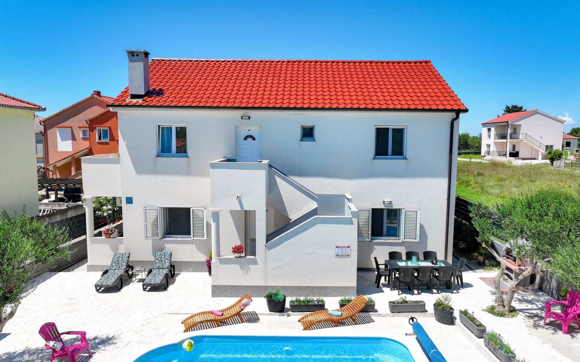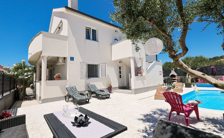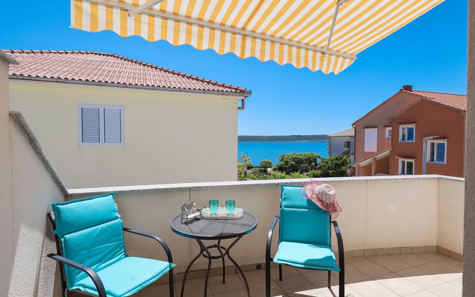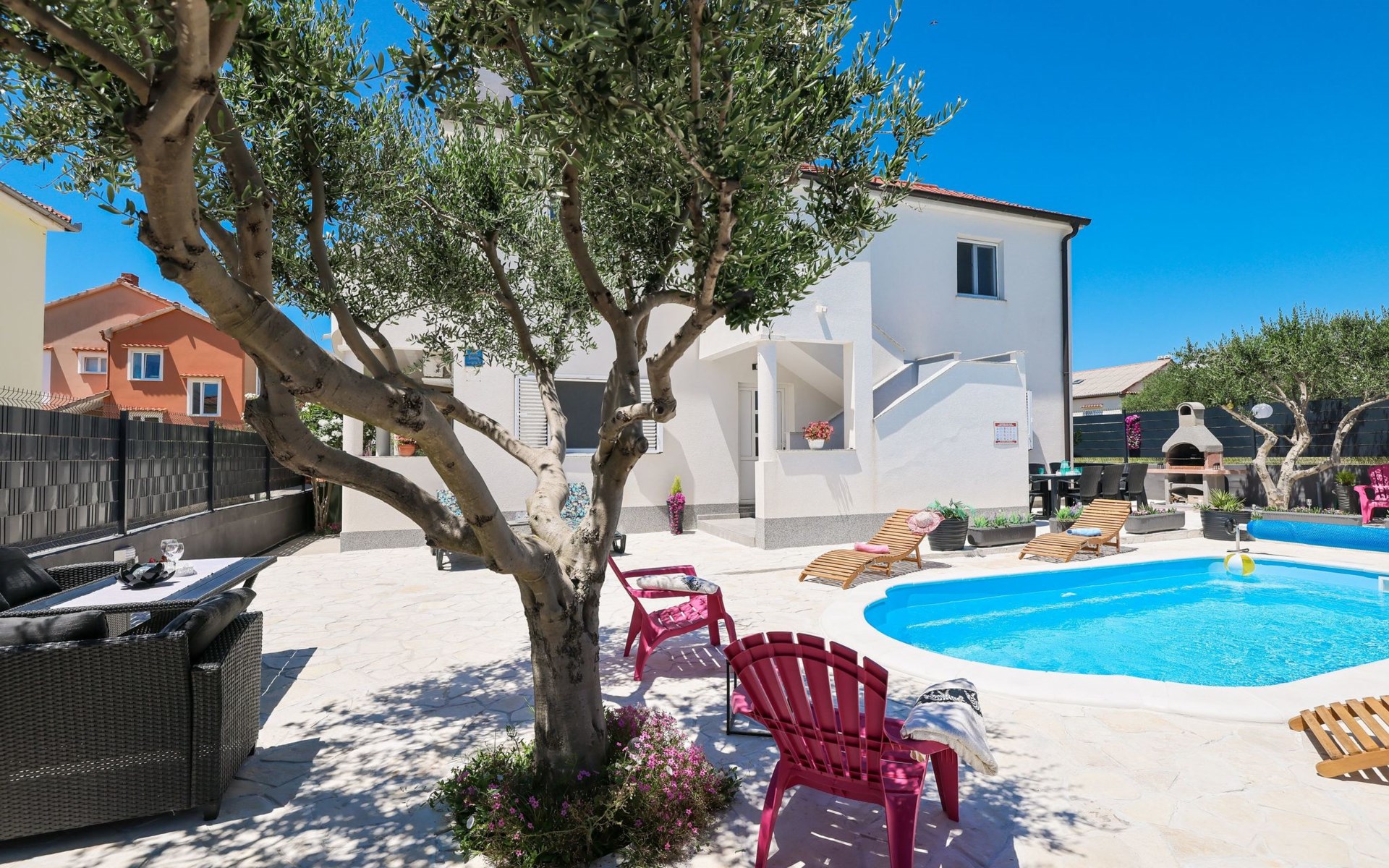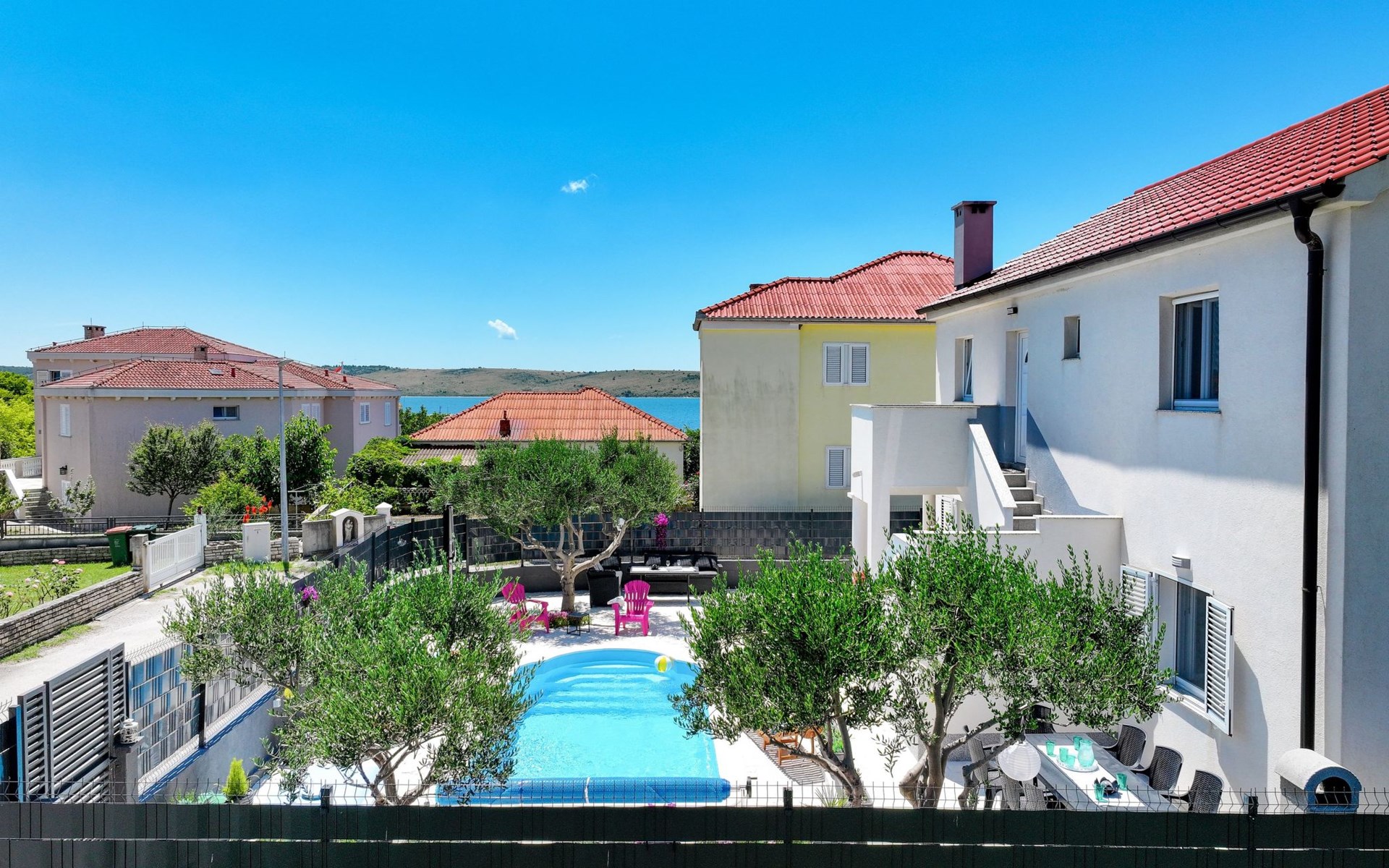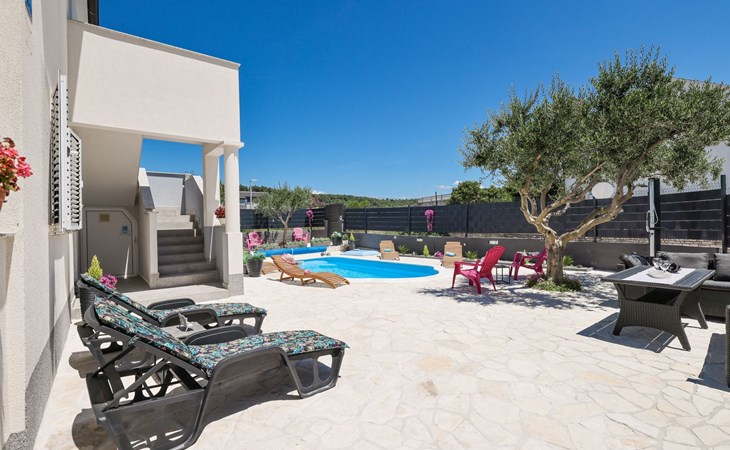 Maximaal 3 huisdieren/honden toegestaan. Welcome to our newly renovated holiday apartments, available since 2017, nestled in a serene location merely 50m away from the beach. Enclosed within a detached and fenced property in the picturesque town of Ljubac, near the vibrant city of Zadar, these apartments promise an idyllic escape right next to the pebble and sandy shores. Enjoy the tranquility along a seldom-used town road, offering a peaceful retreat from the hustle and bustle.Inside, the apartment on the first floor features a contemporary open plan living-/dining area, complete with a fully equipped kitchen, ensuring all the comforts of home. It accommodates guests in a cozy bedroom with a double bed and offers the convenience of a modern bathroom with a shower. For extra guests, the living area includes a sofa bed, and a baby cot is available upon request, ensuring a comfortable stay for couples, small families, or friends, complemented by amenities like air conditioning, TV, free WiFi, and picturesque views from the private balcony and/or terrace.The property's exterior offers ample amenities to enhance your stay. Each apartment has access to a private balcony, while the shared terrace downstairs invites relaxation with garden furniture, sunshade, and a grill/barbecue for delightful outdoor meals. A free parking area and an outdoor shower add to the convenience, ensuring a seamless beachside living experience.The location couldn't be more advantageous, positioned close to a market, a restaurant, and the historical city of Zadar, only 16 km away, known for its rich cultural heritage, attractions, and local delicacies. The house's proximity to natural wonders like Kornati, Paklenica, Krka, Plitvice Lakes, and Northern Velebit National Park makes it a perfect base for exploring the breathtaking surroundings. Additionally, Zadar Airport is just 19 km away, facilitating easy travel arrangements.Offering a blend of comfort, convenience, and natural beauty, these holiday apartments present an unparalleled opportunity for a memorable getaway. Whether you're looking to unwind near the beach, explore the local culture, or indulge in outdoor activities, our location serves as the perfect backdrop for a delightful vacation. The owner's presence next door means assistance is always at hand, ensuring a stress-free and enjoyable stay. Pets are welcome, and private mooring is available, making it ideal for every member of the family and boating enthusiasts alike.