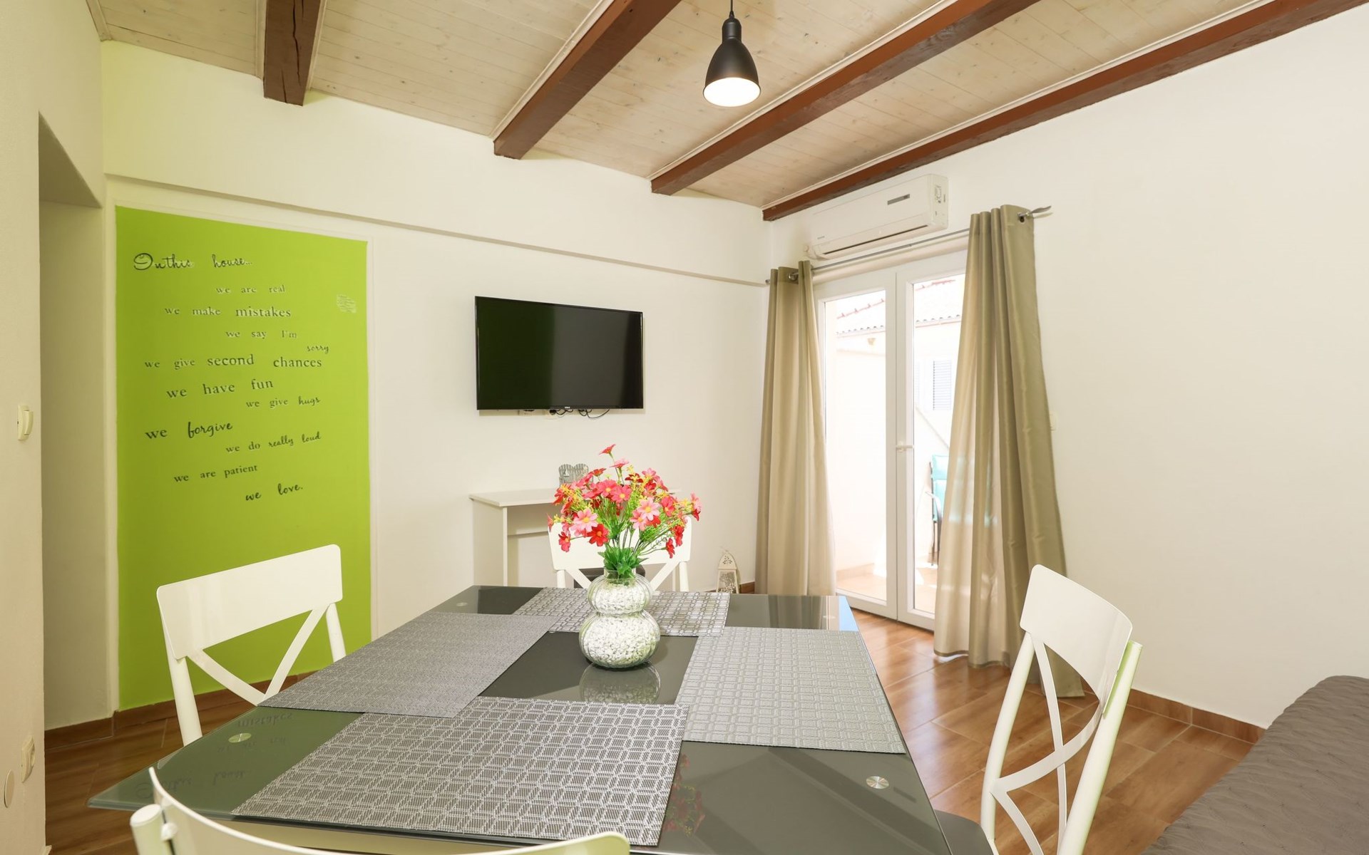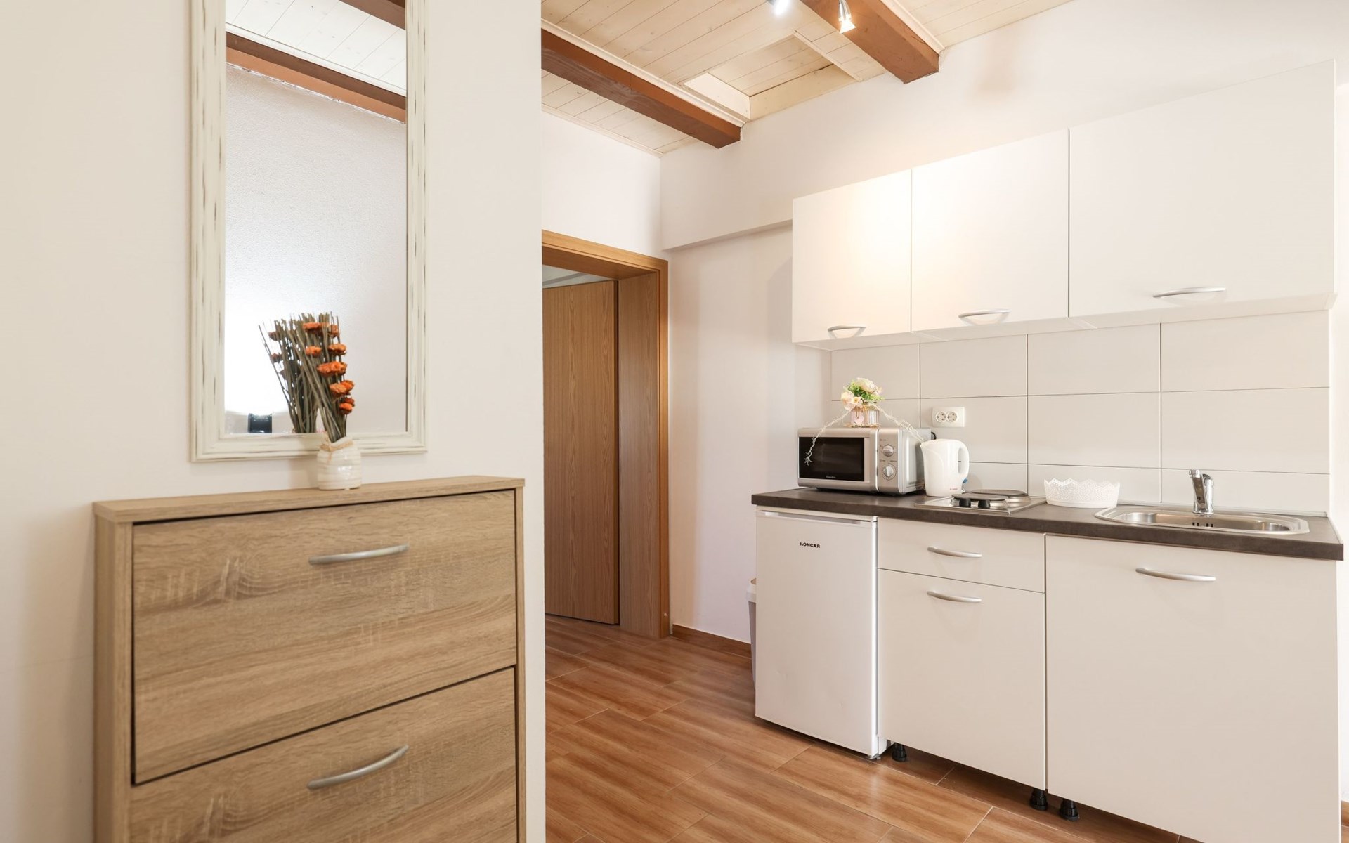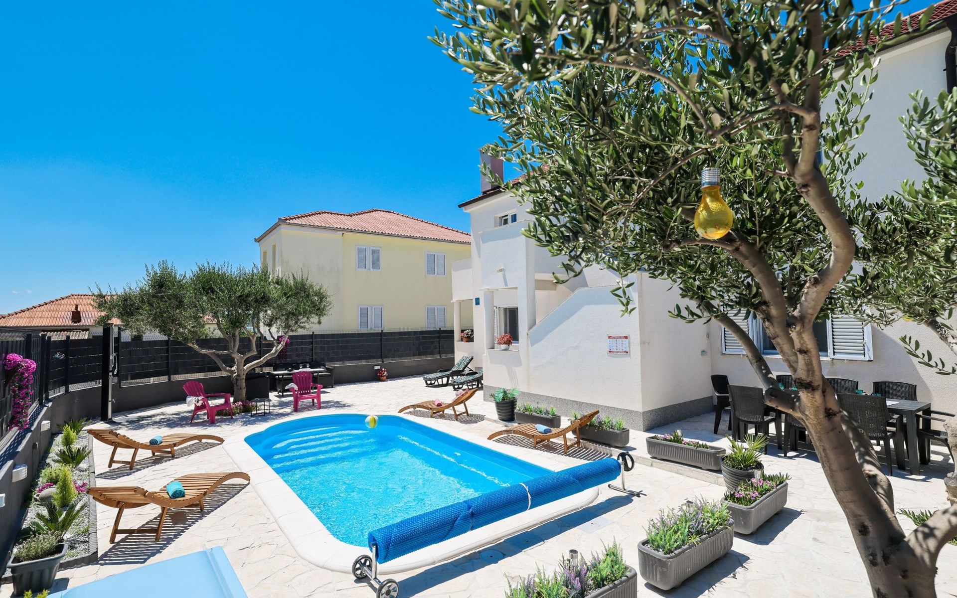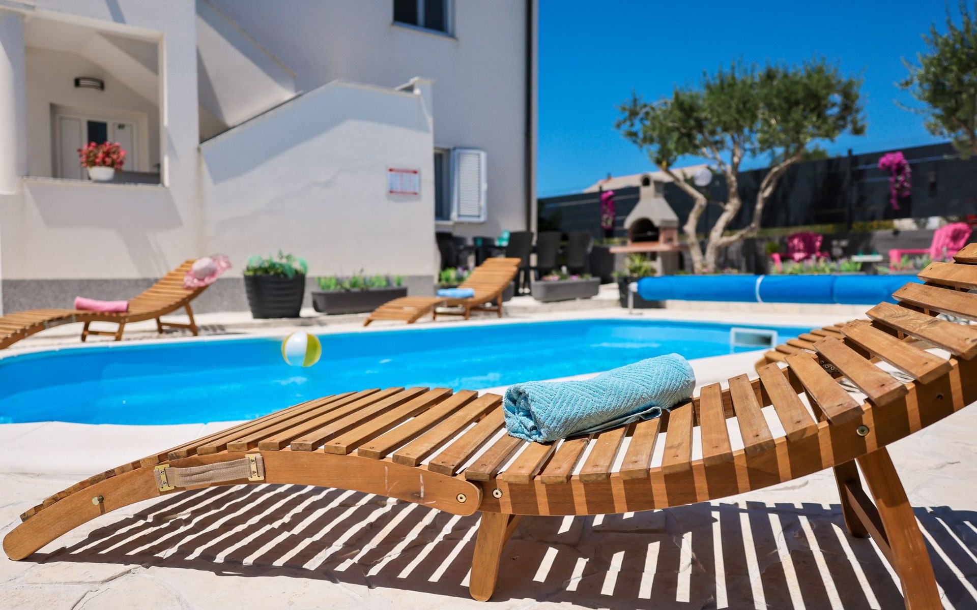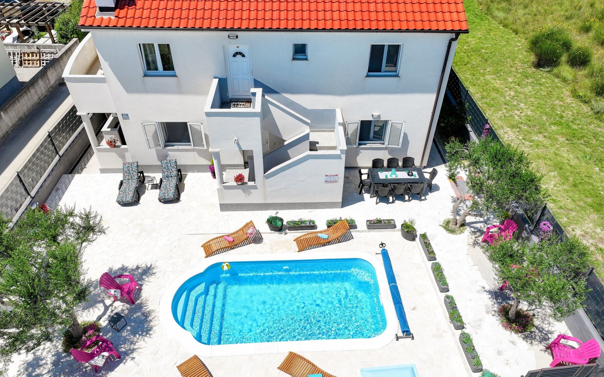 Maximaal 3 huisdieren/honden toegestaan. Welcome to our newly renovated holiday apartments, available since 2017, nestled in a serene location merely 50m away from the beach. Enclosed within a detached and fenced property in the picturesque town of Ljubac, near the vibrant city of Zadar, these apartments promise an idyllic escape right next to the pebble and sandy shores. Enjoy the tranquility along a seldom-used town road, offering a peaceful retreat from the hustle and bustle.Inside, the apartment on the first floor features a contemporary open plan living-/dining area, complete with a fully equipped kitchen, ensuring all the comforts of home. It accommodates guests in a cozy bedroom with a double bed and offers the convenience of a modern bathroom with a shower. For extra guests, the living area includes a sofa bed, and a baby cot is available upon request, ensuring a comfortable stay for couples, small families, or friends, complemented by amenities like air conditioning, TV, free WiFi, and picturesque views from the private balcony and/or terrace.The property's exterior offers ample amenities to enhance your stay. Each apartment has access to a private balcony, while the shared terrace downstairs invites relaxation with garden furniture, sunshade, and a grill/barbecue for delightful outdoor meals. A free parking area and an outdoor shower add to the convenience, ensuring a seamless beachside living experience.The location couldn't be more advantageous, positioned close to a market, a restaurant, and the historical city of Zadar, only 16 km away, known for its rich cultural heritage, attractions, and local delicacies. The house's proximity to natural wonders like Kornati, Paklenica, Krka, Plitvice Lakes, and Northern Velebit National Park makes it a perfect base for exploring the breathtaking surroundings. Additionally, Zadar Airport is just 19 km away, facilitating easy travel arrangements.Offering a blend of comfort, convenience, and natural beauty, these holiday apartments present an unparalleled opportunity for a memorable getaway. Whether you're looking to unwind near the beach, explore the local culture, or indulge in outdoor activities, our location serves as the perfect backdrop for a delightful vacation. The owner's presence next door means assistance is always at hand, ensuring a stress-free and enjoyable stay. Pets are welcome, and private mooring is available, making it ideal for every member of the family and boating enthusiasts alike.