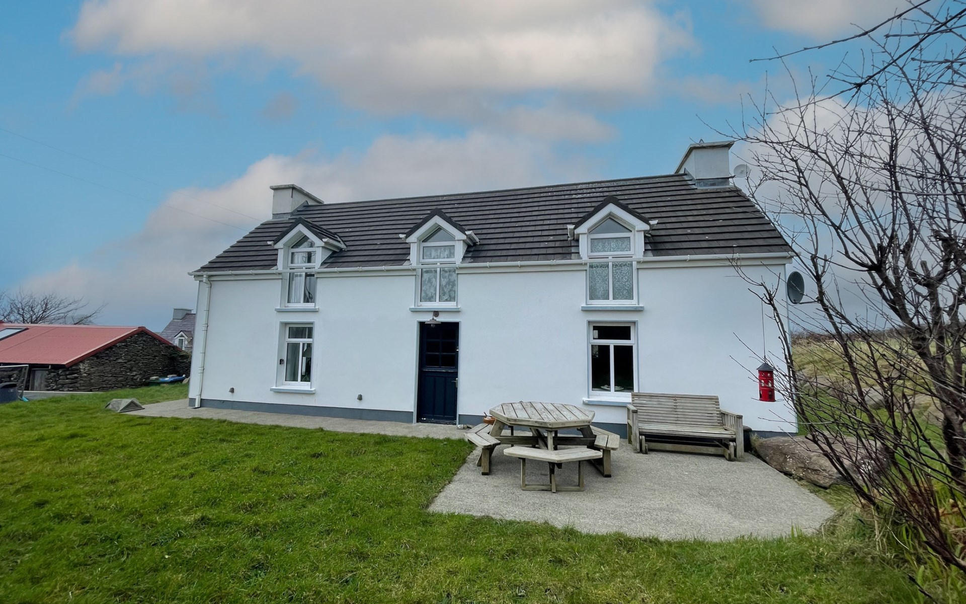 Ballydavid: Huis. Voor alleengebruik: tuin. Tuinmeubelen, parkeerplaats (voor 1 auto's). Supermarkt 11 km, restaurant 11 km, café 11 km, bushalte 2 km, treinstation 58 m, zandstrand 11 km, stenenstrand 0 m. Golfterrein 11.3 km. De eigenaar accepteert geen jeugdgroepen.