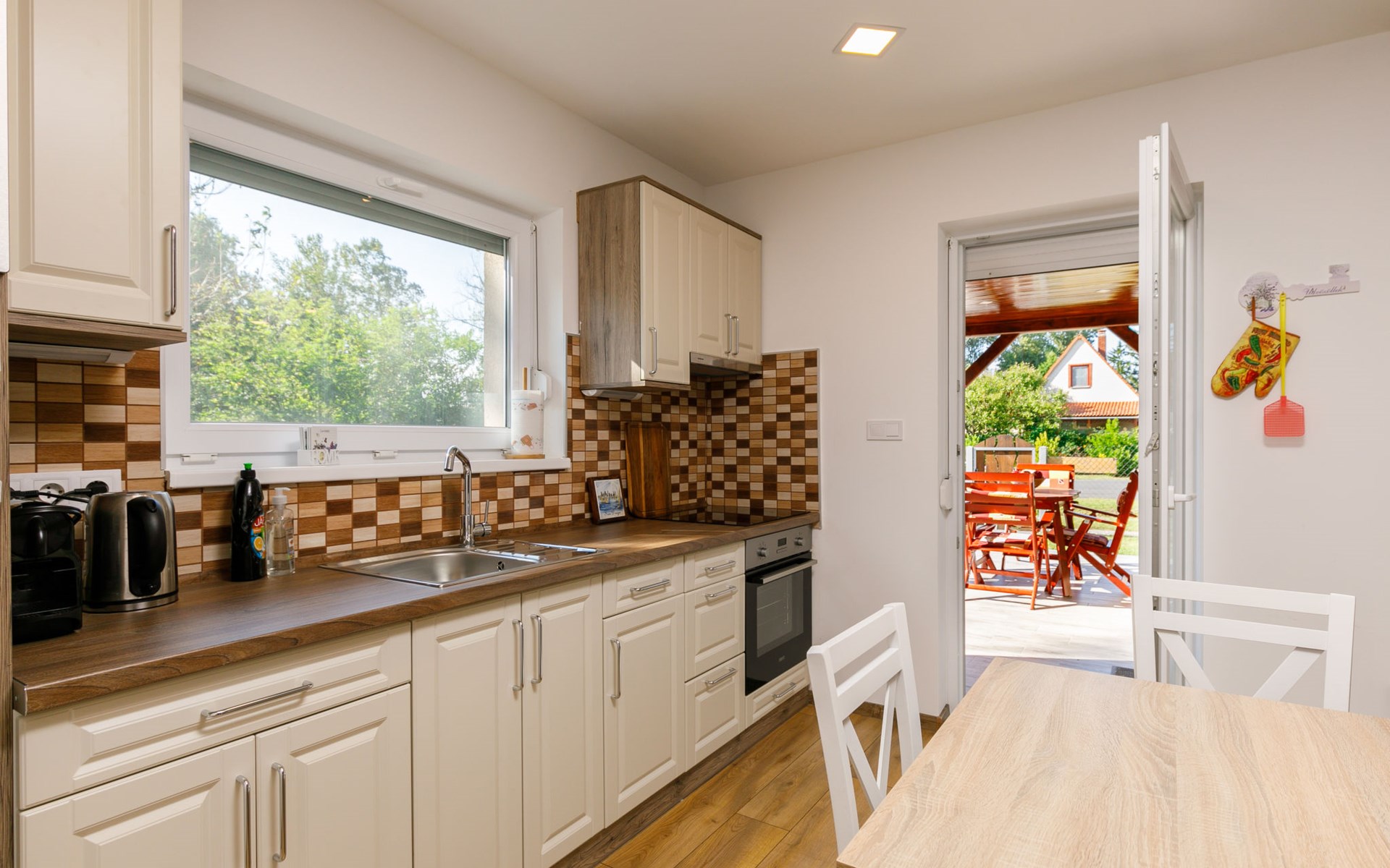 Balatonkeresztúr 22 km van Keszthely: Mooi, comfortabel huis "Honey", bouwjaar 2022. In de plaats, 600 m van het meer, 400 m van het strand. Voor alleengebruik: terrein (omheind), ligweide. Terras. In het huis: Internet (WiFi), air-conditioning, wasmachine, droger. Parkeerplaats (voor 2 auto's) bij het huis. Levensmiddelenwinkel 150 m, supermarkt 5 km, restaurant 500 m, bar 900 m, bakkerij 900 m, fietsverhuur 5 km, treinstation 3 km, grasstrand 300 m, thermaalbad "Csiszta" 17 km. Surfschool 6 km, zeilschool 6 km, tennis 3 km, manege 150 m, fietspad 200 m, kinderspeelplaats 800 m, Vismogelijkheden 300 m. Attracties in de buurt: Hévíz Thermal Bath 20 km, Festetics Palace 20 km, Rubin Winery 5 km, Airport 2 km, Somoshegyi Viewpoint 7 km, Siófok - Ferris Wheels 62 km.