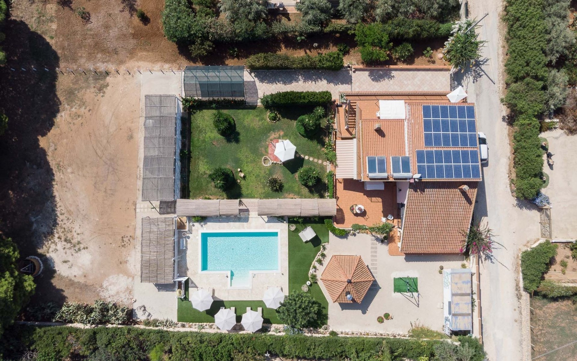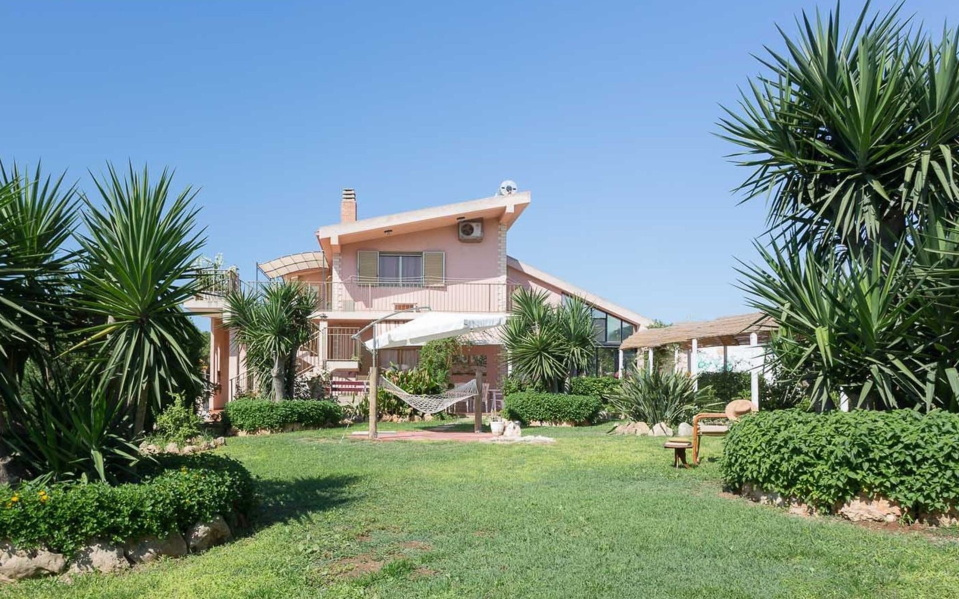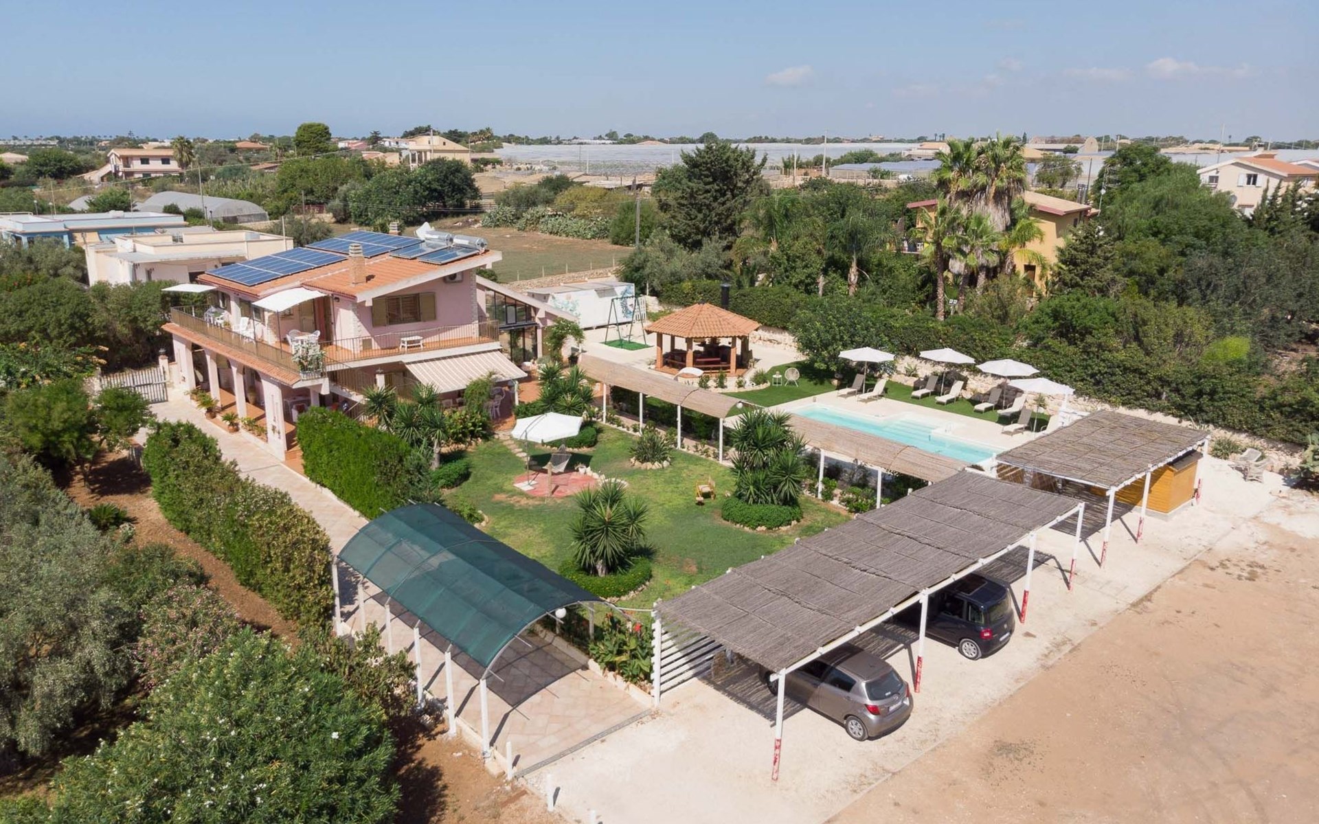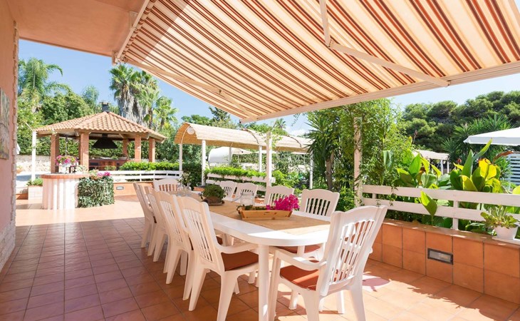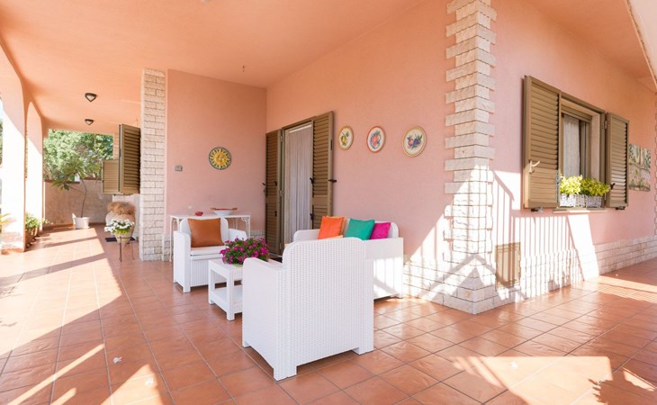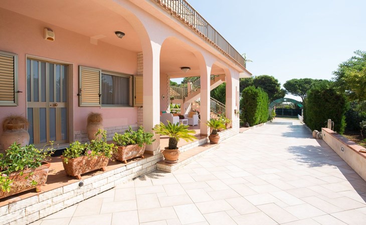 Spacious villa with heated pool and large garden, 2 km from the beach of Punta Secca and 6 km from Marina di Ragusa. It stands in a quiet and peaceful residential area in the countryside and offers a furnished terrace, large outdoor spaces, barbecue area and swing. It is suitable for families or groups of friends who want to spend a relaxing holiday by the sea.Interior Description - Ground FloorThe villa is on two levels and has a comfortable interior with attention to detail.In total, it offers 4 bedrooms (each with en suite bathroom and shower) and a fifth bathroom serving the living area on the ground floor, for a total of 11 beds.The ground floor consists of a living area and a sleeping area.The living room is furnished with a lounge and television.The kitchen opens onto the furnished terrace and is equipped with a fridge, freezer, dishwasher, electric oven, microwave and washing machine.One bedroom with en-suite bathroom and shower, equipped with TV, safe and mini fridge.A bathroom (toilet only) serving the living area.Air conditioning in the bedroom.Wi-Fi Internet connection. Interior Description - First FloorFrom the living room, a spiral staircase leads to the first floor (which can also be accessed from the outside via a flight of steps) which enjoys a lovely furnished terrace with a sea view.The first floor consists of a hallway with a large wardrobe and a sleeping area with 3 bedrooms, decorated in three different colours.All 3 rooms each have an en suite bathroom with shower, TV, safe and mini fridge.The green room has a double bed.The blue room is a triple room with a double bed and an additional single bed.The orange room is very large and has a double bed and a sofa bed that can extend to become a comfortable bunk bed if necessary. The orange room also has a separate entrance and overlooks the furnished terrace.Each room is air-conditioned.Wi-Fi Internet connection.Villa Timparosa enjoys large outdoor areas where you can relax and spend pleasant moments in the open air.A large heated swimming pool, surrounded by greenery, is furnished with a solarium with sun loungers, deckchairs and parasols, and also offers an outdoor shower.A terrace is furnished with a rocking chair, outdoor loungers and a dining table.A large garden with Mediterranean plants, flower beds and flowers offers many furnished corners for sunbathing, with gazebos, a large hammock and an area for the little ones with a large swing and table tennis table.A barbecue area, located in front of the pool, with a wood-fired grill and dining area.Large parking area with covered parking spaces (canopy).Strengths- Heated swimming pool- Furnished terrace and large garden- 2 km from the sandy beach Recommended forA group of friends or for families who want to enjoy a relaxing stay in a spacious and comfortable villa, just a few steps from the beach and in a quiet and peaceful countryside area.It is an excellent solution for families with children and for those who want to be based by the sea but stay in the countryside, a short distance from the most interesting tourist centres in the area (Ragusa Ibla, Scicli, Modica).Villa Timparosa is located in the countryside surrounding Punta Secca, on the coast of Marina di Ragusa, in the province of Ragusa, in south-eastern Sicily.It is 2 km from the sandy beaches of Caucana and Punta Secca, a seaside resort famous for its golden beaches and for the home of Commissioner Montalbano.6 km away is Marina di Ragusa, with its extensive seafront promenade full of shops, restaurants, bars and nightclubs.The Randello Nature Reserve is 10 km away and Pio La Torre di Comiso Airport is 28 km from the villa. IT088010C296X88FUM