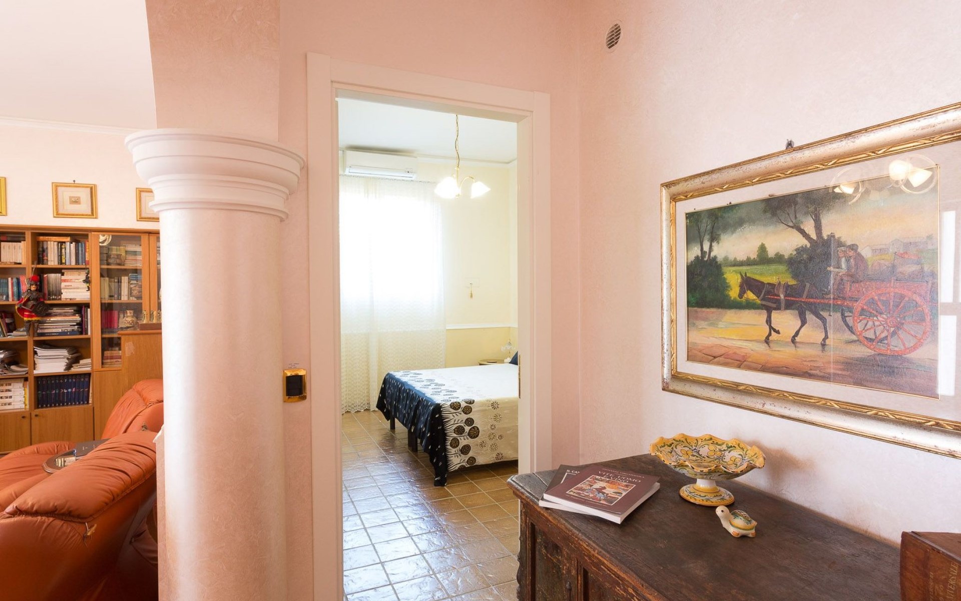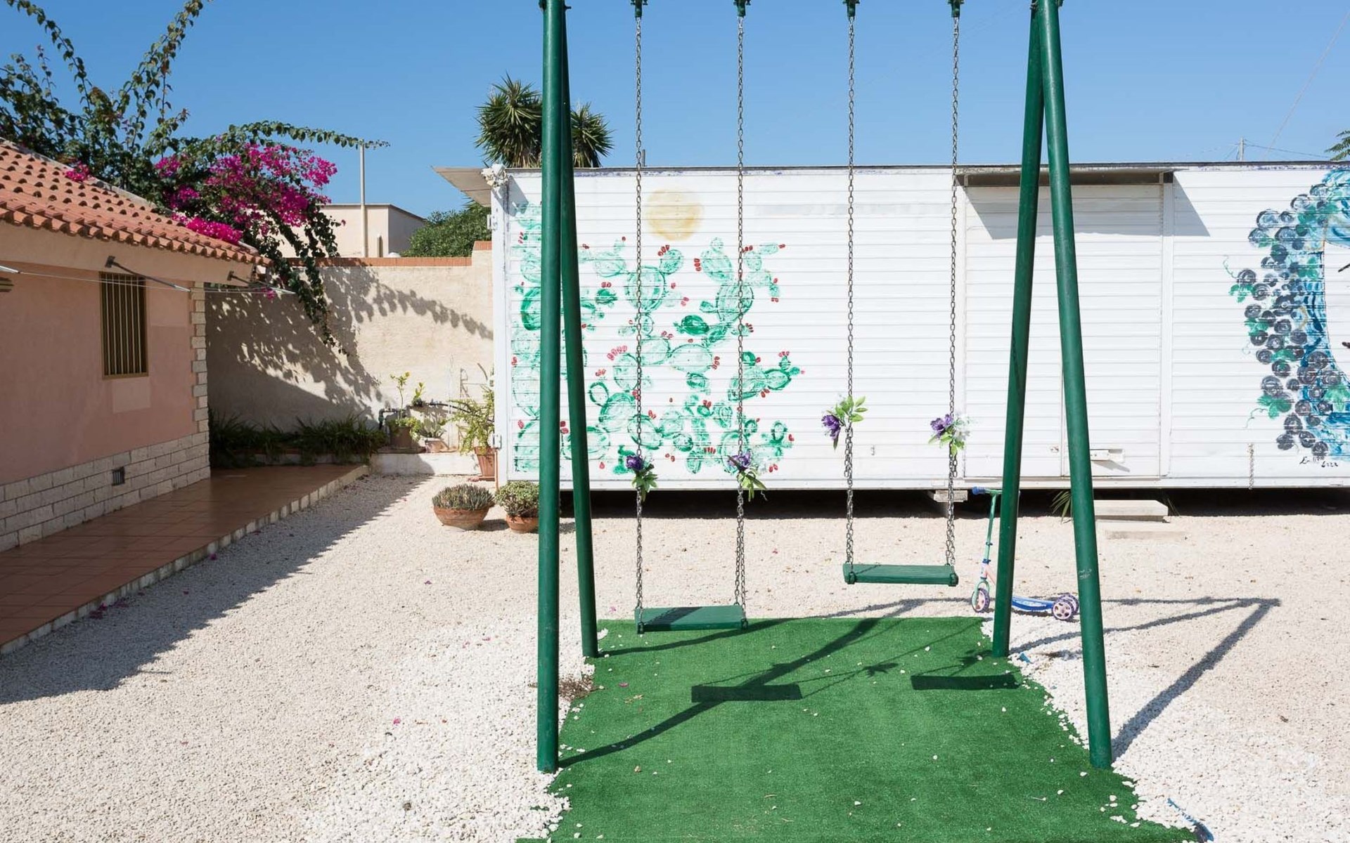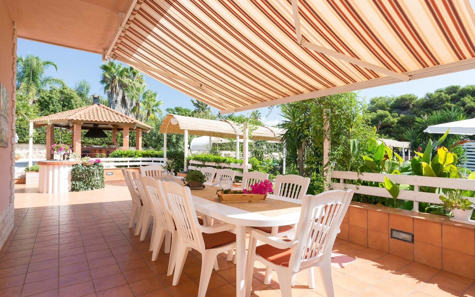 Spacious villa with heated pool and large garden, 2 km from the beach of Punta Secca and 6 km from Marina di Ragusa. It stands in a quiet and peaceful residential area in the countryside and offers a furnished terrace, large outdoor spaces, barbecue area and swing. It is suitable for families or groups of friends who want to spend a relaxing holiday by the sea.Interior Description - Ground FloorThe villa is on two levels and has a comfortable interior with attention to detail.In total, it offers 4 bedrooms (each with en suite bathroom and shower) and a fifth bathroom serving the living area on the ground floor, for a total of 11 beds.The ground floor consists of a living area and a sleeping area.The living room is furnished with a lounge and television.The kitchen opens onto the furnished terrace and is equipped with a fridge, freezer, dishwasher, electric oven, microwave and washing machine.One bedroom with en-suite bathroom and shower, equipped with TV, safe and mini fridge.A bathroom (toilet only) serving the living area.Air conditioning in the bedroom.Wi-Fi Internet connection. Interior Description - First FloorFrom the living room, a spiral staircase leads to the first floor (which can also be accessed from the outside via a flight of steps) which enjoys a lovely furnished terrace with a sea view.The first floor consists of a hallway with a large wardrobe and a sleeping area with 3 bedrooms, decorated in three different colours.All 3 rooms each have an en suite bathroom with shower, TV, safe and mini fridge.The green room has a double bed.The blue room is a triple room with a double bed and an additional single bed.The orange room is very large and has a double bed and a sofa bed that can extend to become a comfortable bunk bed if necessary. The orange room also has a separate entrance and overlooks the furnished terrace.Each room is air-conditioned.Wi-Fi Internet connection.Villa Timparosa enjoys large outdoor areas where you can relax and spend pleasant moments in the open air.A large heated swimming pool, surrounded by greenery, is furnished with a solarium with sun loungers, deckchairs and parasols, and also offers an outdoor shower.A terrace is furnished with a rocking chair, outdoor loungers and a dining table.A large garden with Mediterranean plants, flower beds and flowers offers many furnished corners for sunbathing, with gazebos, a large hammock and an area for the little ones with a large swing and table tennis table.A barbecue area, located in front of the pool, with a wood-fired grill and dining area.Large parking area with covered parking spaces (canopy).Strengths- Heated swimming pool- Furnished terrace and large garden- 2 km from the sandy beach Recommended forA group of friends or for families who want to enjoy a relaxing stay in a spacious and comfortable villa, just a few steps from the beach and in a quiet and peaceful countryside area.It is an excellent solution for families with children and for those who want to be based by the sea but stay in the countryside, a short distance from the most interesting tourist centres in the area (Ragusa Ibla, Scicli, Modica).Villa Timparosa is located in the countryside surrounding Punta Secca, on the coast of Marina di Ragusa, in the province of Ragusa, in south-eastern Sicily.It is 2 km from the sandy beaches of Caucana and Punta Secca, a seaside resort famous for its golden beaches and for the home of Commissioner Montalbano.6 km away is Marina di Ragusa, with its extensive seafront promenade full of shops, restaurants, bars and nightclubs.The Randello Nature Reserve is 10 km away and Pio La Torre di Comiso Airport is 28 km from the villa. IT088010C296X88FUM
