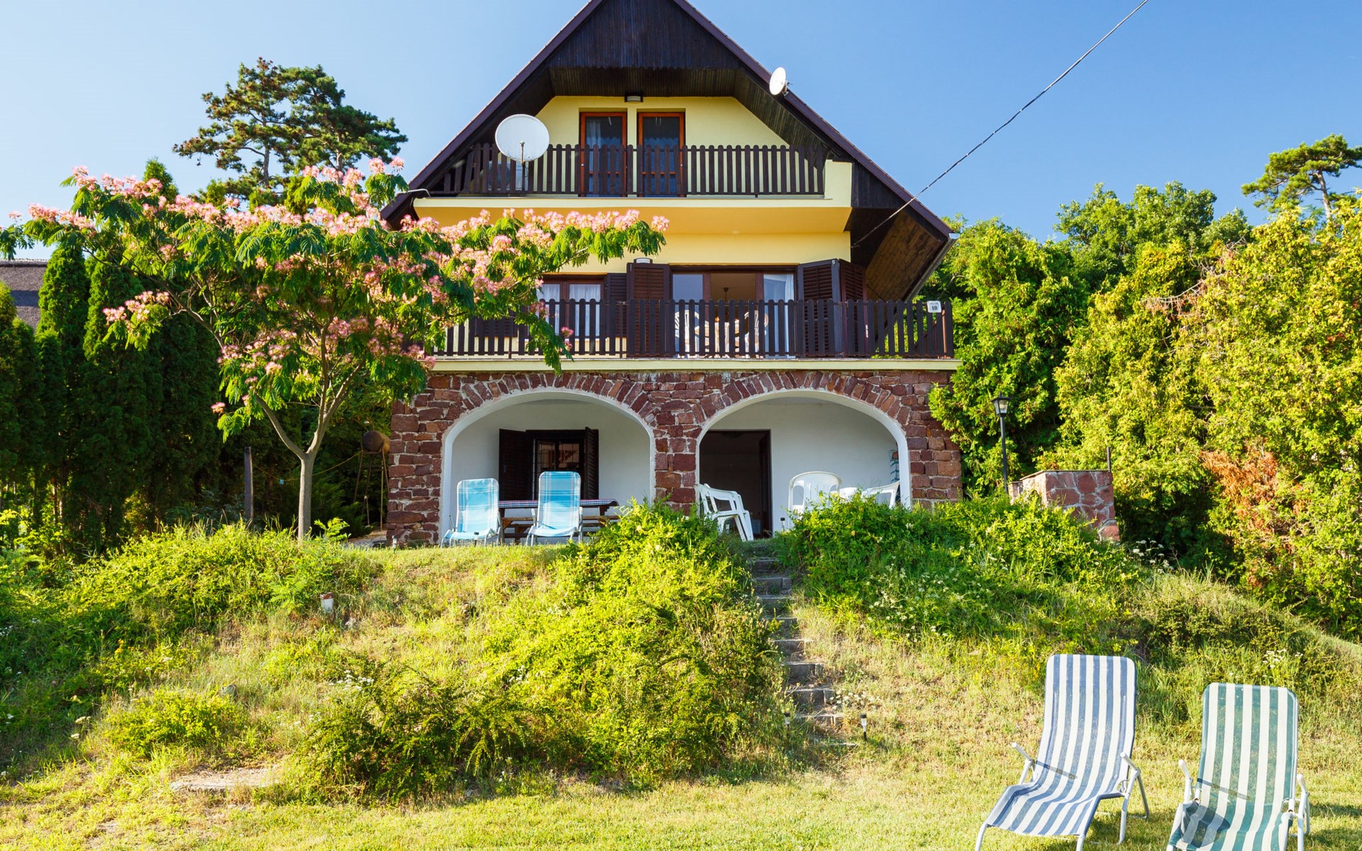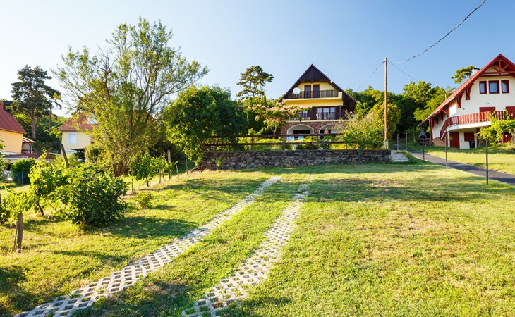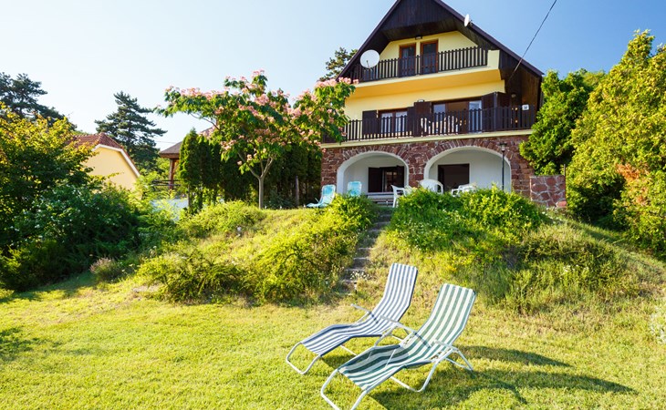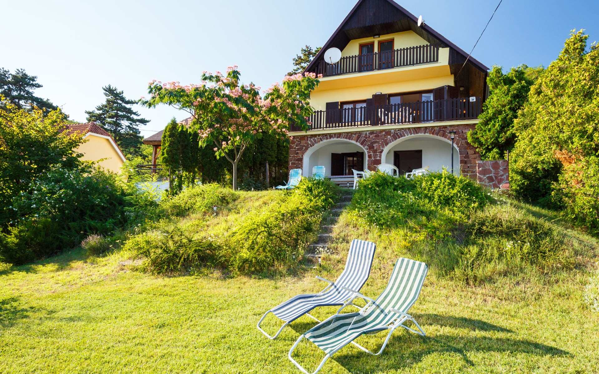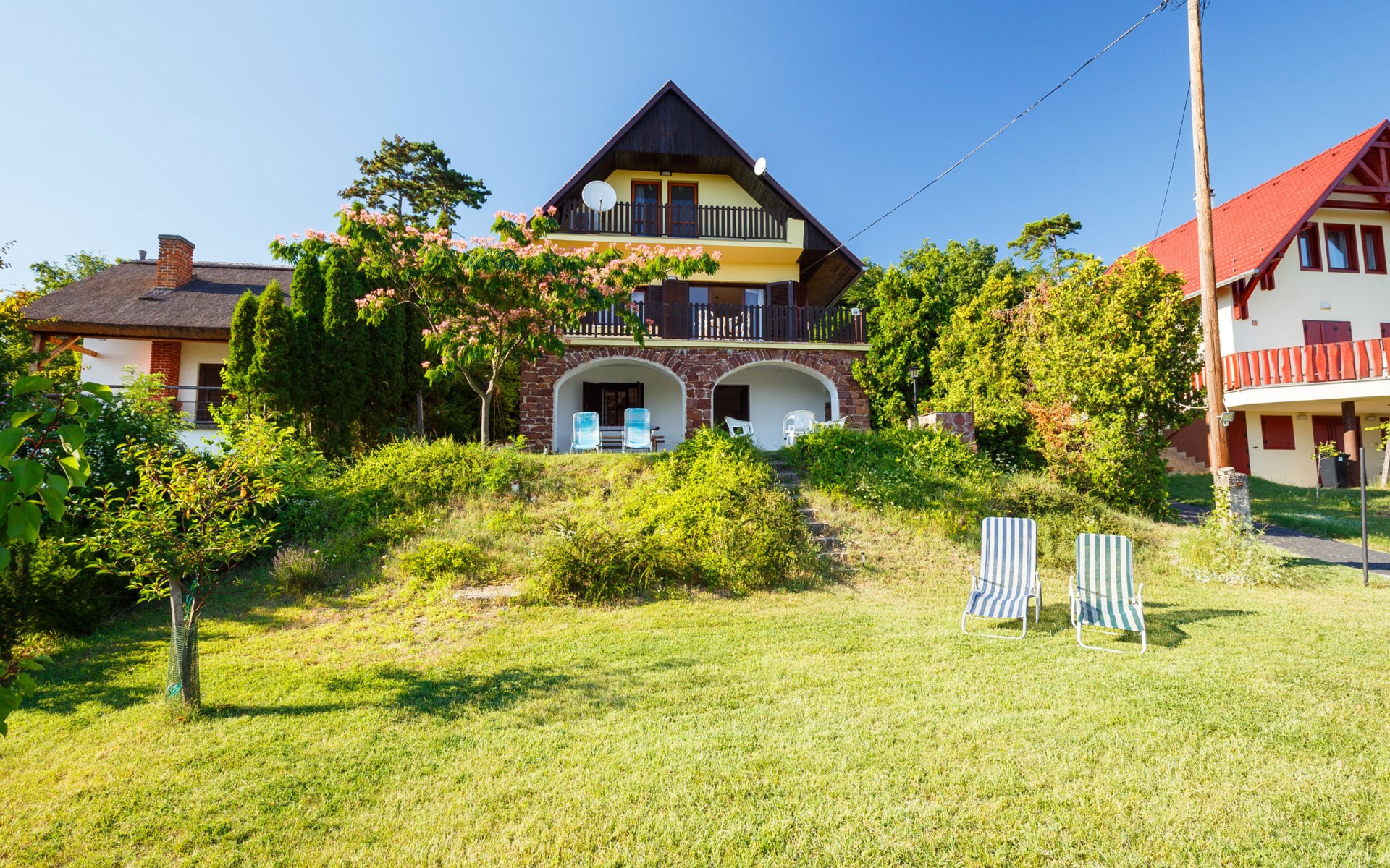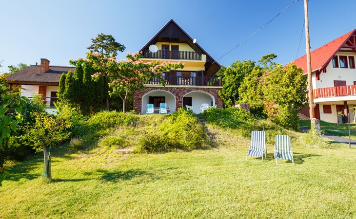 Vonyarcvashegy 7 km van Keszthely: Gezellig huis "Panorama", van 3 verdiepingen, omgeven door wijngaarden. Aan de rand van de plaats, rustige, zonnige ligging, 50 m van de bosrand, 1.5 km van het meer, 2.8 km van het strand, aan een weg. Voor alleengebruik: terrein 700 m2 met gazon 200 m2 bomen. In het huis: Internet (WiFi), air-conditioning, wasmachine. Levensmiddelenwinkel 1 km, restaurant 300 m, grasstrand 1.5 km. Golfterrein (18 holes) 27 km. Bekende meren kunnen gemakkelijk worden bereikt: Hévíz 14 km.
