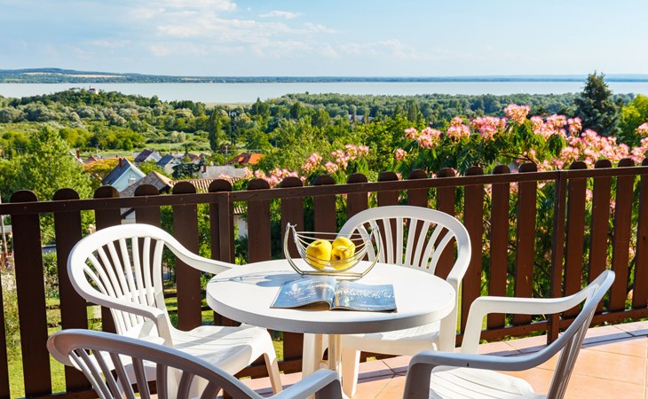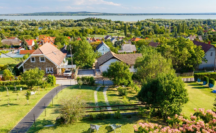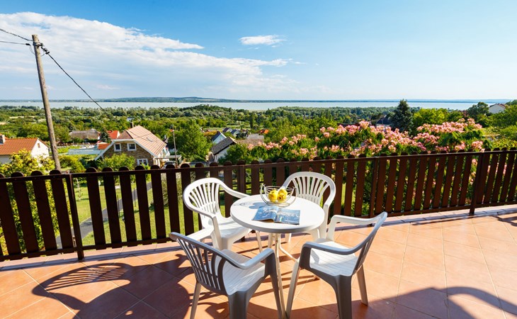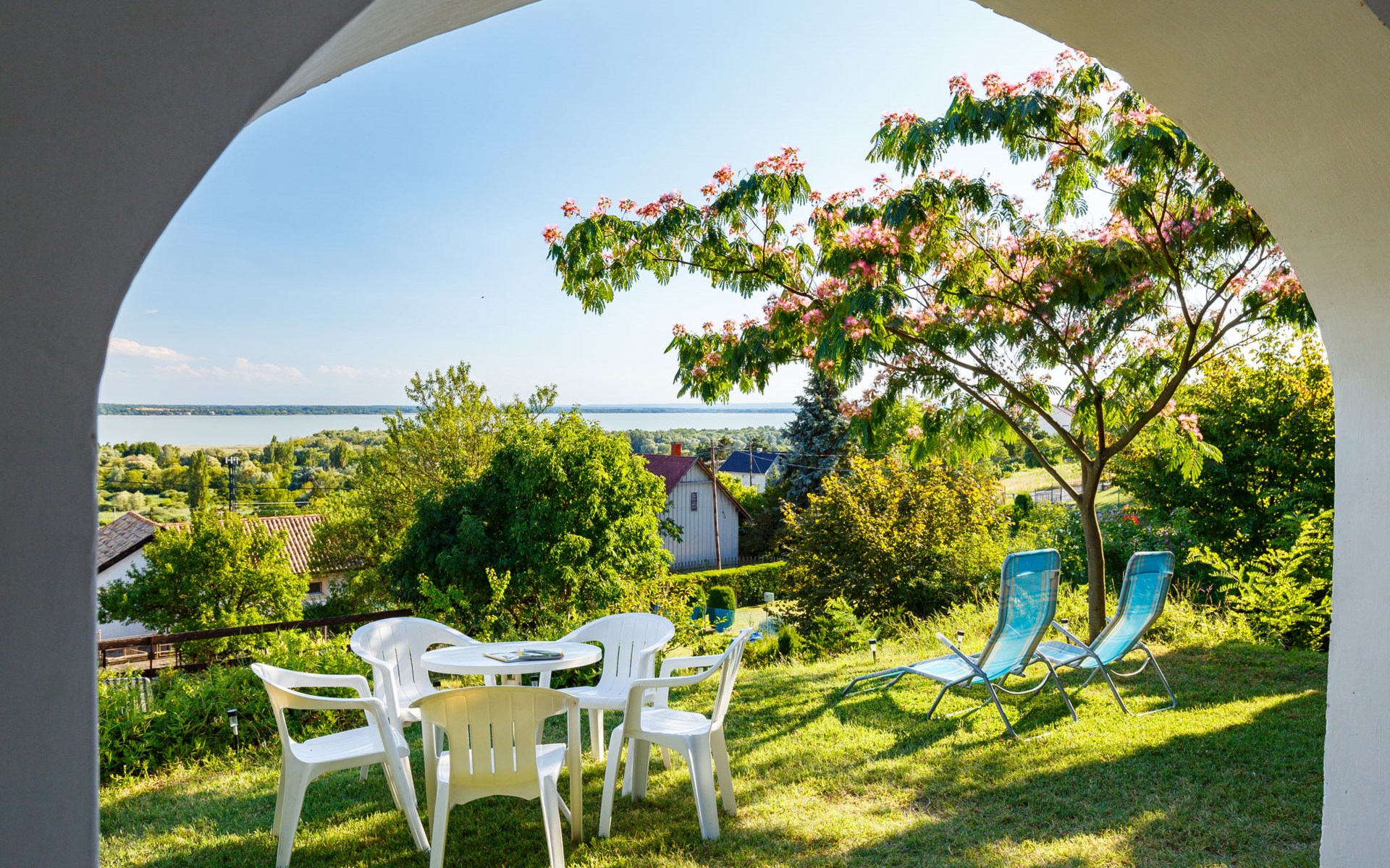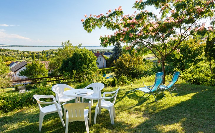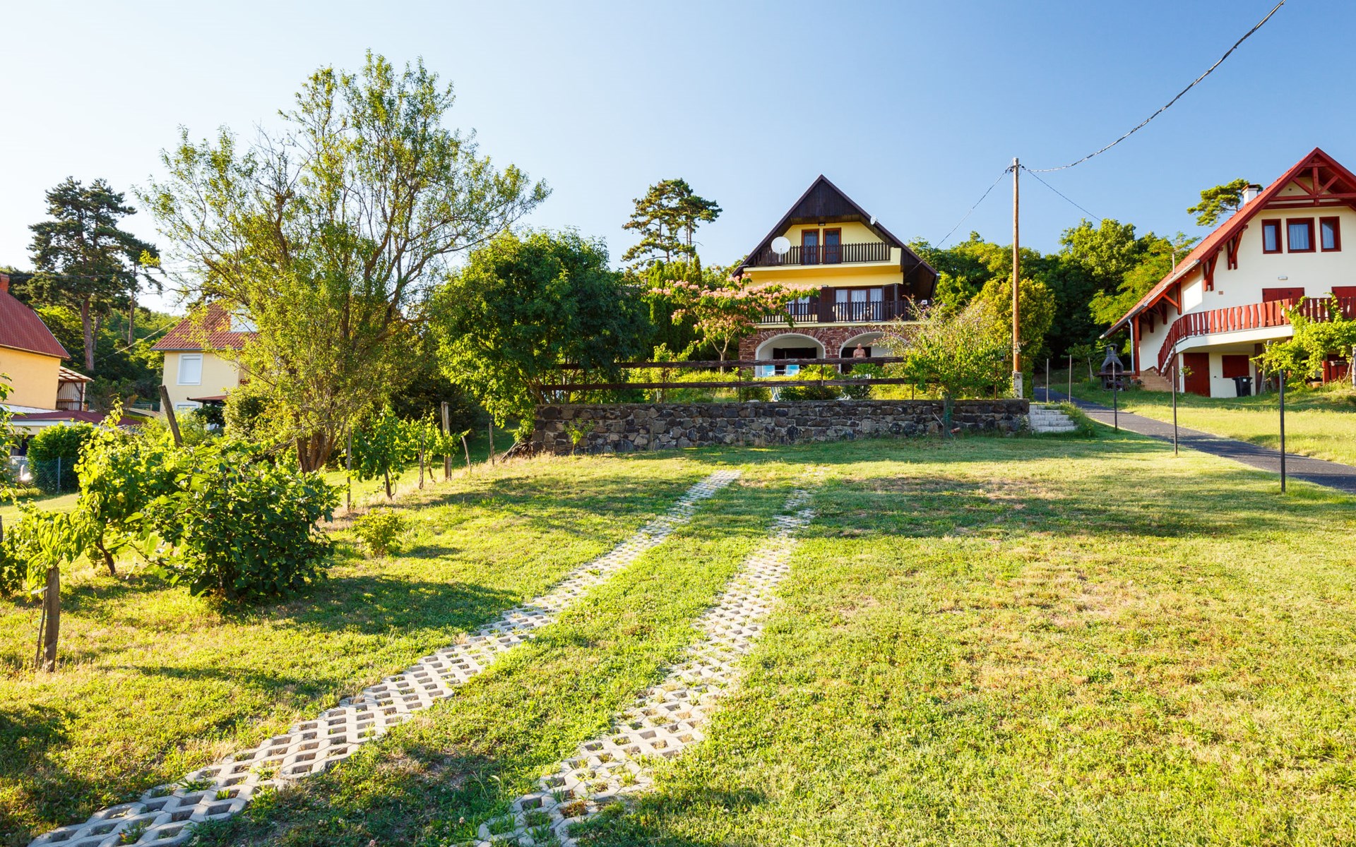 Vonyarcvashegy 7 km van Keszthely: Gezellig huis "Panorama", van 3 verdiepingen, omgeven door wijngaarden. Aan de rand van de plaats, rustige, zonnige ligging, 50 m van de bosrand, 1.5 km van het meer, 2.8 km van het strand, aan een weg. Voor alleengebruik: terrein 700 m2 met gazon 200 m2 bomen. In het huis: Internet (WiFi), air-conditioning, wasmachine. Levensmiddelenwinkel 1 km, restaurant 300 m, grasstrand 1.5 km. Golfterrein (18 holes) 27 km. Bekende meren kunnen gemakkelijk worden bereikt: Hévíz 14 km.
