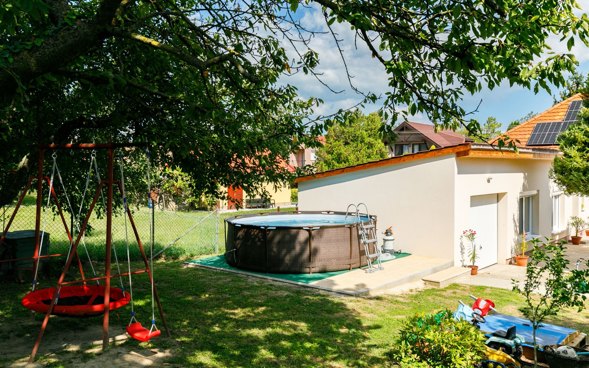 Fonyód 13 km van Balatonlelle: Klein, gezellig huis "Cherry", gerenoveerd in 2021. Aan de rand van de plaats, rustige ligging, 1.5 km van het meer, 1.9 km van het strand. Voor medegebruik: tuin 600 m2 (omheind) bloemen en bomen. Voor alleengebruik: openluchtzwembad (verhoogd) (3 m diameter, seizoensgebonden beschikbaarheid: 01.Jun. - 15.Sep.). In het huis: Internet (WiFi), centrale verwarming, air-conditioning, wasmachine. Levensmiddelenwinkel 100 m, supermarkt 2 km, restaurant 50 m, grasstrand 1.5 km. Kinderspeelplaats 50 m. Bekende meren kunnen gemakkelijk worden bereikt: Csisztapuszta thermal 6 km.