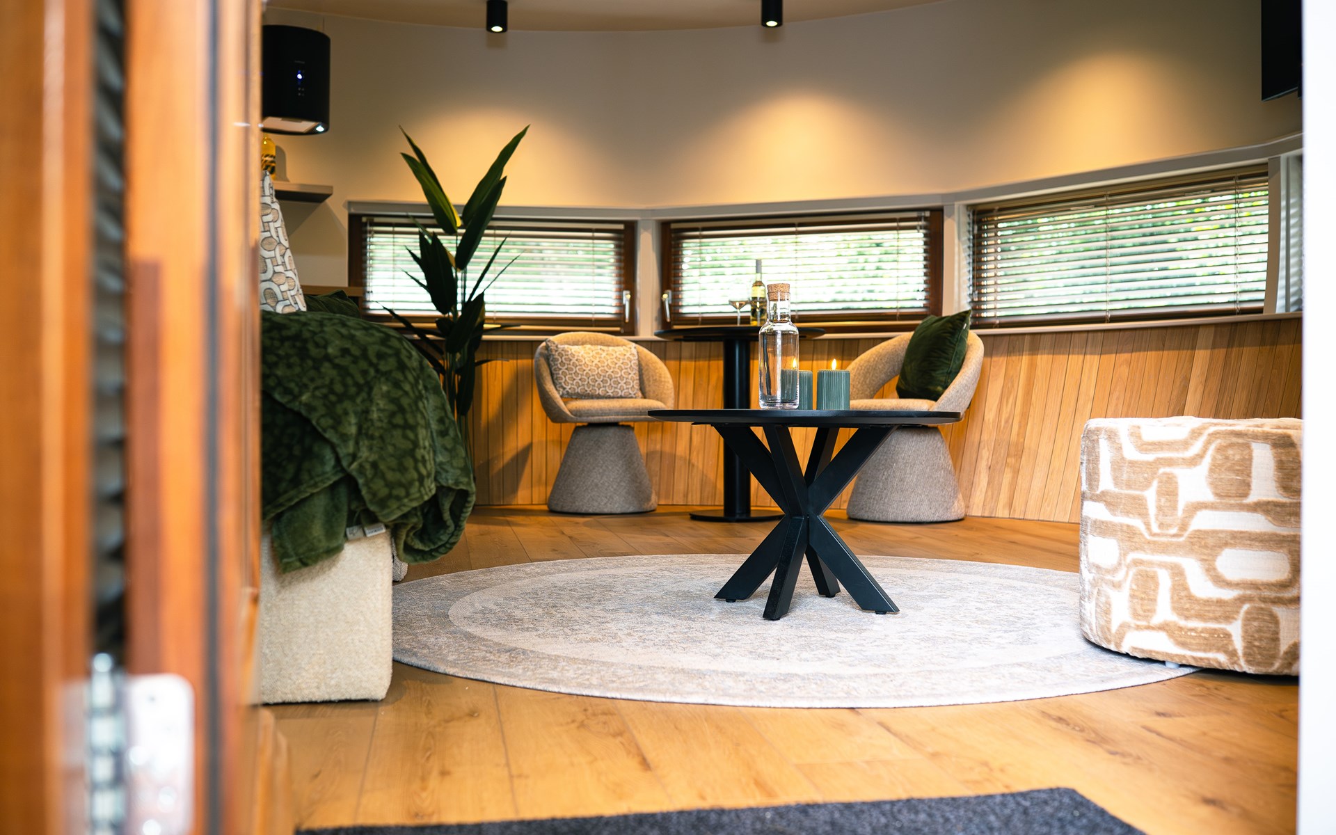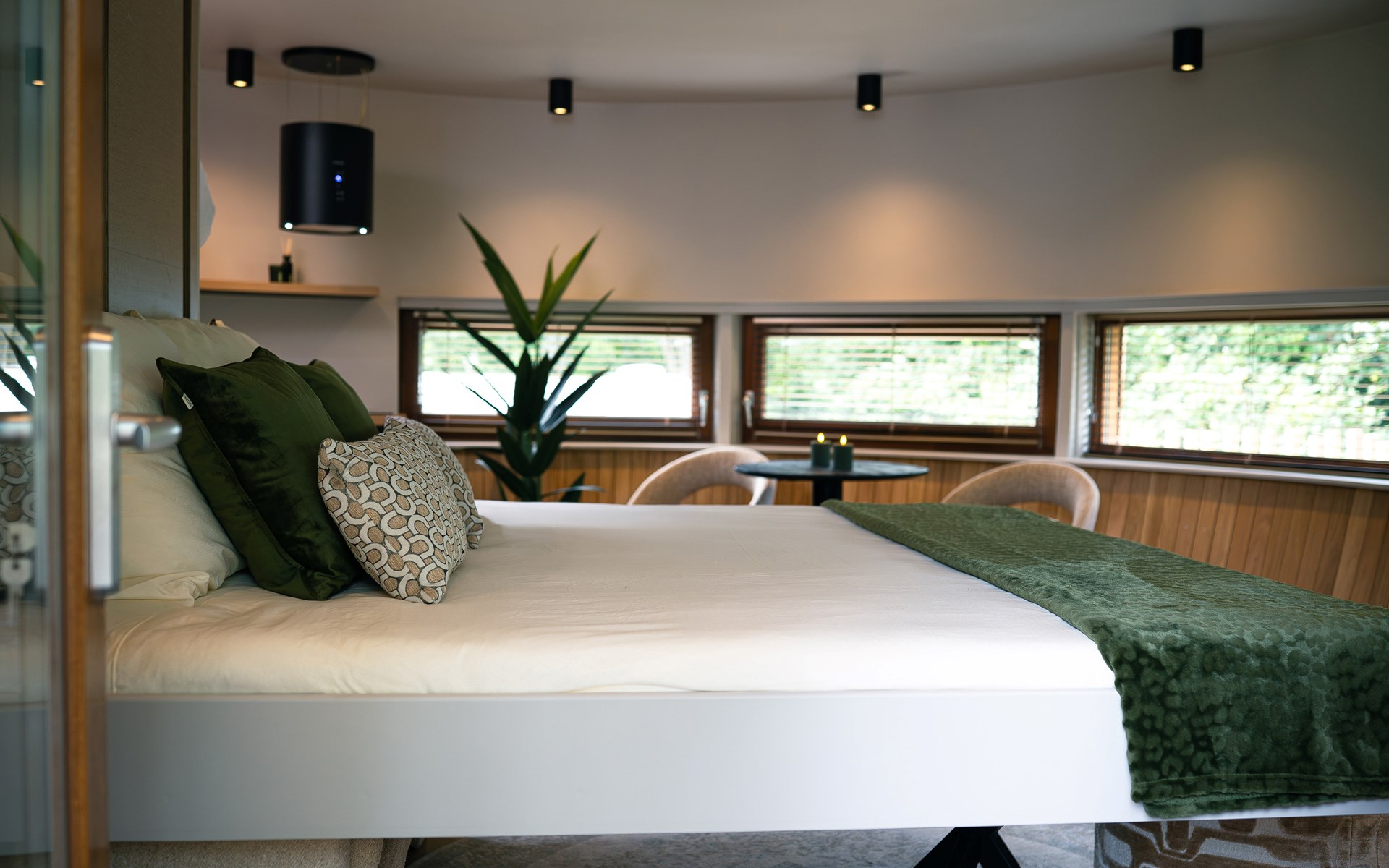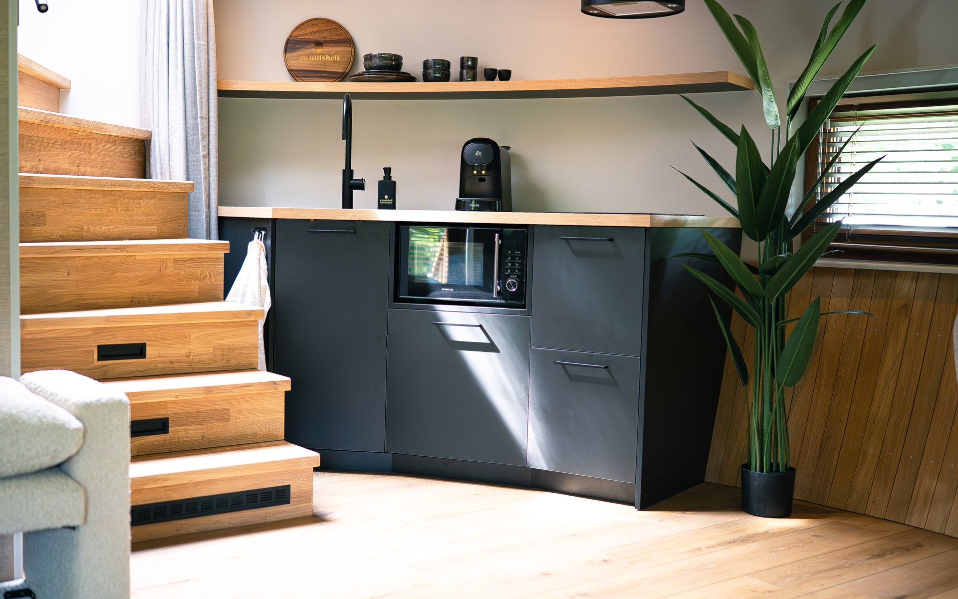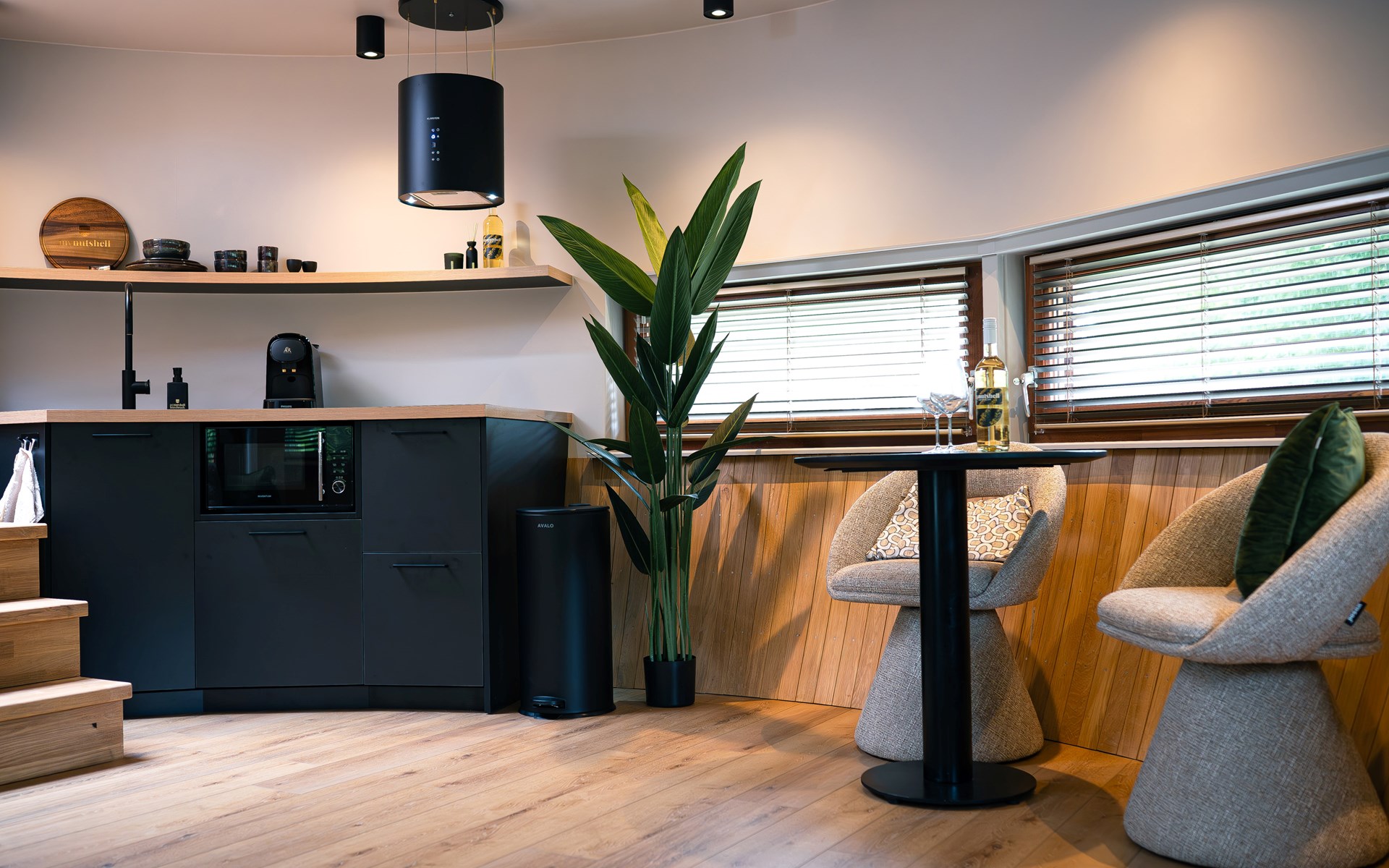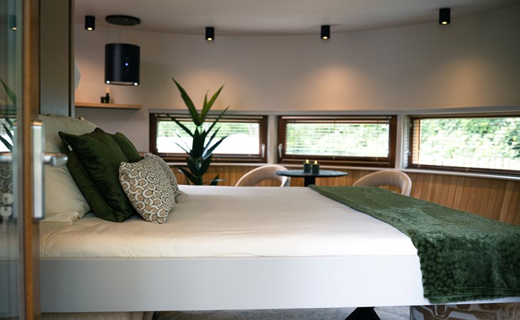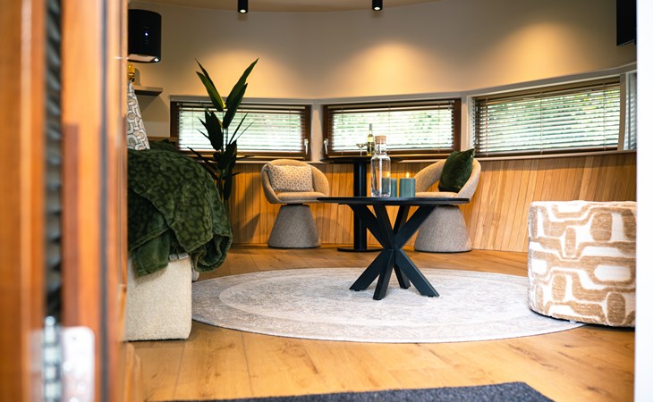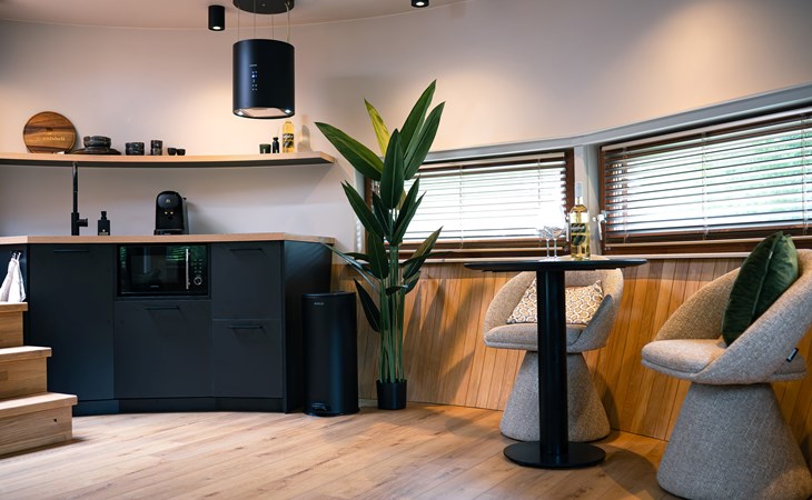 The Nutshell is ontworpen met innovatieve architectuur die naadloos opgaat in de natuurlijke omgeving en een sfeer van rust en luxe creëert. Binnen geniet je van een zorgvuldige inrichting die functionaliteit en esthetiek perfect combineert. Daarnaast zorgt de airco ervoor dat je hier het hele jaar door comfortabel kunt verblijven.