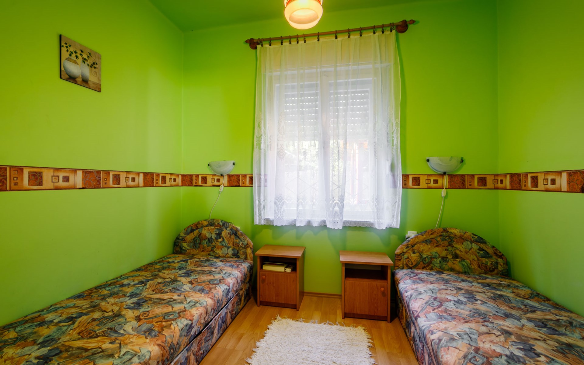 Balatonlelle 28 km van Siófok: Gezellig huis "Verde", gerenoveerd in 2008. Rustige, zonnige ligging, 300 m van het meer, 900 m van het strand. Voor alleengebruik: tuin 500 m2 (omheind), ligweide. Winkel 300 m, levensmiddelenwinkel 600 m, restaurant 300 m, grasstrand 800 m. Attracties in de buurt: Siófok Giant Wheels 37 km, Festetics Castle 52 km, Marcali Spa 45 km, Kishegyi Viewpoint 6 km, Konyári Winery 4 km, Theme Park 2 km.