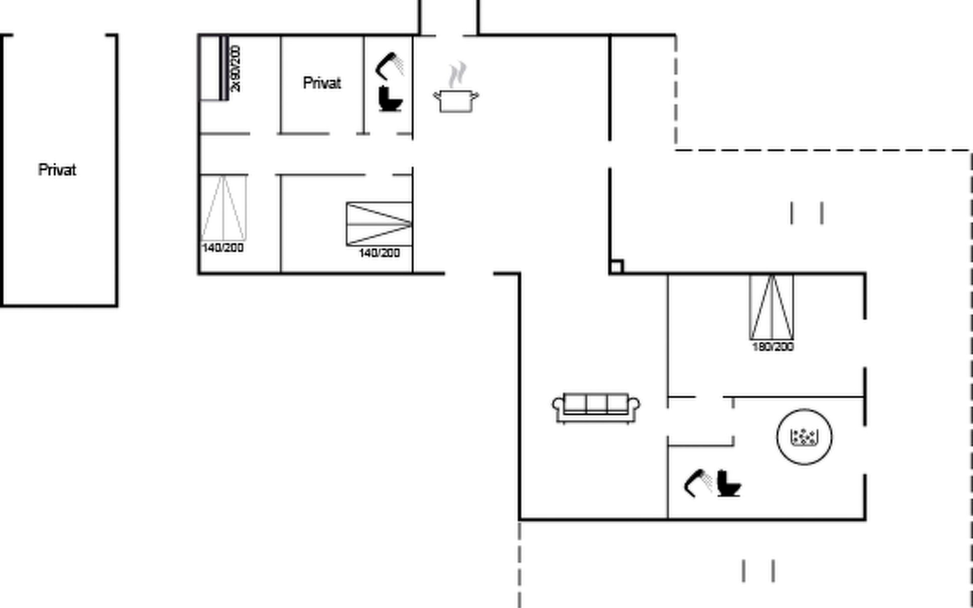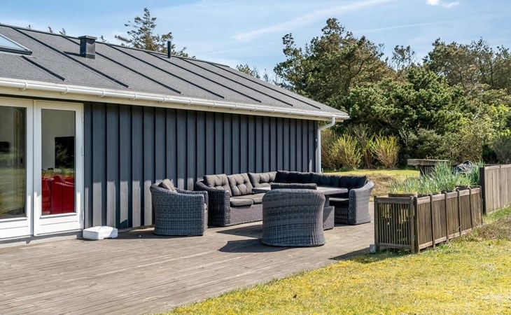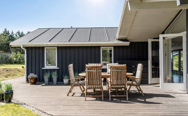 Eengezinswoning, bouwjaar 1976. 400 m van zee. Voor alleengebruik: terrein 2.325 m2, verzorgde tuin. Barbecue, kinderspeelplaats (schommel). In het huis: wasmachine, droger. Parkeerplaats bij het huis. Levensmiddelenwinkel 900 m. De eigenaar accepteert geen jeugdgroepen.