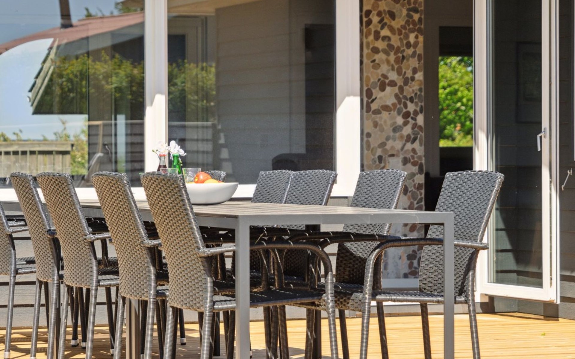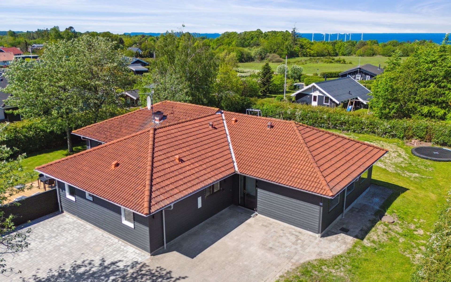 Eengezinswoning, bouwjaar 2001. 850 m van zee. Voor alleengebruik: terrein 1.214 m2, verzorgde tuin, overdekt zwembad (3 x 6 m, 18 m2, 150 - 150 cm diepte). Barbecue, kinderspeelplaats (glijbaan, schommel). In het huis: sauna, trampoline, wasmachine, droger. Parkeerplaats bij het huis. Levensmiddelenwinkel 1.5 km. De eigenaar accepteert geen jeugdgroepen.