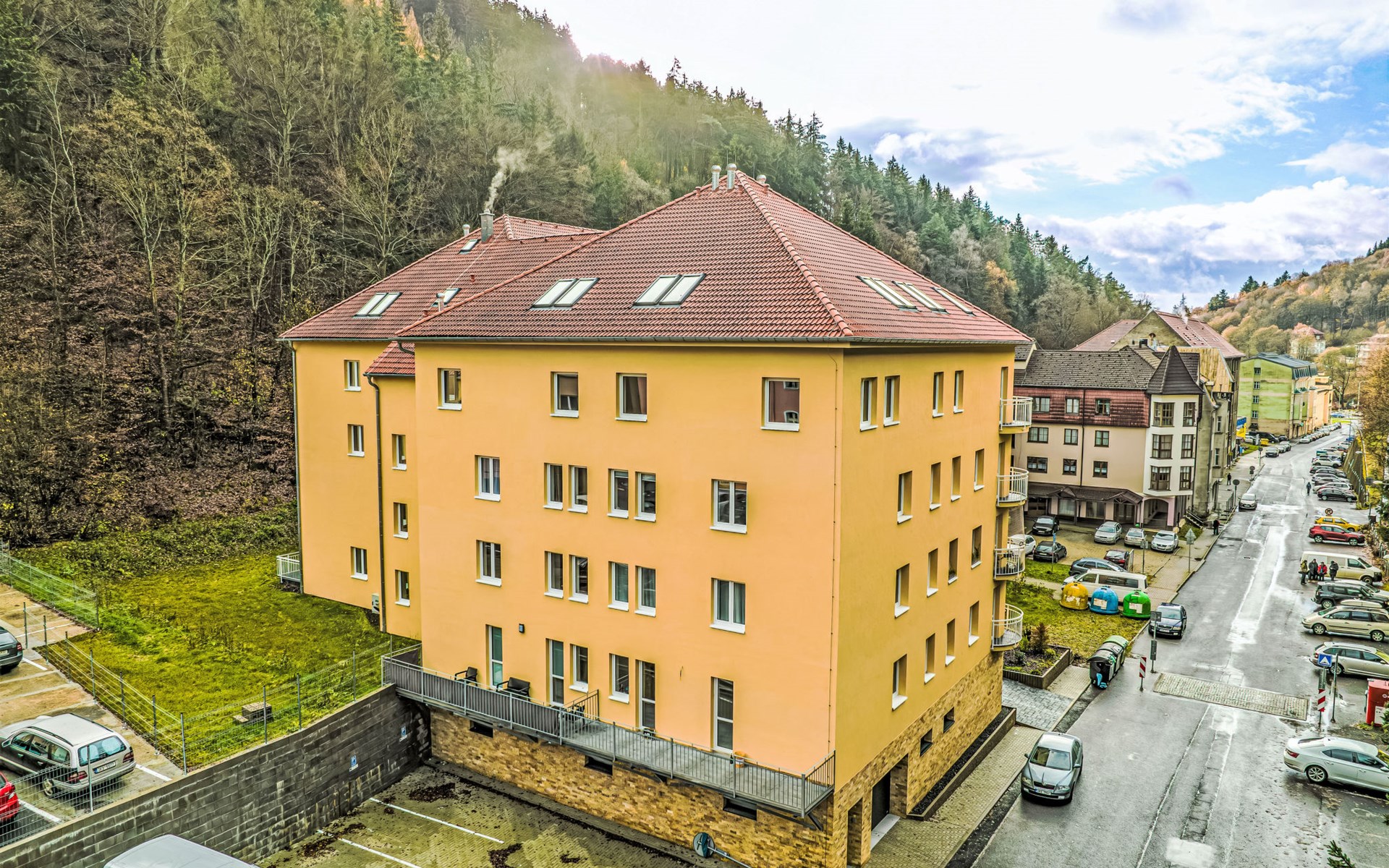 Moderne flatgebouw van 4 verdiepingen, bouwjaar 2023. In het centrum van Jáchymov, 2.5 km van het skigebied. In het huis: lift, centrale verwarming. Ontbijt op aanvraag (extra). Berging beschikbaar. Parkeerplaats bij het huis. Levensmiddelenwinkel 100 m, supermarkt 150 m, winkelcentrum 6 km, restaurant 100 m, biertuin, bushalte "Jáchymov" 150 m, openluchtzwembad 15 km, overdekt zwembad 150 m. Wandelroutes 10 m vanaf het huis, fietspad, stoeltjeslift 2.5 km, skipisten 2.5 km, skiverhuur 2.5 km, skibushalte 30 m, skischool 2.5 km, langlaufloipe 5 km, ijsbaan 6 km, kinderspeelplaats 500 m. Attracties in de buurt: Aqua Centre Agricola 500 m, Spa&Wellness Centre 500 m, Boží Dar 8 km, Karlovy Vary 20 km, Oberwiesetnhal 13 km, Annaberg-Buchholz 33 m. Bekende skigebieden kunnen gemakkelijk worden bereikt: Klínovec 2.5 km, Plešivec 13 km, Fichtelberg 11 km. Wandelgebied Krušnohorská magistrála, Ježíškova cesta. Baby uitrusting op aanvraag (extra).