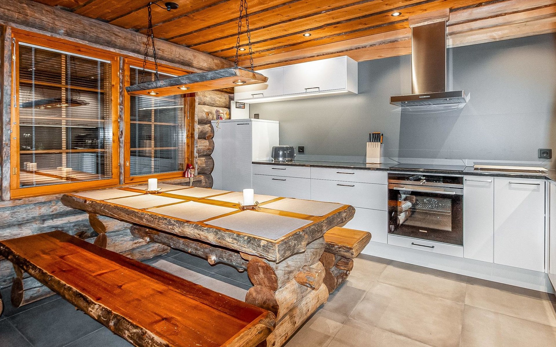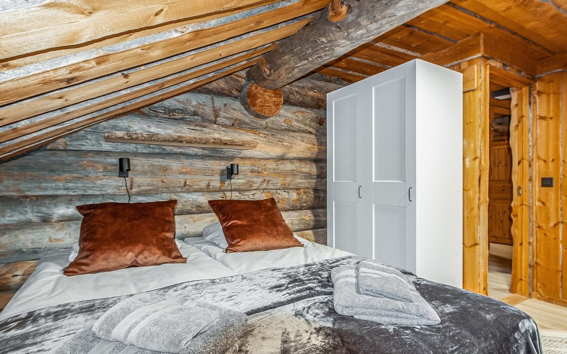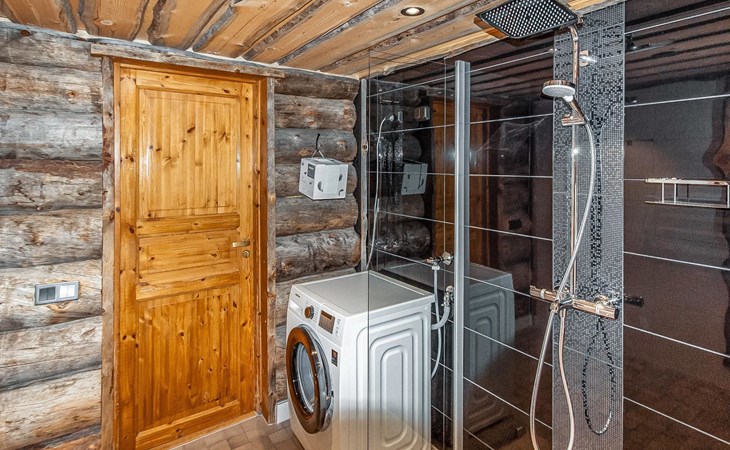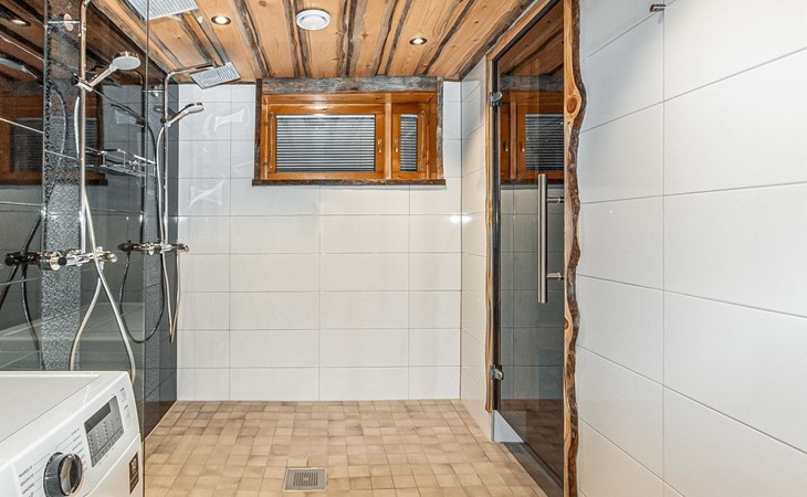 Downstairs: kitchen/living room, bedroom with 2 beds, bathroom with 2 showers, sauna (electric stove), toilet, SkiRoom and terrace. Upstairs: 3 bedrooms, 2 beds in each room, balcony in one room, toilet.