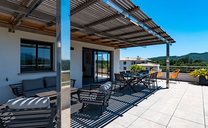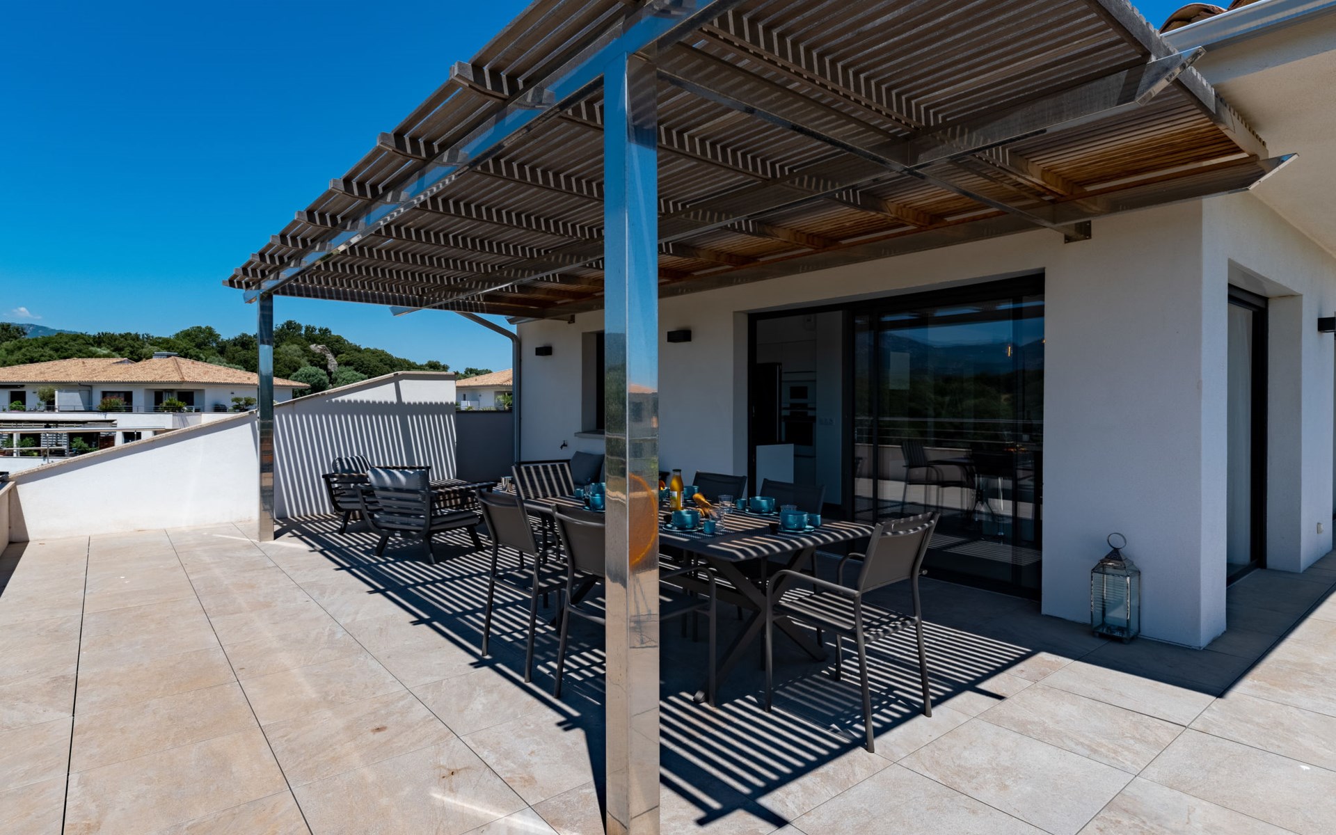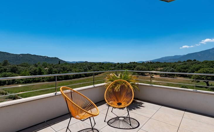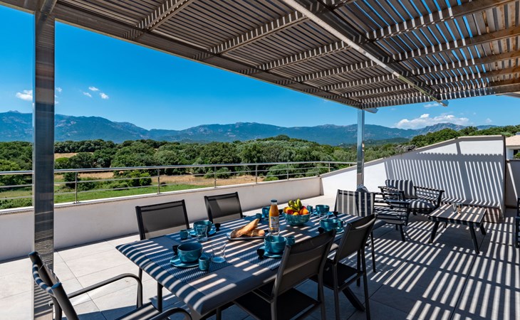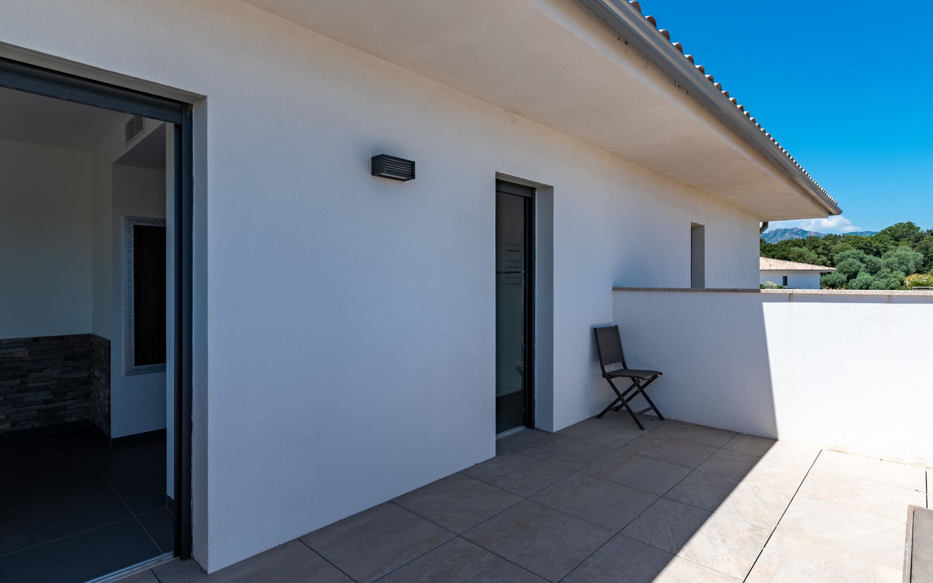 Mooi residentie "Domaine d'Arca". Aan de rand van de plaats, 2 km van het centrum van Porto Vecchio, 4 km van zee, 8 km van het strand. Voor medegebruik: park 4 ha (omheind), openluchtzwembad (seizoensgebonden beschikbaarheid: 01.Jun. - 01.Nov. openingstijden zwembad: 10:00-20:00) met trap. Onregelmatig zwembad. Buitendouche, poolhouse met WC, tennisbaan (2 x hard court), jeu de boules, onderhoud zwembad door de eigenaar/tuinman. Winkel 2 km, levensmiddelenwinkel 1 km, supermarkt 2 km, restaurant, bakkerij 500 m, bushalte 2 km, zandstrand "Santa Giulia" 8 km. Jachthaven 3 km, golfterrein (9 holes) 7 km, manege 3 km. Attracties in de buurt: Figari 18 km, Bonifacio 28 km, Solenzara 40 km, Iles Lavezzi. Wandelgebied, Aiguilles de Bavella, Réserve naturelle de Bonifacio. Auto noodzakelijk. Geschikt voor families. Vliegveld in de buurt 25 km van het huis.