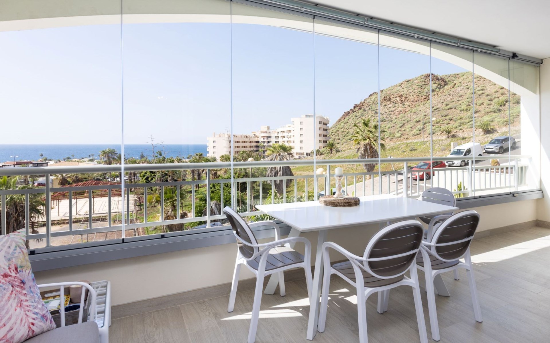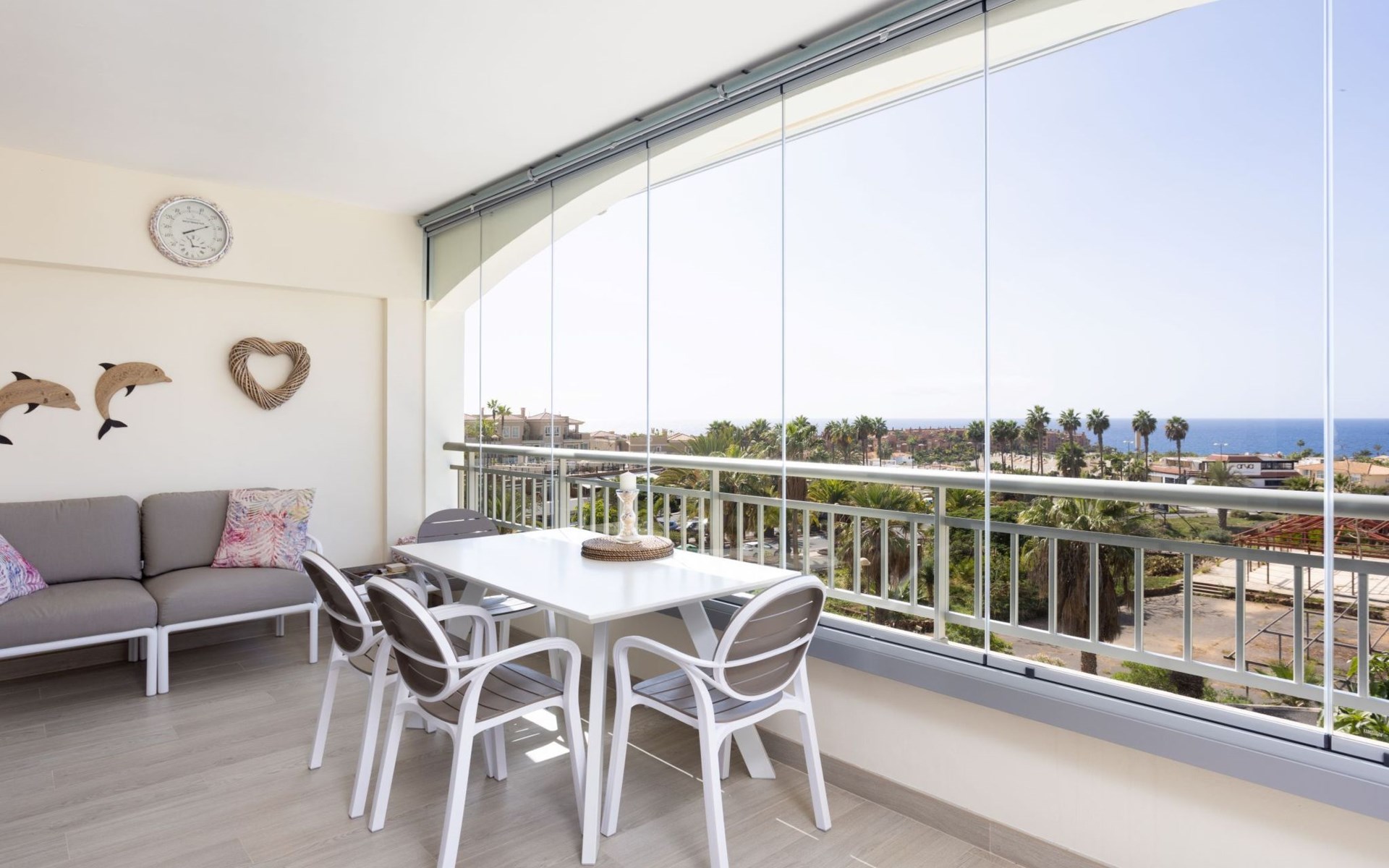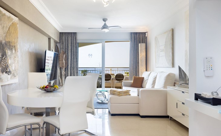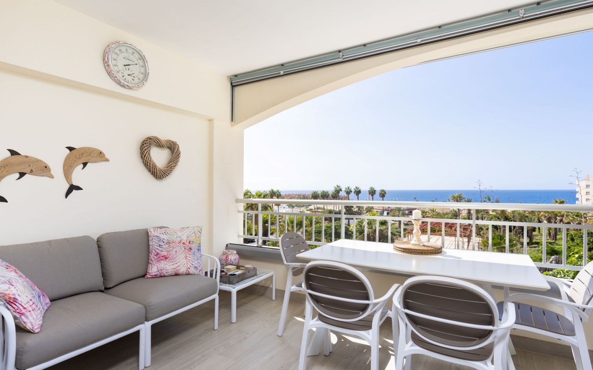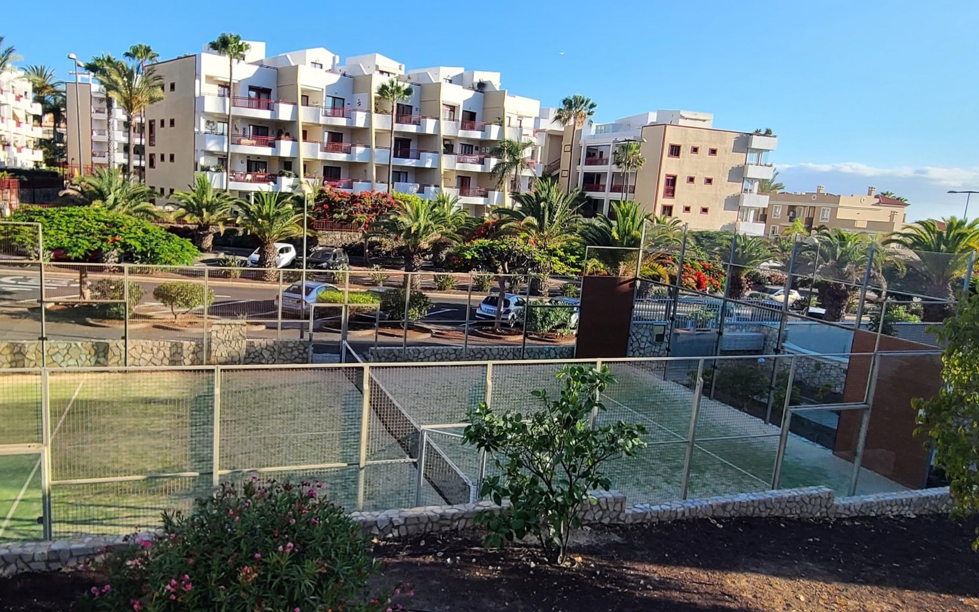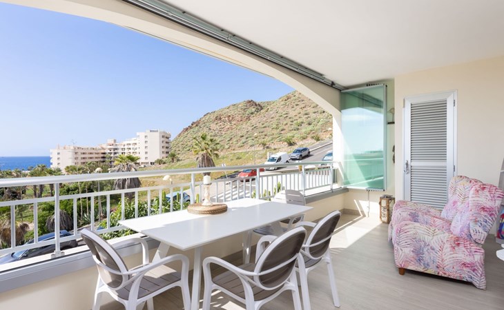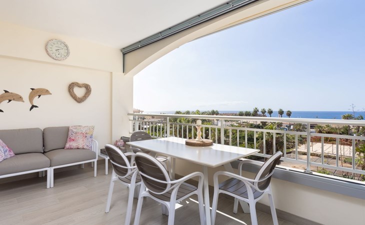 Palm Mar is a quiet, elegant and exclusive residential area in a privileged location between two nature reserves and the sea. Palm Mar is not marketed for tourism, so it is outside the mass tourism in an extremely quiet location and has no hotel or disco and hardly any traffic. An ideal place for holidaymakers who are looking for peace and relaxation, close to the sea and the beautiful beach promenade, from where they can watch the fantastic sunsets behind Isla Gomera. Palm Mar is only 10 minutes by car from the tourist areas of Los Cristianos, Las Americas and Costa Adeje. Tenerife Sur Reina Sofia Airport is 10 kilometres away. At only 50m from the apartment there is a supermarket, bars, restaurants, medical centre, bank, etc. The original beach with the long beach promenade is only 500 metres from the apartment.The flat is approx. 70sqm in size, the terrace with its 14sqm is the highlight of the entire flat. It has just been completely renovated by us with only high-quality materials and modern furniture, the bathroom and kitchen are also completely new. As soon as you wake up you have a great view of the sea directly from your bed, when you sit on the sofa in the lounge you can see the sea, it accompanies you throughout the flat, wherever you are, you can see the sea. The spacious terrace offers a comfortable dining area and a relaxation zone where you can enjoy the beautiful sunsets. The terrace can be used completely open but also protected from the wind and sun behind 6 metres of seamless glazing. The glazing can be opened comfortably and easily and disappears to the side, so that the terrace can be used in any weather.from the modern and very comfortable sofa bed in the salon you can watch your favourite programmes on the new 65" Smart TV, in the bedroom there is another 55" TV where you can watch sports etc. independently of the salon. The bedroom has air conditioning, for which there is a weekly charge.The terrace is modern and comfortably furnished, the two relaxing armchairs invite you to watch the sunset over the sea with a cocktail in your hand. At the large communal pool, we have purchased two private sun loungers with parasols especially for our guests, which are labelled with the flat number M15. The padel tennis court can be used at any time and free of charge. An underground parking space is available to our guests free of charge, lift available and wheelchair accessible.There is a bakery right on the avenue for your fresh bread rolls in the morning and there are other supermarkets for your daily needs and nice cafes, bars and restaurants of various nationalities within a short walking distance. You can walk to the beach promenade in 5 minutes, where the cosy beach bar "Chiringuito Palm Mar" and the elegant beach club "Bahia Beach" await you.Palm Mar is a quiet, elegant and exclusive residential area in a privileged location between two nature reserves and the sea. Palm Mar is not marketed for tourism, so it is outside the mass tourism in an extremely quiet location and has no hotel or disco and no traffic. An ideal place for holidaymakers who are looking for peace and relaxation, close to the sea and the beautiful beach promenade, from where they can watch the fantastic sunsets behind Isla Gomera. Palm Mar is only 10 minutes by car from the tourist areas of Los Cristianos, Las Americas and Costa Adeje. Tenerife Sur Reina Sofia Airport is 10 kilometres away. At only 50-100m from the apartment there is a supermarket, bars, restaurants, medical centre, bank, etc. The original beach with the long beach promenade is only 500 metres from the apartment. An exclusive beach club has just opened there and a very cosy chiringuito has also recently found its location there. From the bar, with a cocktail or a cold beer in your hand, you can watch the sea, Los Cristianos, the ferries arriving and departing and the sun setting behind La Gomera. The beautiful Malpais nature reserve of La Rasca (popular for hiking and trekking) is a 10-minute walk along the seafront promenade. Here you walk through a colourful volcanic landscape along the sea, which is rewarded with the climb to the lighthouse after approx. 3 km. The nearest golf course is Los Palos, only 2 km away, Golf del Sur can be reached in about 10 minutes by car or the luxury golf course Costa Adeje is 20 minutes away, from the south airport it is about 20 minutes by car to Palm Mar. You can park your hire car either on the street directly in front of the building or in your own underground car park. ESFCTU0000380160007192340000000000000VV-38-4-0095