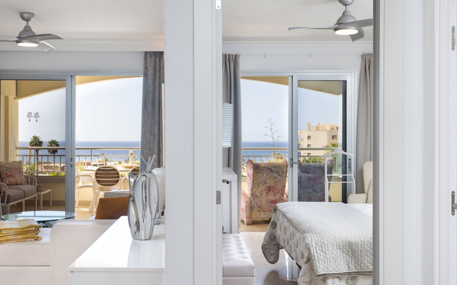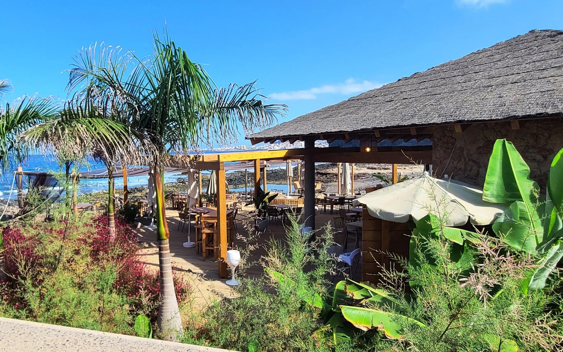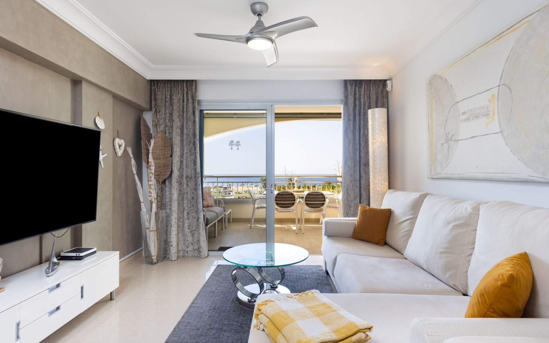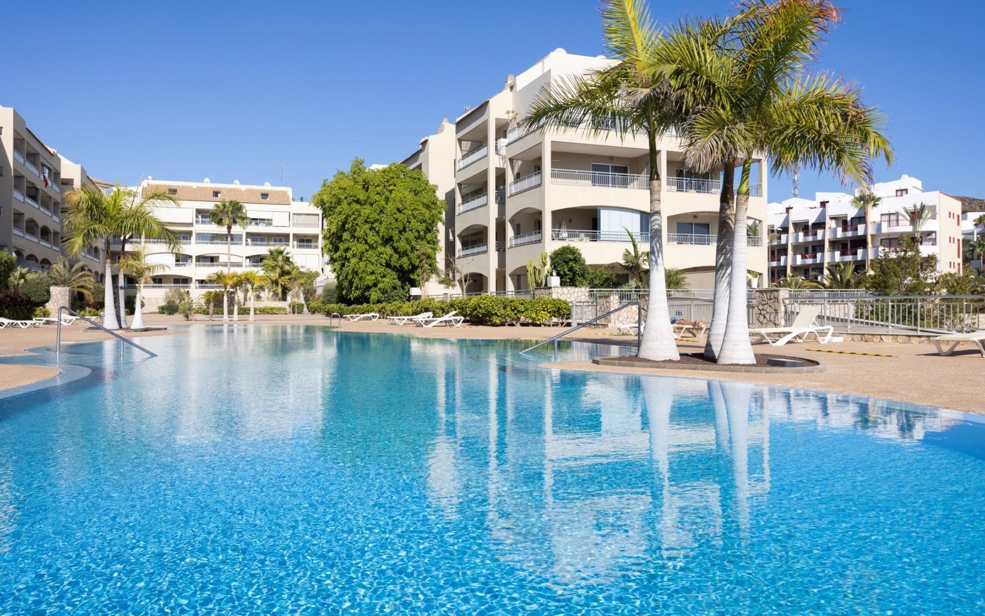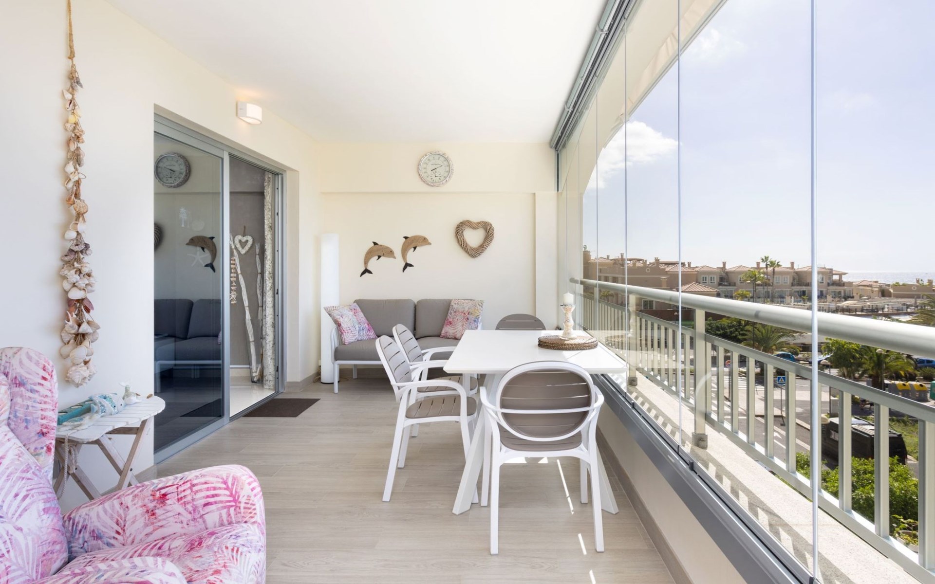 Palm Mar is a quiet, elegant and exclusive residential area in a privileged location between two nature reserves and the sea. Palm Mar is not marketed for tourism, so it is outside the mass tourism in an extremely quiet location and has no hotel or disco and hardly any traffic. An ideal place for holidaymakers who are looking for peace and relaxation, close to the sea and the beautiful beach promenade, from where they can watch the fantastic sunsets behind Isla Gomera. Palm Mar is only 10 minutes by car from the tourist areas of Los Cristianos, Las Americas and Costa Adeje. Tenerife Sur Reina Sofia Airport is 10 kilometres away. At only 50m from the apartment there is a supermarket, bars, restaurants, medical centre, bank, etc. The original beach with the long beach promenade is only 500 metres from the apartment.The flat is approx. 70sqm in size, the terrace with its 14sqm is the highlight of the entire flat. It has just been completely renovated by us with only high-quality materials and modern furniture, the bathroom and kitchen are also completely new. As soon as you wake up you have a great view of the sea directly from your bed, when you sit on the sofa in the lounge you can see the sea, it accompanies you throughout the flat, wherever you are, you can see the sea. The spacious terrace offers a comfortable dining area and a relaxation zone where you can enjoy the beautiful sunsets. The terrace can be used completely open but also protected from the wind and sun behind 6 metres of seamless glazing. The glazing can be opened comfortably and easily and disappears to the side, so that the terrace can be used in any weather.from the modern and very comfortable sofa bed in the salon you can watch your favourite programmes on the new 65" Smart TV, in the bedroom there is another 55" TV where you can watch sports etc. independently of the salon. The bedroom has air conditioning, for which there is a weekly charge.The terrace is modern and comfortably furnished, the two relaxing armchairs invite you to watch the sunset over the sea with a cocktail in your hand. At the large communal pool, we have purchased two private sun loungers with parasols especially for our guests, which are labelled with the flat number M15. The padel tennis court can be used at any time and free of charge. An underground parking space is available to our guests free of charge, lift available and wheelchair accessible.There is a bakery right on the avenue for your fresh bread rolls in the morning and there are other supermarkets for your daily needs and nice cafes, bars and restaurants of various nationalities within a short walking distance. You can walk to the beach promenade in 5 minutes, where the cosy beach bar "Chiringuito Palm Mar" and the elegant beach club "Bahia Beach" await you.Palm Mar is a quiet, elegant and exclusive residential area in a privileged location between two nature reserves and the sea. Palm Mar is not marketed for tourism, so it is outside the mass tourism in an extremely quiet location and has no hotel or disco and no traffic. An ideal place for holidaymakers who are looking for peace and relaxation, close to the sea and the beautiful beach promenade, from where they can watch the fantastic sunsets behind Isla Gomera. Palm Mar is only 10 minutes by car from the tourist areas of Los Cristianos, Las Americas and Costa Adeje. Tenerife Sur Reina Sofia Airport is 10 kilometres away. At only 50-100m from the apartment there is a supermarket, bars, restaurants, medical centre, bank, etc. The original beach with the long beach promenade is only 500 metres from the apartment. An exclusive beach club has just opened there and a very cosy chiringuito has also recently found its location there. From the bar, with a cocktail or a cold beer in your hand, you can watch the sea, Los Cristianos, the ferries arriving and departing and the sun setting behind La Gomera. The beautiful Malpais nature reserve of La Rasca (popular for hiking and trekking) is a 10-minute walk along the seafront promenade. Here you walk through a colourful volcanic landscape along the sea, which is rewarded with the climb to the lighthouse after approx. 3 km. The nearest golf course is Los Palos, only 2 km away, Golf del Sur can be reached in about 10 minutes by car or the luxury golf course Costa Adeje is 20 minutes away, from the south airport it is about 20 minutes by car to Palm Mar. You can park your hire car either on the street directly in front of the building or in your own underground car park. ESFCTU0000380160007192340000000000000VV-38-4-0095