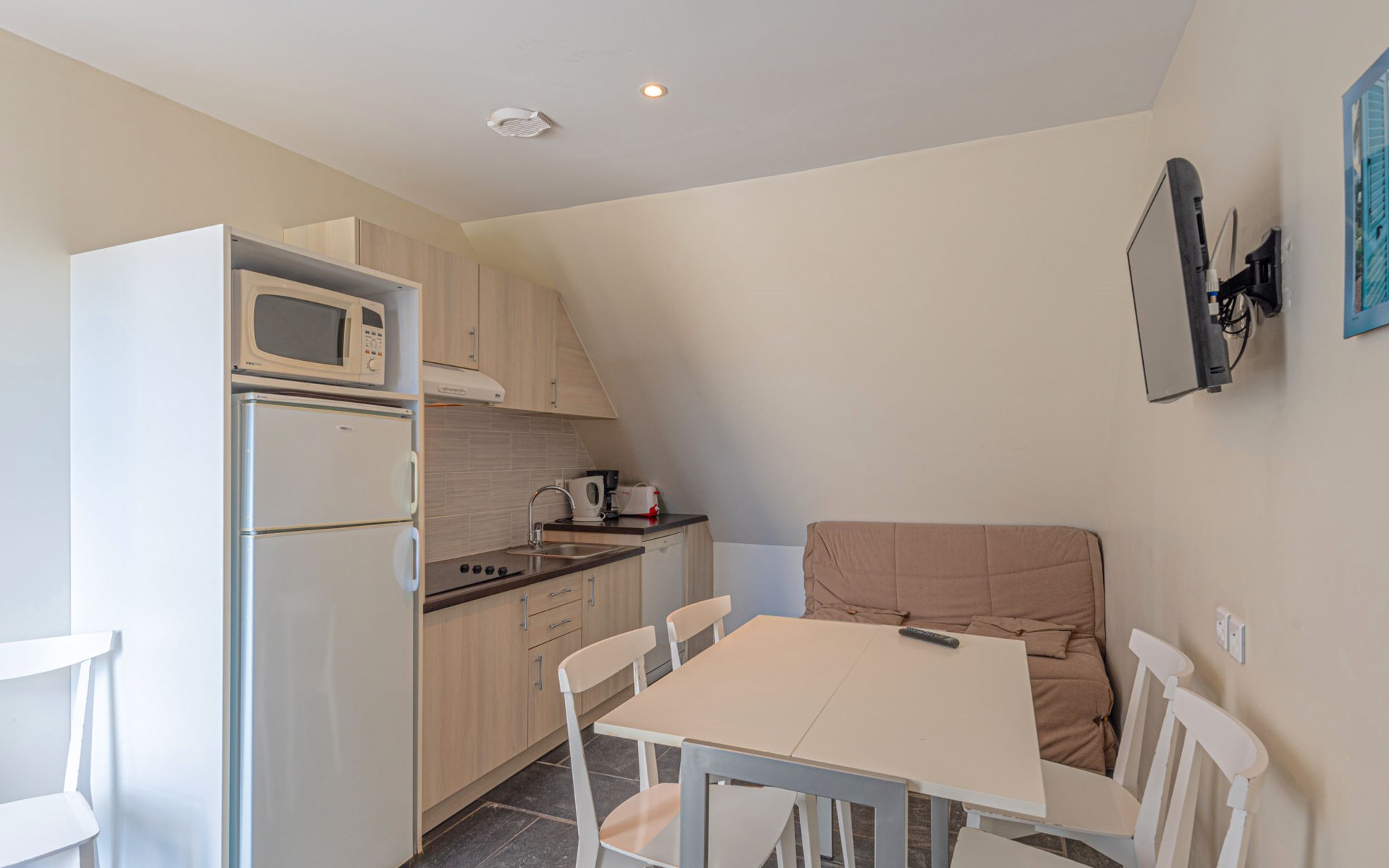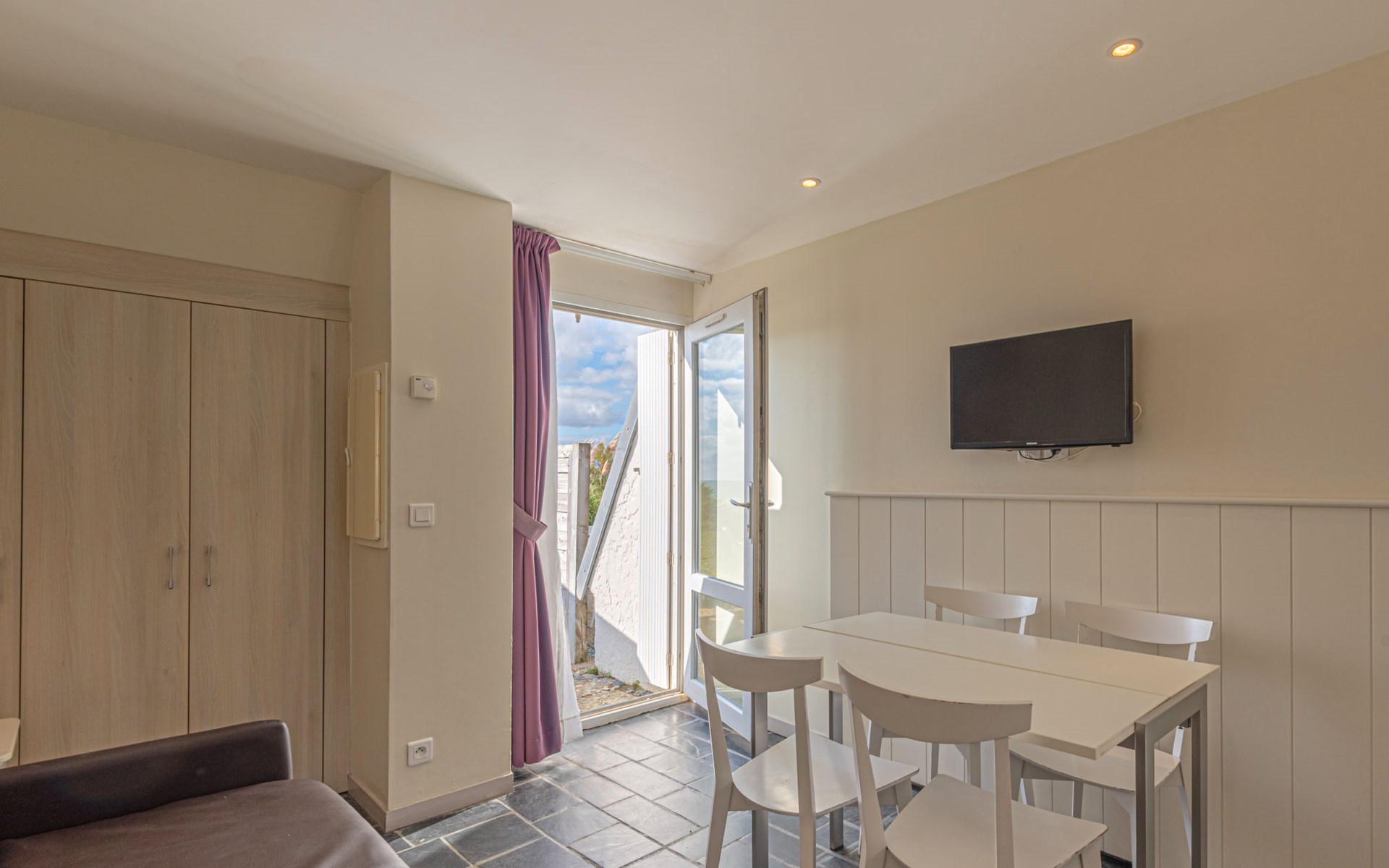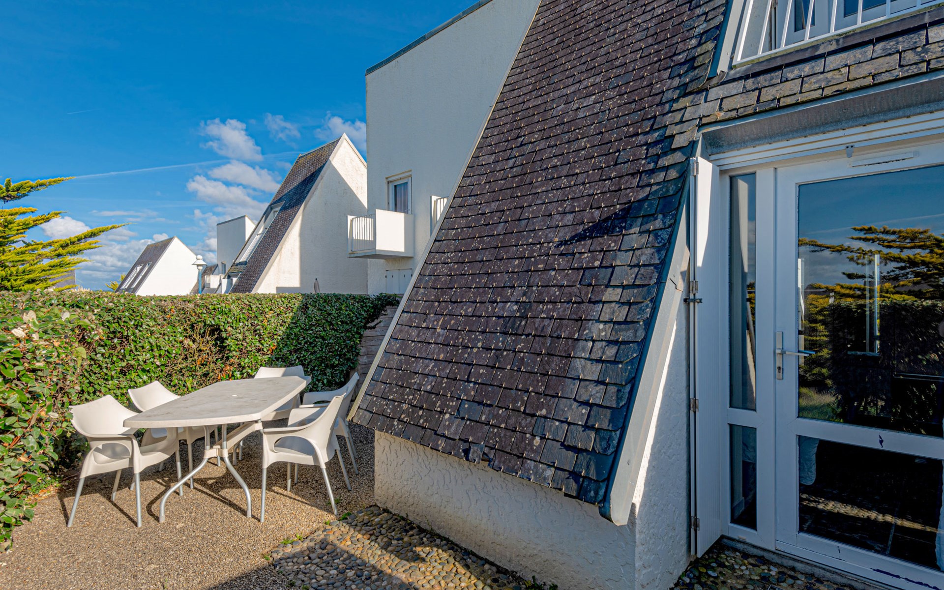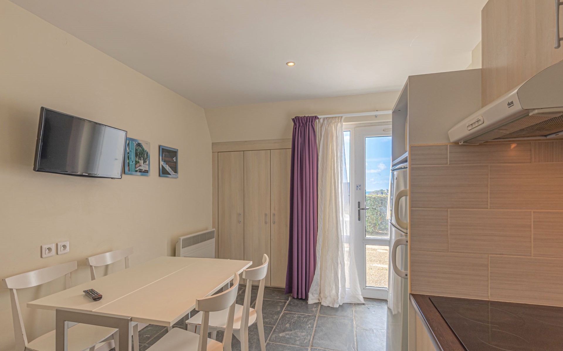 Kindvriendelijk vakantiecomplex "Sud Océan". 16 km van het centrum van Lorient, 82 km van het centrum van Quimper, 150 m van zee. Voor medegebruik: wild terrein met gazon en planten, openluchtzwembad verwarmd (seizoensgebonden beschikbaarheid: 01.Mei. - 30.Sep.). Kinderspeelplaats. In het complex: receptie, Internet (WiFi), wasmachine (extra), droger (voor medegebruik, extra). Parkeerplaats. Zandstrand "Plage de La Falaise" 150 m. Attracties in de buurt: Parc animalier du Quinquis 16 km.