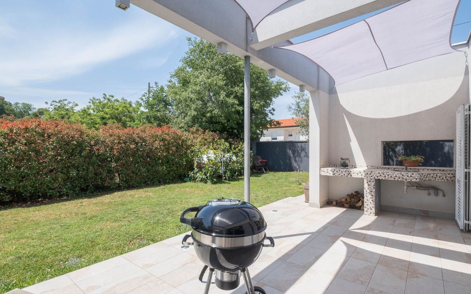 Welcome to House Sparrow, your serene getaway nestled in the charming surroundings of Vintijan, Istrien. This enticing holiday house is designed to cater to those who seek a peaceful retreat without straying too far from the vibrancy of Pula city. Accommodating up to 6 persons, House Sparrow stands as an ideal residence for families or groups looking to experience the essence of Istrien while enjoying the comforts of a home.Inside, House Sparrow presents a harmonious blend of comfort and functionality across its three inviting bedrooms and two bathrooms, ensuring ample space and privacy for all guests. The house is equipped with underfloor heating and air conditioning throughout, creating a pleasant living environment in any season. For entertainment, a large smart TV with cable TV is available in the living room, setting the stage for memorable movie nights. Beyond convenience, the house boasts a well-appointed kitchen featuring a Ceran hob, dishwasher, electric kettle, coffee machine, and even an ice maker, guaranteeing a seamless cooking experience.Venturing outside, guests are treated to a beautifully landscaped garden that serves as a tranquil oasis for relaxation. The garden comes complete with a BBQ, inviting guests to indulge in delightful al fresco dining amidst the serene backdrop of House Sparrow. The presence of a private parking space capable of accommodating up to 3 cars underscores the property's commitment to offering a hassle-free stay.The location of House Sparrow offers a perfect balance of tranquility and accessibility. Nestled merely 1200m from pristine beaches and the sea, the house promises a delightful beach experience within a short walking distance. Essential amenities such as a grocery store can be found 600m away, ensuring convenience for everyday needs. Moreover, the property's proximity to Pula city center, less than 3 km from the city market, allows guests to effortlessly explore the local culture, cuisine, and landmarks.House Sparrow embodies a truly special retreat in Vintijan, Istrien. With its thoughtful amenities, serene garden, and exceptional location, it stands as a sanctuary for those wishing to explore the wonders of Istrien or simply unwind in a comfortable and peaceful environment. Whether you're seeking an adventurous trip or a tranquil escape, House Sparrow is poised to make your stay unforgettable.