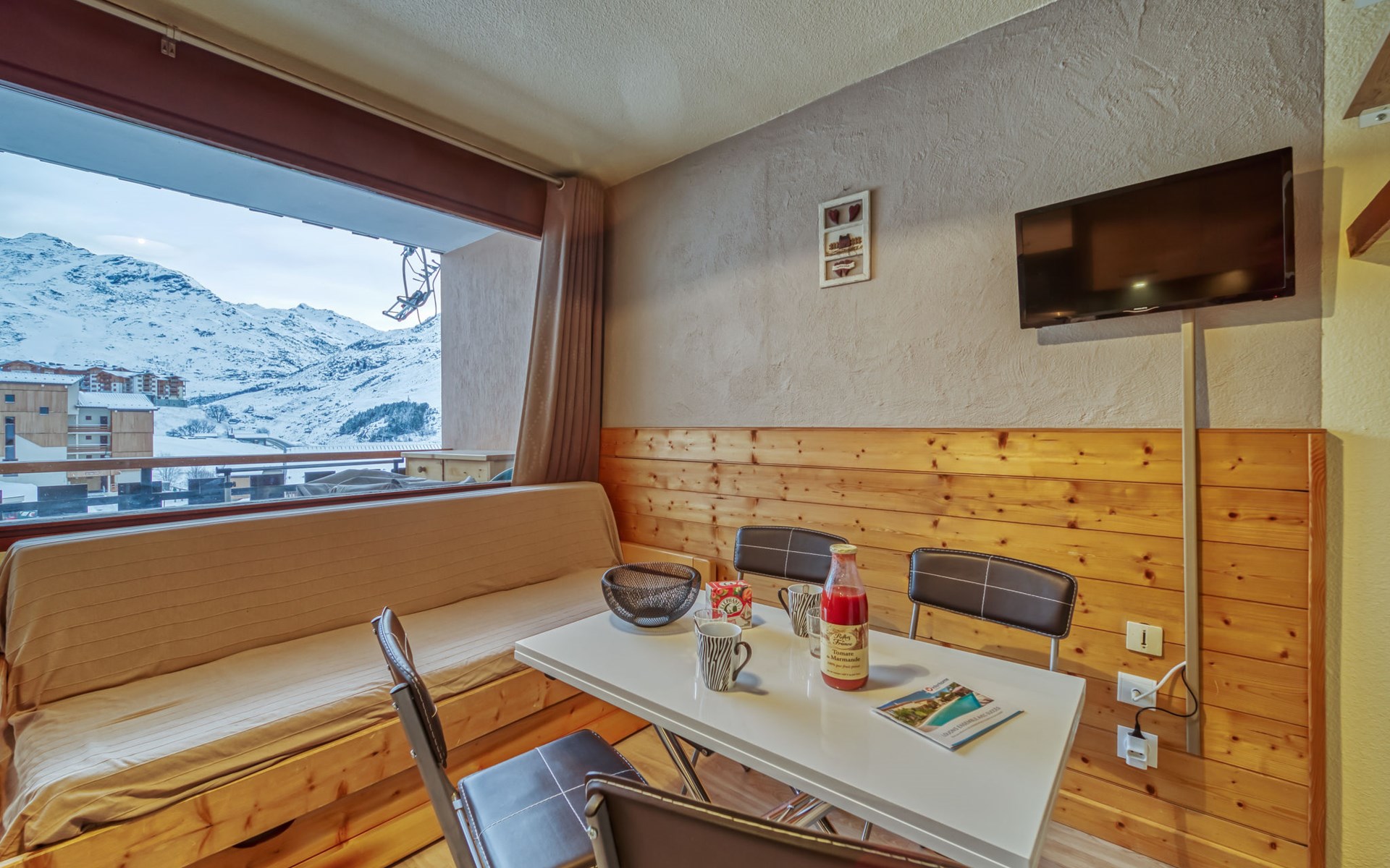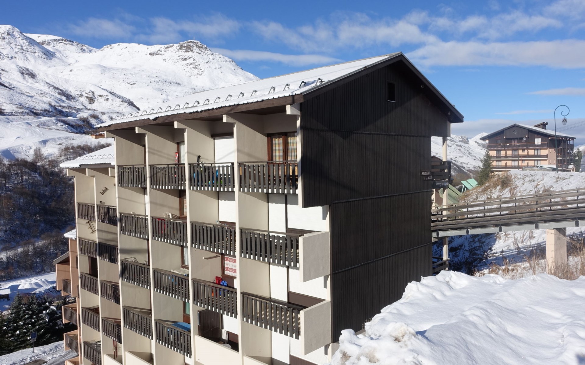 Residentie "L'Argousier", van 6 verdiepingen. In de wijk Fontanettes, 800 m van het centrum, 200 m van het skigebied. In het huis: lift, berging voor ski's. Openbare parkeerplaatsen in de straat. Bushalte "ARRET les fontanettes bas" 300 m. Stoeltjeslift 200 m, ski faciliteiten 200 m, skipisten 100 m, skibushalte 50 m, skischool, kinderoppasdienst 800 m. Bekende skigebieden kunnen gemakkelijk worden bereikt: 3 Vallées. De afgebeelde foto is slechts een voorbeeld. Vergelijkbare accommodaties kunnen worden geboekt.