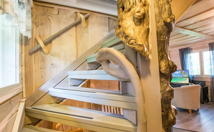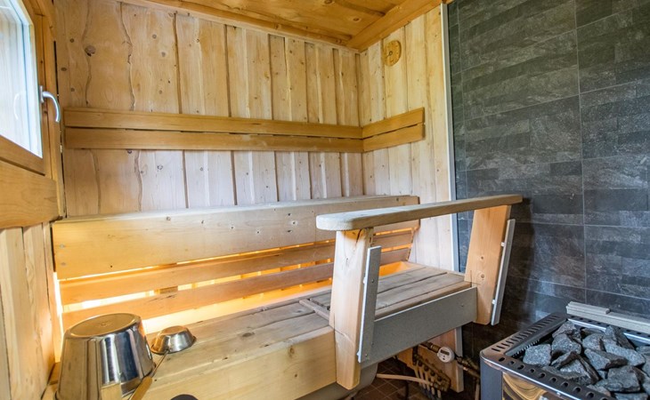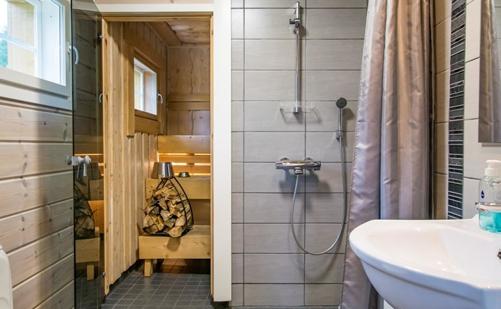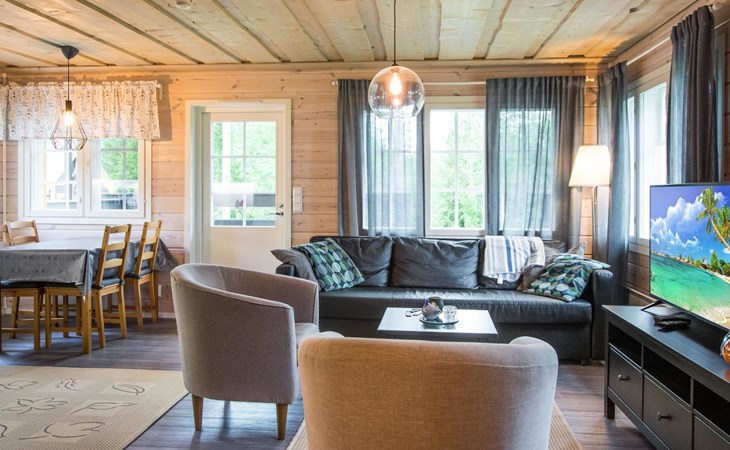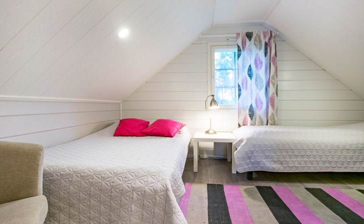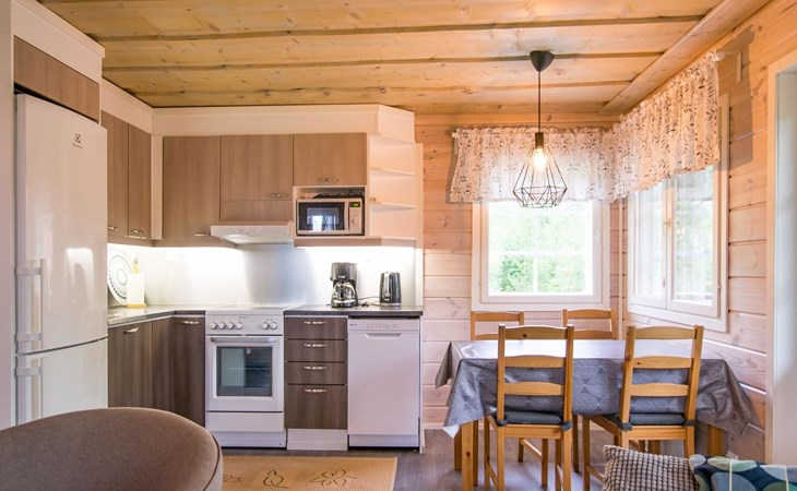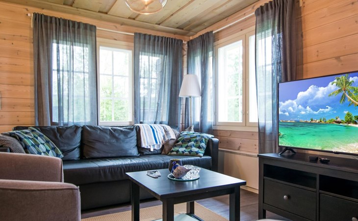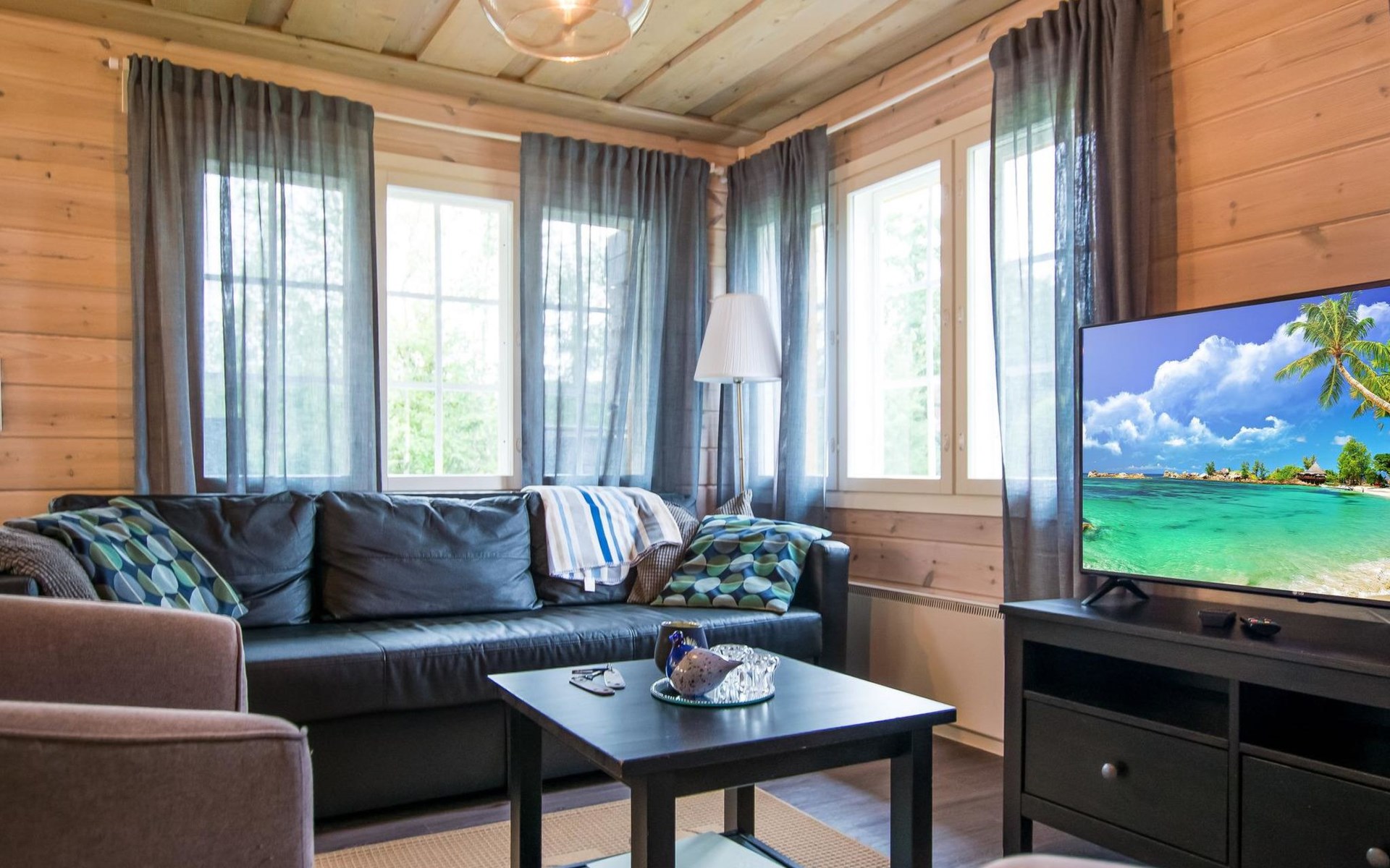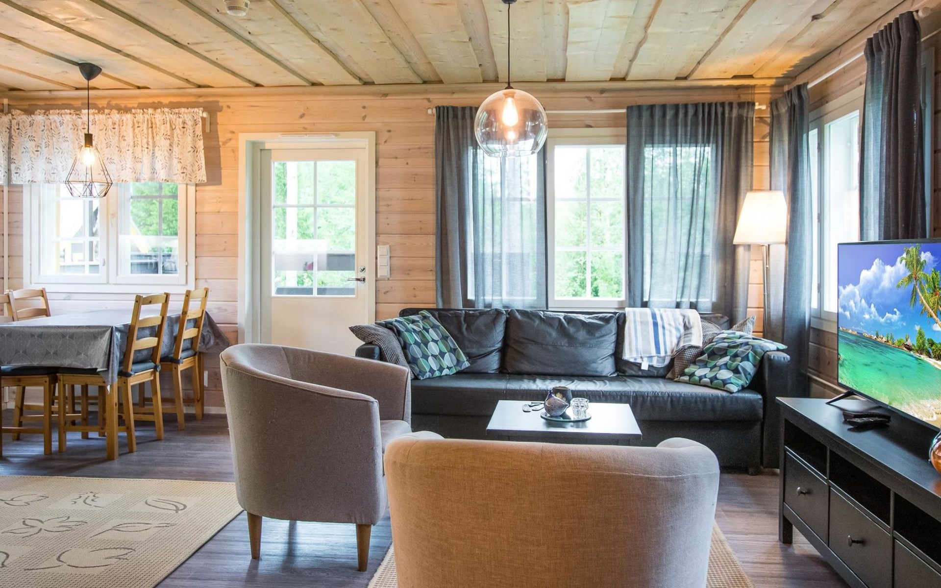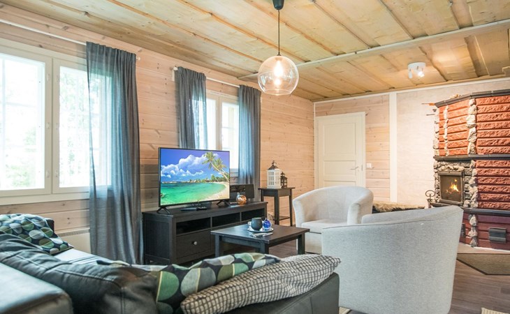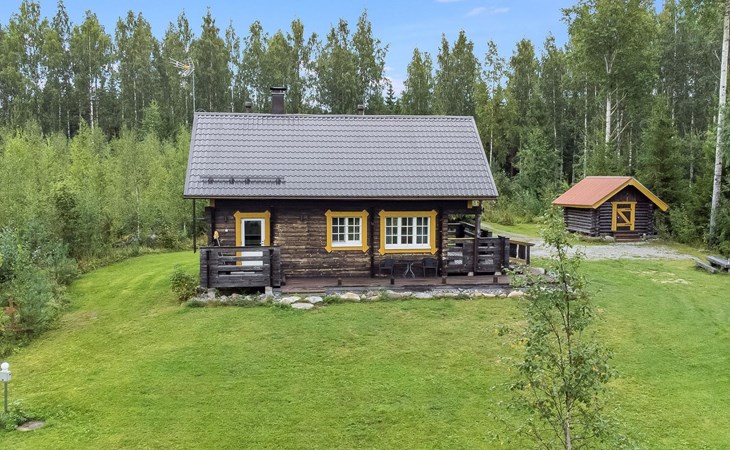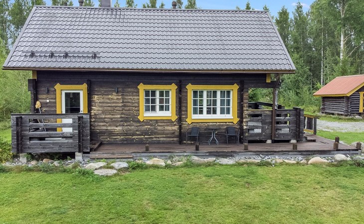 Log cottage 2018, living room with sofa bed, upstairs 2 bedrooms with 2 beds in each, washroom, sauna and terrace. On the terrace there is a gas grill (no marquis anymore).