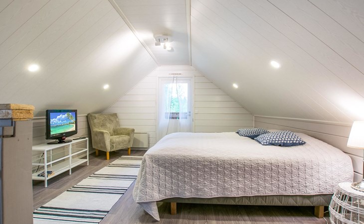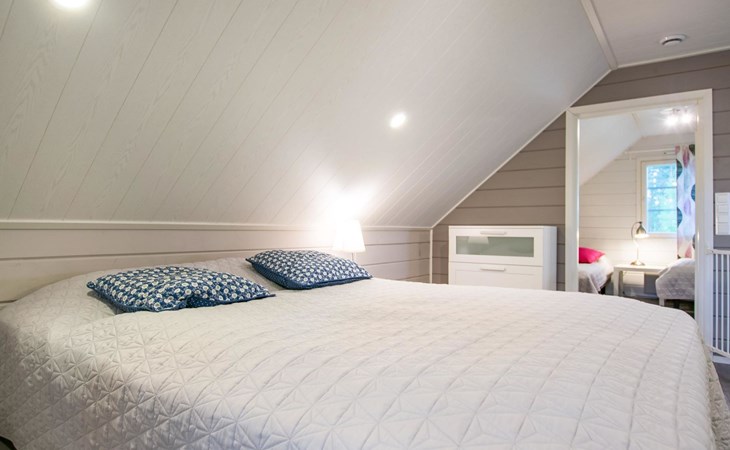 In front of the villa there is a spacious P-place, storage / woodshed and a wide lawn courtyard on the beach side that is sloping down to the beach.
