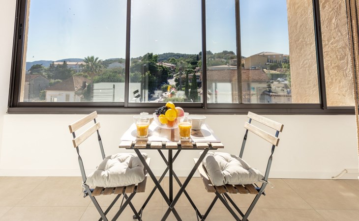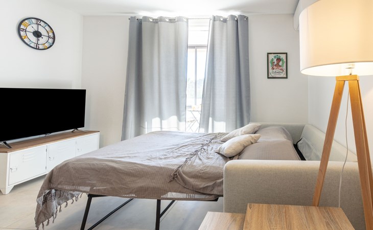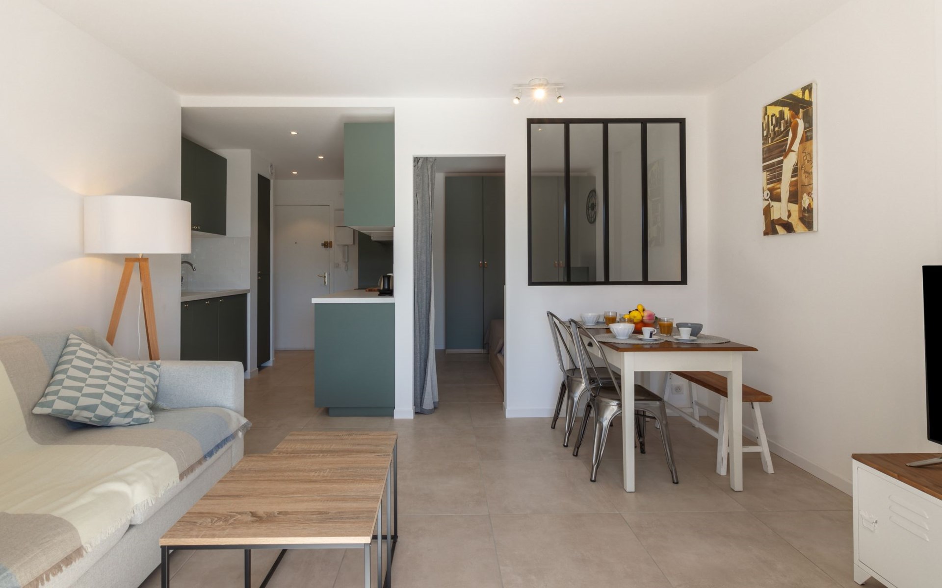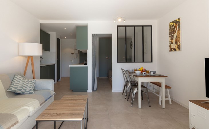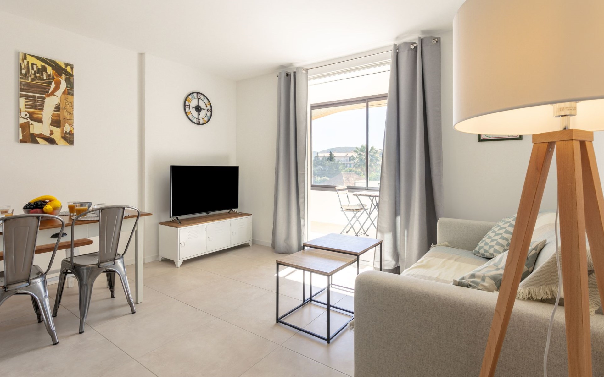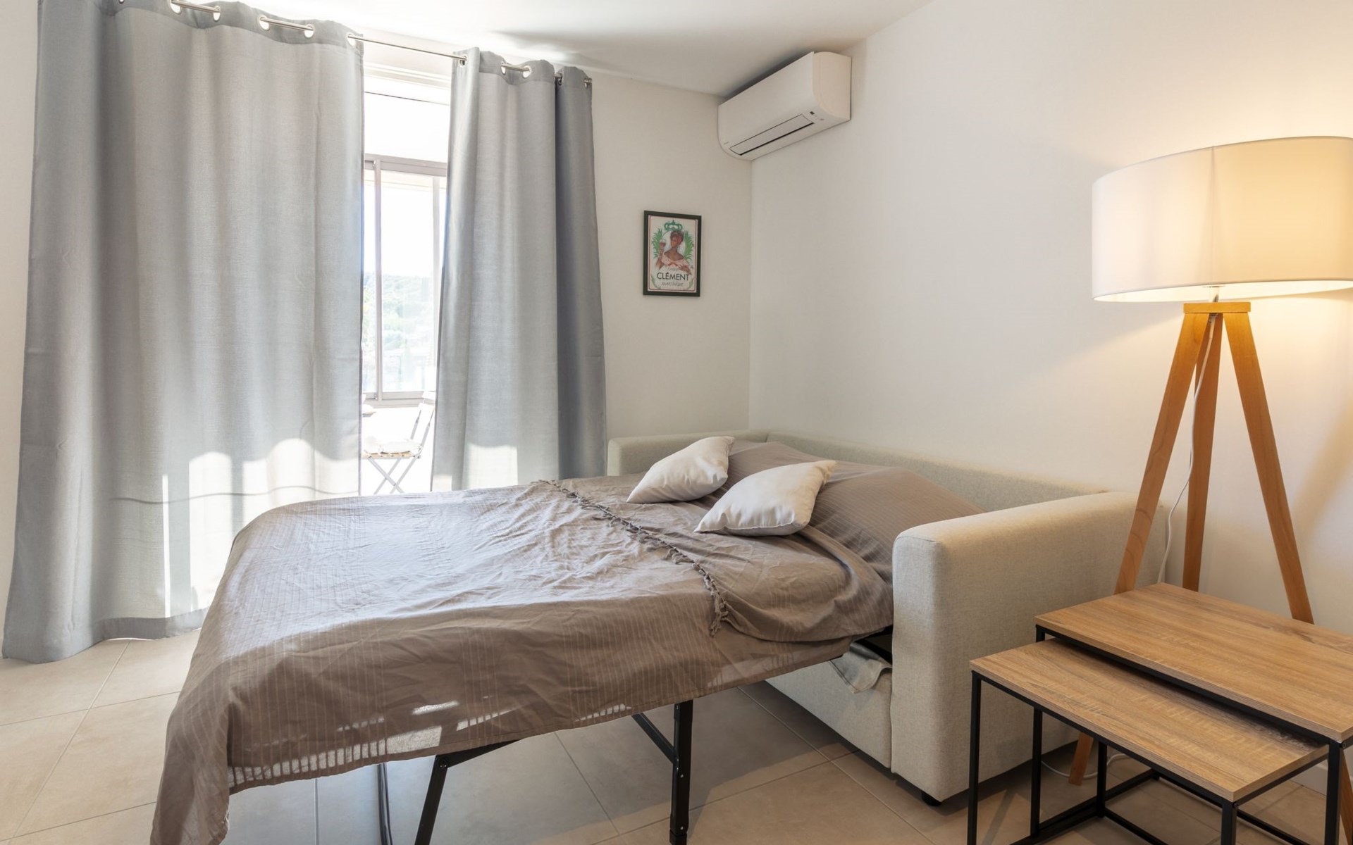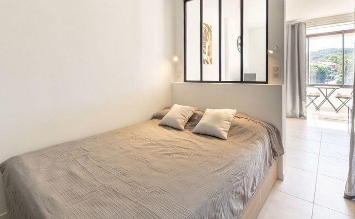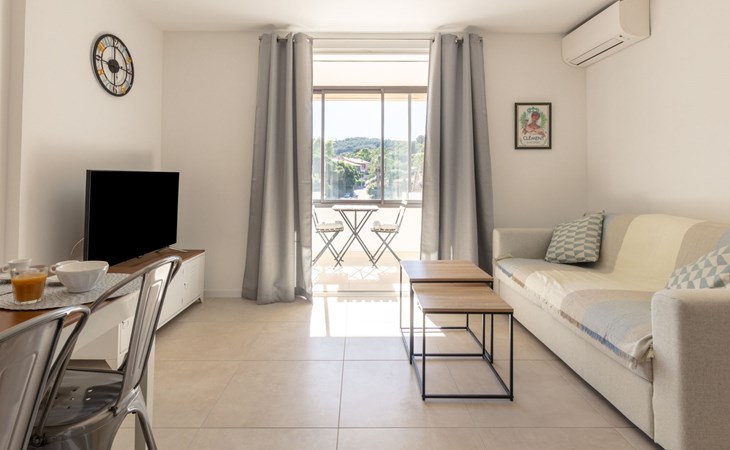 Residentie "Odyssee 80". In het centrum van La Croix Valmer, zonnige ligging, 3.1 km van zee, 3.1 km van het strand. Winkel, levensmiddelenwinkel 30 m, supermarkt 800 m, winkelcentrum 7 km, restaurant, bar 30 m, bakkerij 100 m, bushalte "croix de constantin" 290 m, zandstrand "Tabou Beach Club" 3 km, park "Aqualand" 17.9 km, openluchtzwembad 500 m. Jachthaven 5.5 km, zeilschool 3 km, tennis 500 m, midgetgolf 7.5 km, manege 5.7 km. Attracties in de buurt: Azur Park, Paint-ball. De sleuteloverdracht vindt plaats bij het agentschap Interhome in Cavalaire, 7 km.
