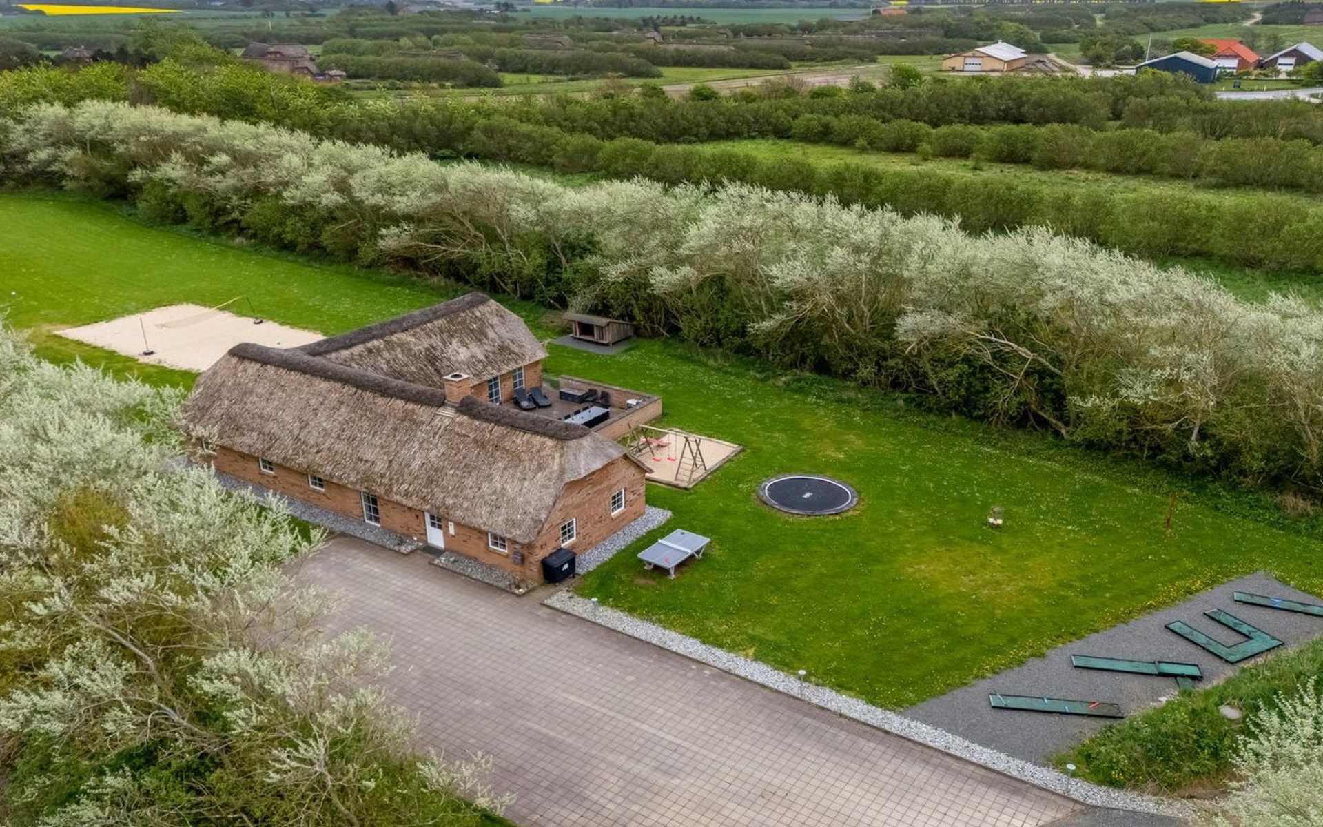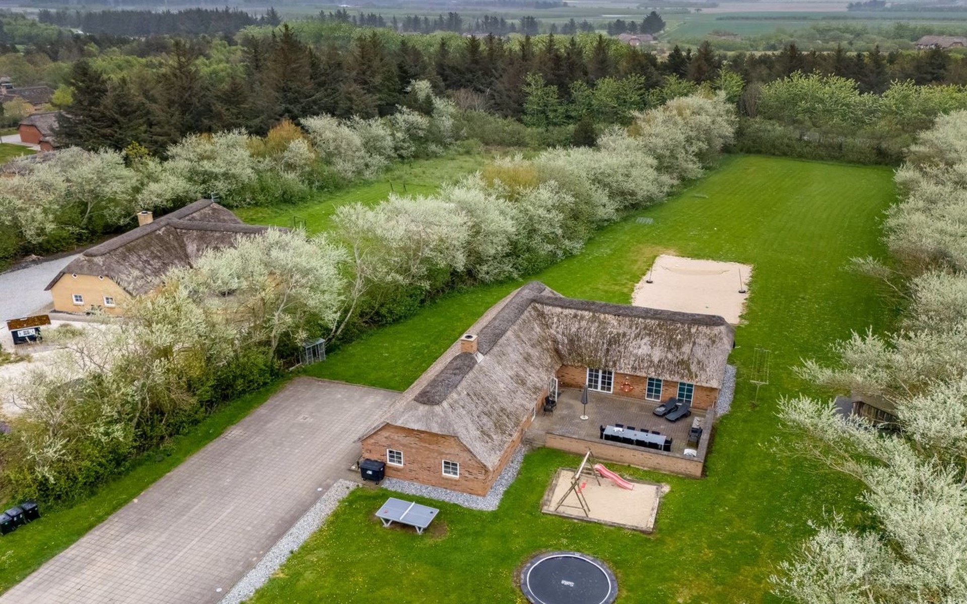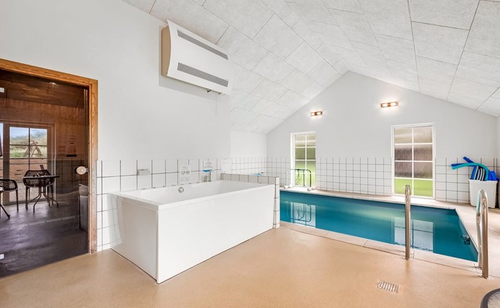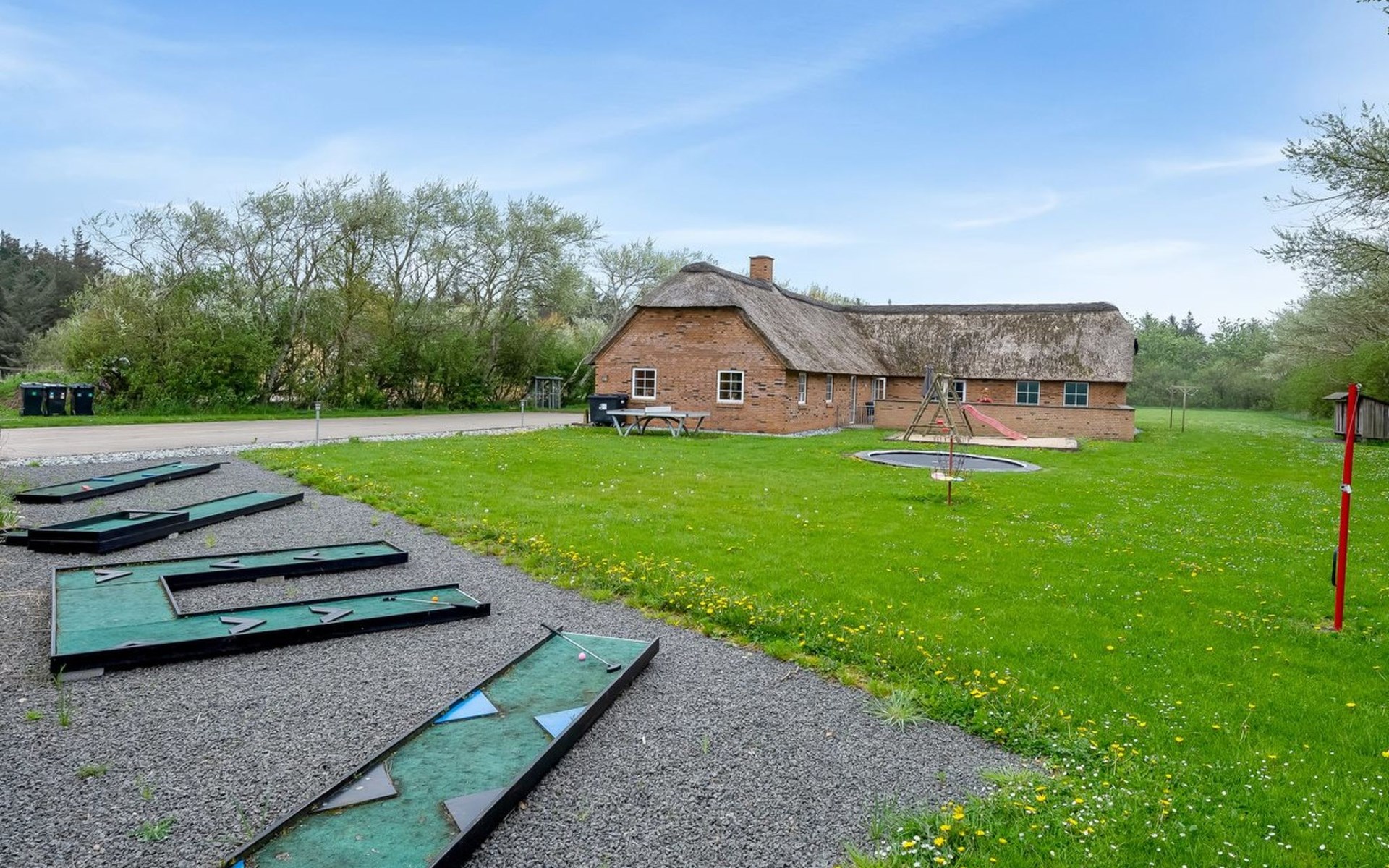 Eengezinswoning, bouwjaar 2007. 1.6 km van zee. Voor alleengebruik: wild terrein 5.000 m2, overdekt zwembad (3 x 5 m, 1.6.6 m2, 130 - 130 cm diepte). Terras (50 m2), kinderspeelplaats (schommel). In het huis: sauna, tafelvoetbal, trampoline, wasmachine, droger. Parkeerplaats bij het huis. Levensmiddelenwinkel 1 km. Golfterrein 18 km. De eigenaar accepteert geen jeugdgroepen.