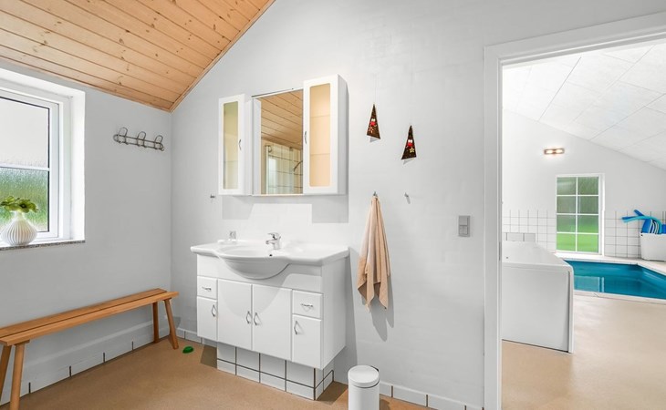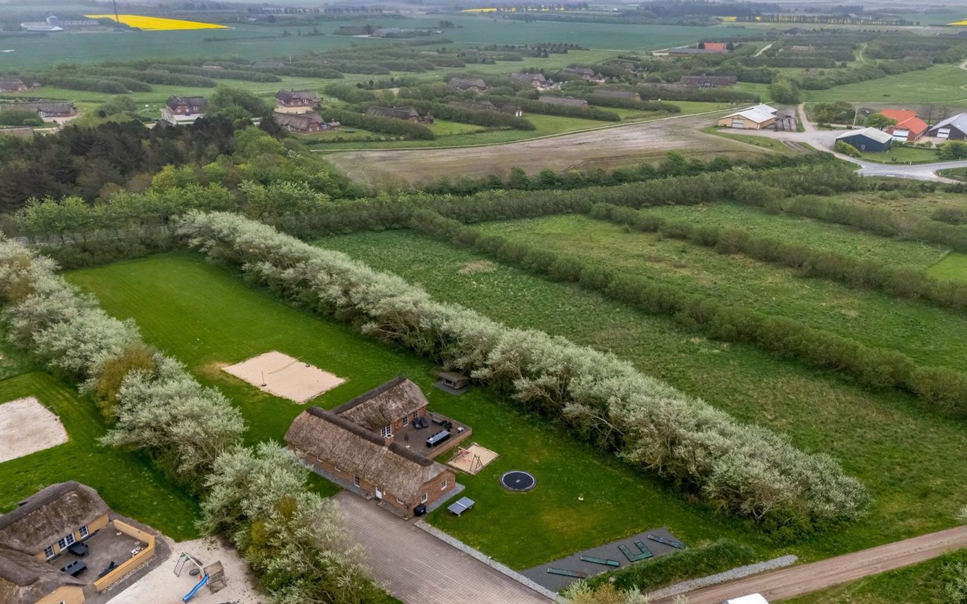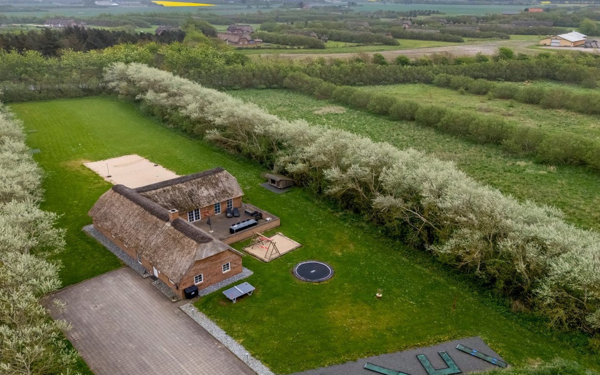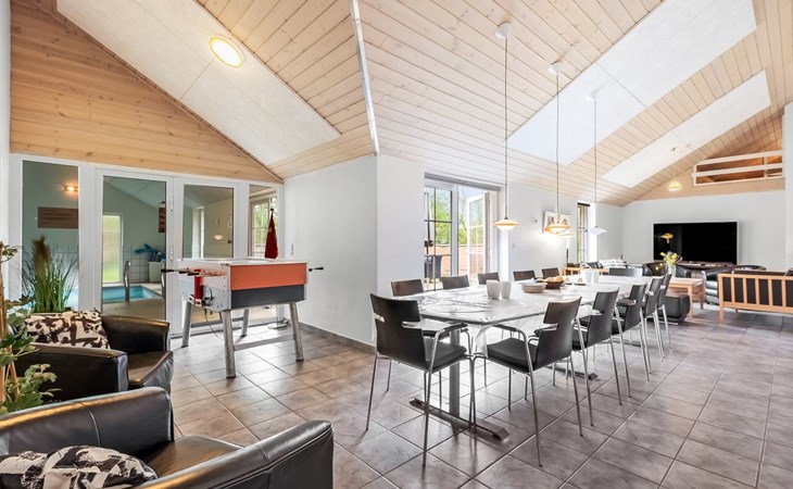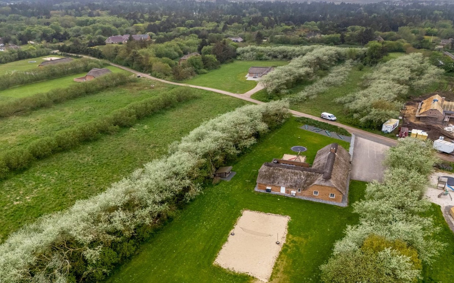 Eengezinswoning, bouwjaar 2007. 1.6 km van zee. Voor alleengebruik: wild terrein 5.000 m2, overdekt zwembad (3 x 5 m, 1.6.6 m2, 130 - 130 cm diepte). Terras (50 m2), kinderspeelplaats (schommel). In het huis: sauna, tafelvoetbal, trampoline, wasmachine, droger. Parkeerplaats bij het huis. Levensmiddelenwinkel 1 km. Golfterrein 18 km. De eigenaar accepteert geen jeugdgroepen.