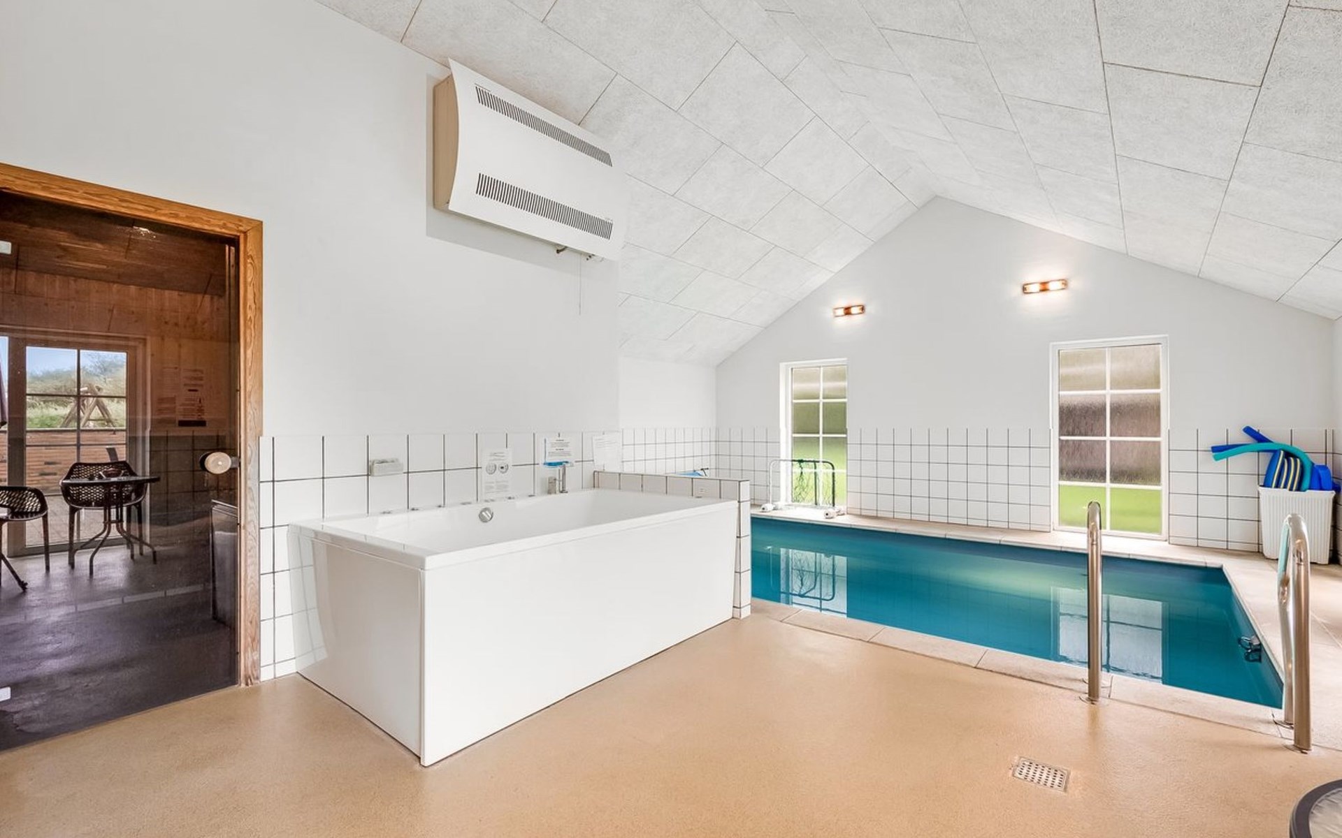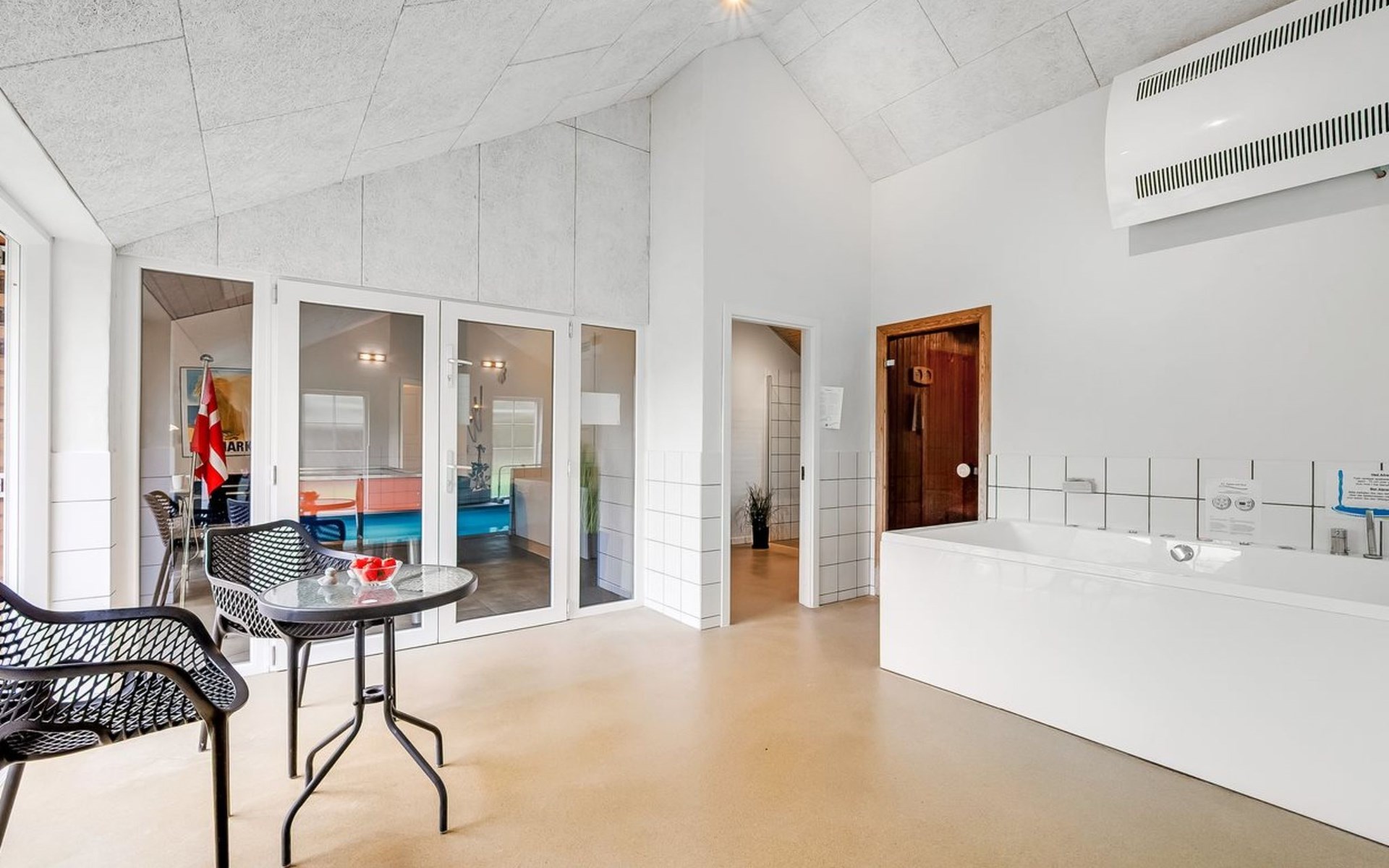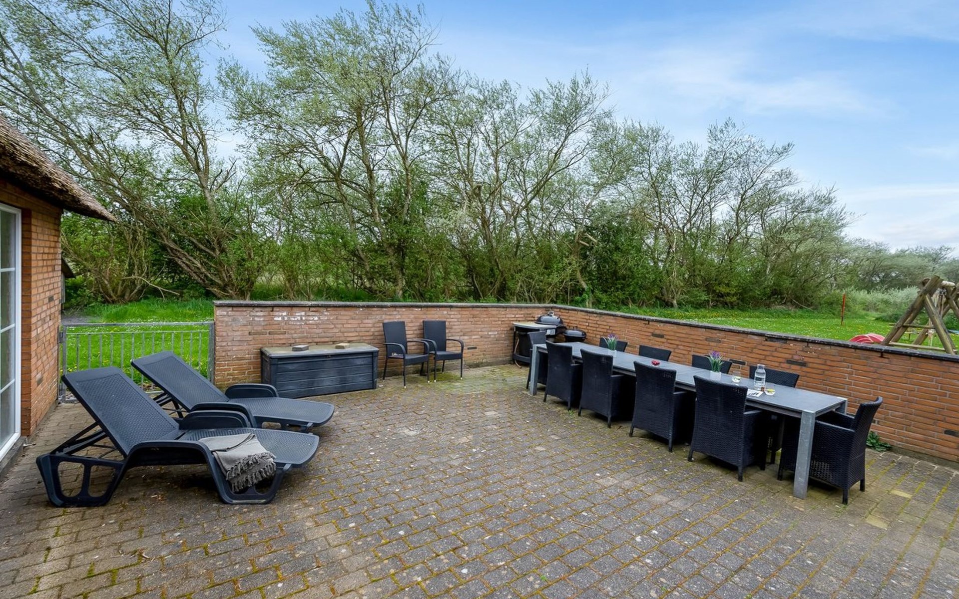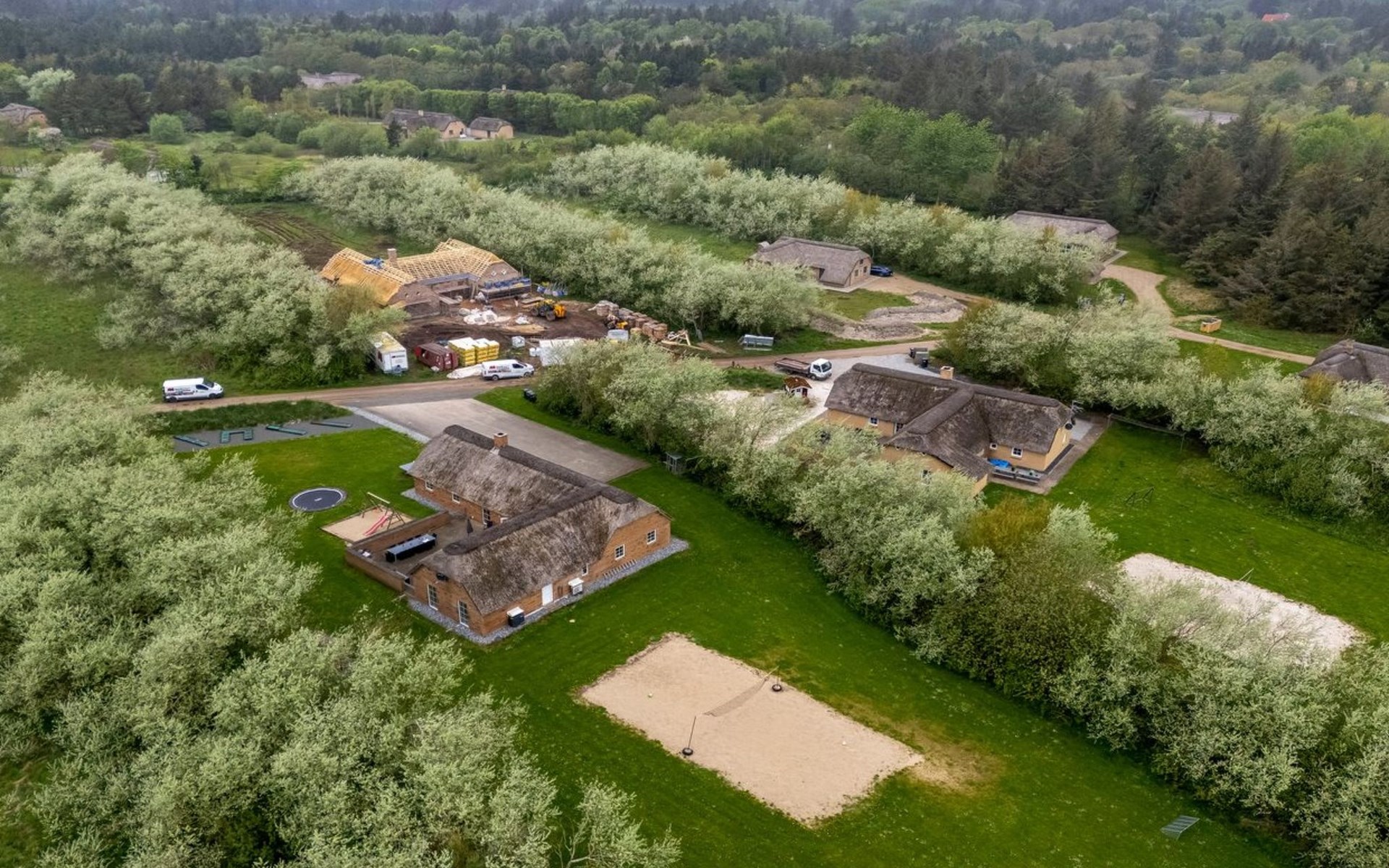 Eengezinswoning, bouwjaar 2007. 1.6 km van zee. Voor alleengebruik: wild terrein 5.000 m2, overdekt zwembad (3 x 5 m, 1.6.6 m2, 130 - 130 cm diepte). Terras (50 m2), kinderspeelplaats (schommel). In het huis: sauna, tafelvoetbal, trampoline, wasmachine, droger. Parkeerplaats bij het huis. Levensmiddelenwinkel 1 km. Golfterrein 18 km. De eigenaar accepteert geen jeugdgroepen.