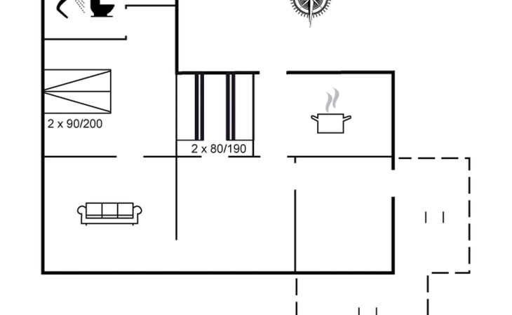 Eengezinswoning, bouwjaar 1968. 75 m van zee. Voor alleengebruik: wild terrein 100 m2. Buitendouche, terras (10 m2). In het huis: wasmachine. Parkeerplaats bij het huis. Levensmiddelenwinkel 50 m. De eigenaar accepteert geen jeugdgroepen.