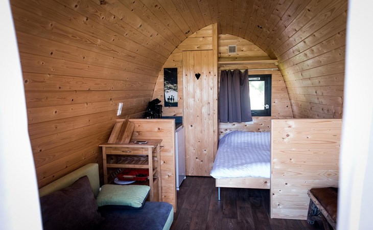 Echt uniek en knus overnachten doe je in Treelodge 2. De hut is geschikt voor 2 personen, bevindt zich op hoogte met een schitterend uitzicht over het glooiende landschap en kan bereikt worden via een trap. De Treelodge beschikt over een tweepersoonsbed en daarnaast een tweepersoonsslaapbank met televisie. Ook is er een klein keukenblok met onder andere een filter koffiezetapparaat, kleine koelkast en serviesgoed aanwezig, maar geen kooktoestel. In de hut is wel een toilet aanwezig en kun je verder gebruikmaken van de centrale sanitaire voorzieningen van het vakantiepark. In de tuin geniet op het terras met een picknicktafel en hangmat. Je kunt 1 auto parkeren bij de Treelodge en je kunt gratis verbinden met de Wi-Fi.