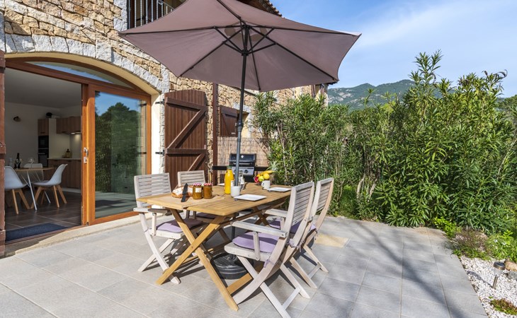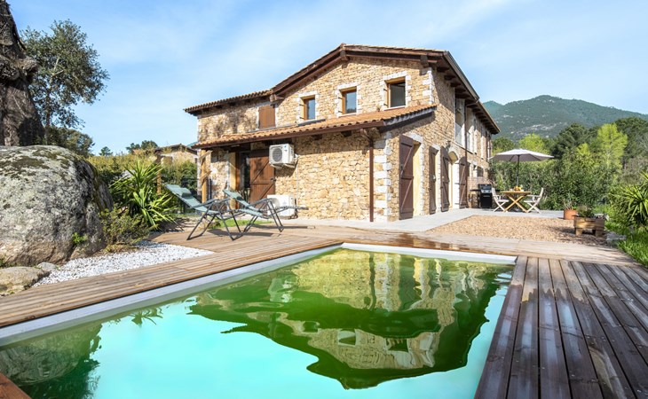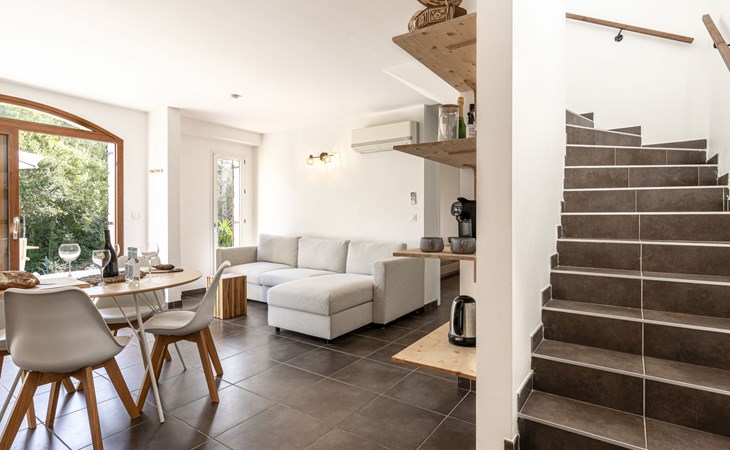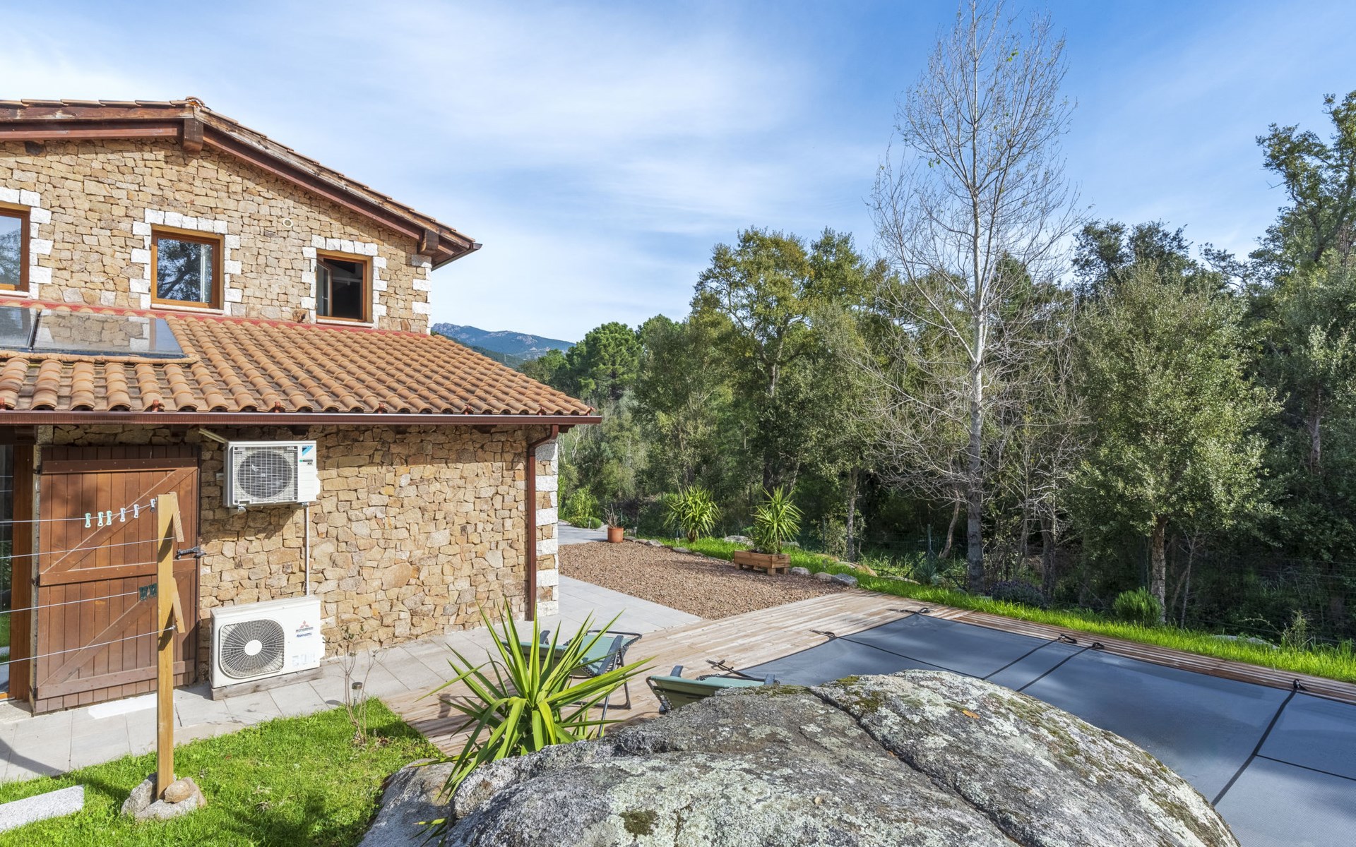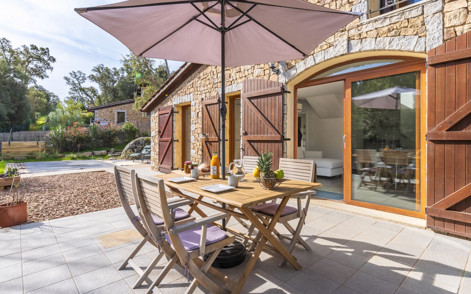 Rijtjeshuis "Casa Mela". In de wijk Mela, in de plaats Porto-Vecchio, rustige ligging, 10 km van zee, 10 km van het strand, aan een doodlopende weg. Voor alleengebruik: verzorgde tuin 270 m2 (omheind) planten en bloemen, openluchtzwembad hoekig (4 x 2 m, 150 - 150 cm diepte, seizoensgebonden beschikbaarheid: 06.Mei. - 06.Okt.). Onderhoud zwembad door de eigenaar/tuinman. Parkeerplaats op het terrein. Winkel 1.3 km, levensmiddelenwinkel 3 km, restaurant 250 m, bushalte 7.5 km, zandstrand "Plage de Cala Verde" 10 km. Jachthaven 9 km. Attracties in de buurt: Centre ville de Porto-Vecchio 9 km, Plage de Cala Verde 10 km, Plage de Palombaggia 17 km, Bonifacio 33 km, Plage de Santa Giulia 14 km. Bekende meren kunnen gemakkelijk worden bereikt: Lac de L'Ospedale 27 km. Wandelgebied Les Aiguilles de Bavella 48 km. Auto noodzakelijk. Het objekt is geschikt voor 4 volwassenen. Gesloten residentie met een elektrische deur.