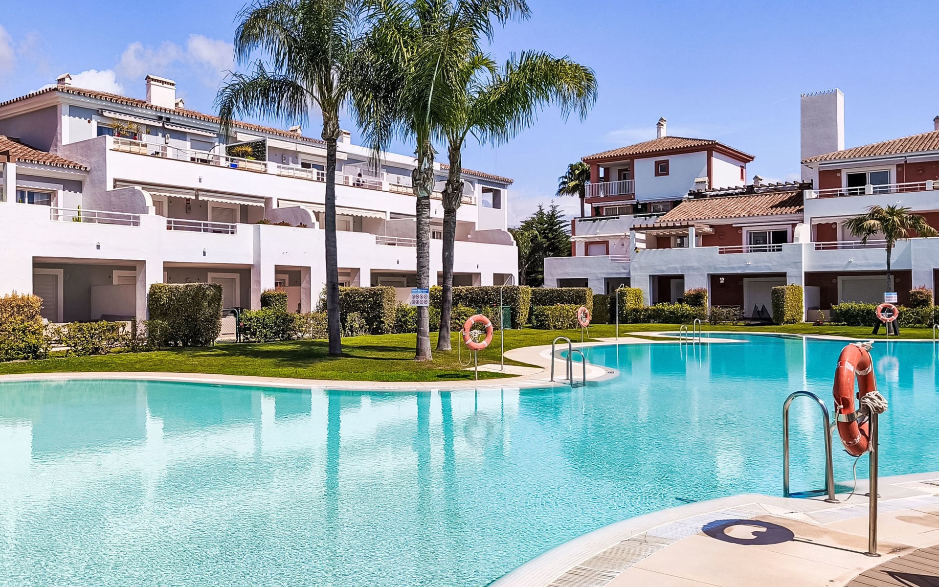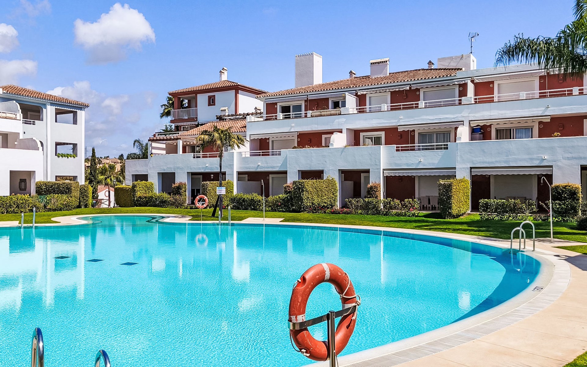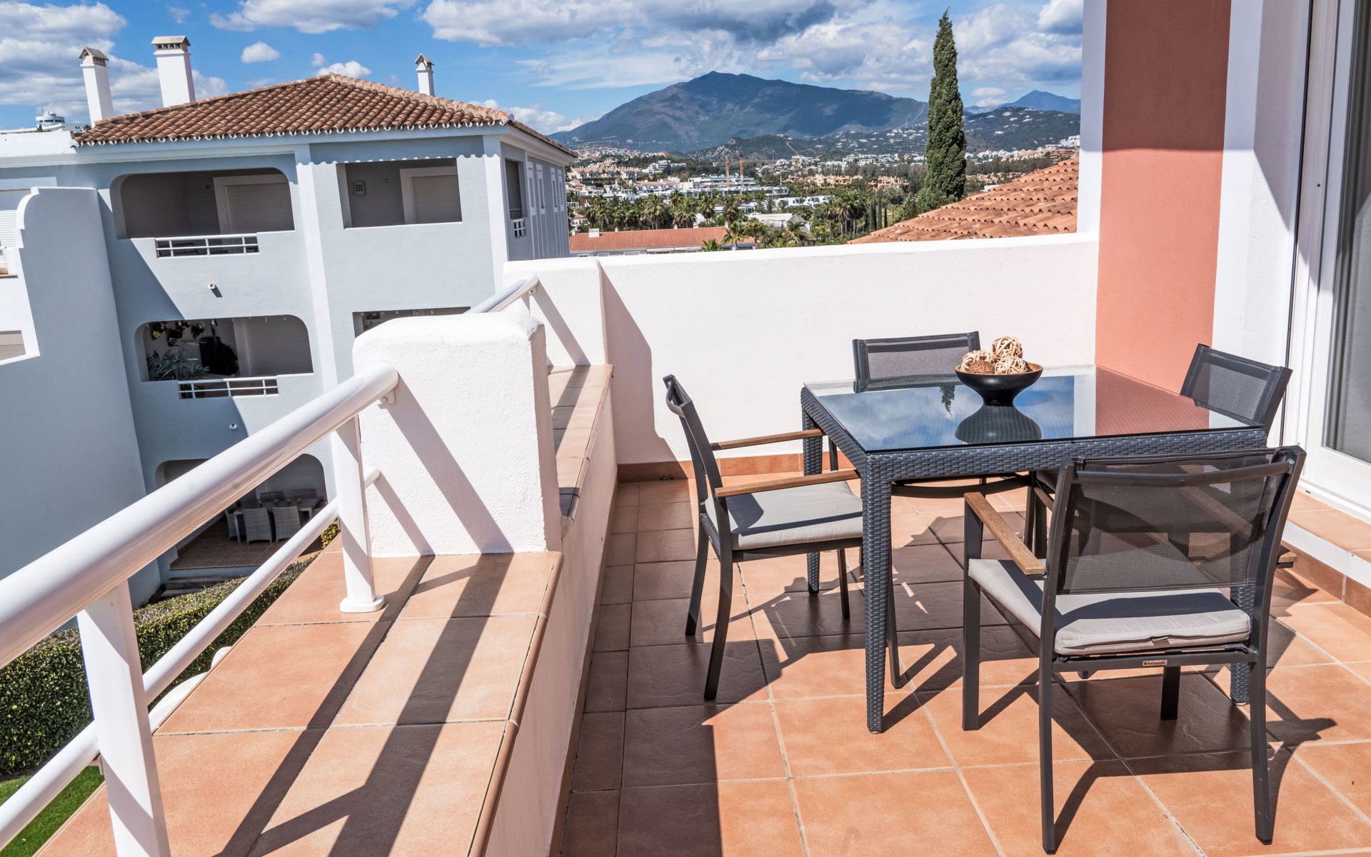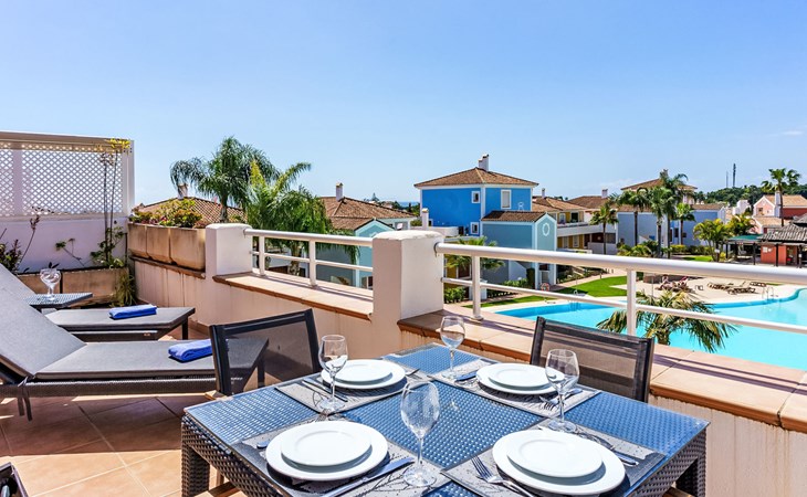 Zeer mooi, gezellig, zeer comfortabel vakantiecomplex "Cortijo del Mar", bouwjaar 2011, omgeven door bomen. 5 km van het centrum van San Pedro de Alcantara, 14 km van het centrum van Estepona, buiten de plaats, 16 km van het centrum van Marbella, in het district El Paraiso, rustige, zonnige ligging, gebied met weinig verkeer, 1.6 km van zee, 2.6 km van het strand. Voor medegebruik: tuin met gazon, wilde tuin, ligweide, openluchtzwembad niervormig (43 x 23 m, 100 - 210 cm diepte, seizoensgebonden beschikbaarheid: 01.Apr. - 15.Okt. openingstijden zwembad: 11:00-18:00 en 11:00-20:00). Douche/WC bij het zwembad, kinderzwembad, buitendouche. Winkel, supermarkt, restaurant 500 m, bushalte "El Pilar" 800 m, zandstrand "Playa Salduna" 2.6 km. Jachthaven 9 km, jachthaven 9 km, golfterrein (18 holes) 2.4 km. De eigenaar accepteert geen jeugdgroepen. Bewaakt vakantiecomplex. Vergelijkbare accommodaties kunnen worden geboekt.