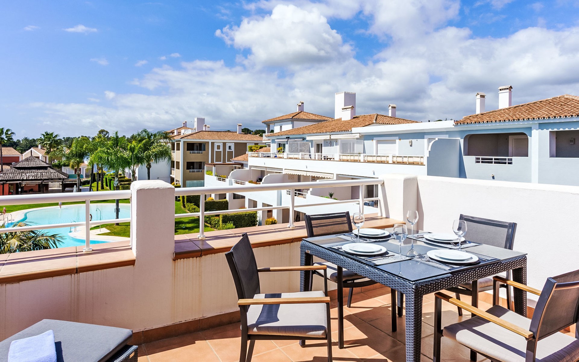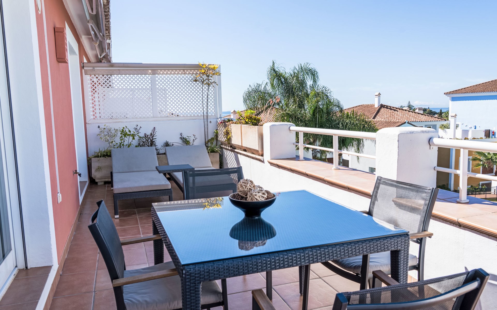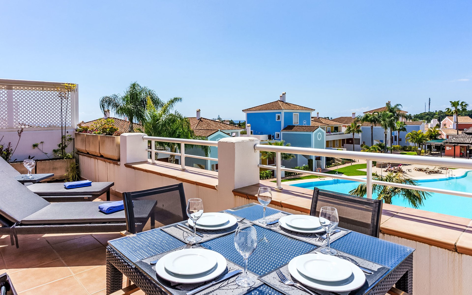 Zeer mooi, gezellig, zeer comfortabel vakantiecomplex "Cortijo del Mar", bouwjaar 2011, omgeven door bomen. 5 km van het centrum van San Pedro de Alcantara, 14 km van het centrum van Estepona, buiten de plaats, 16 km van het centrum van Marbella, in het district El Paraiso, rustige, zonnige ligging, gebied met weinig verkeer, 1.6 km van zee, 2.6 km van het strand. Voor medegebruik: tuin met gazon, wilde tuin, ligweide, openluchtzwembad niervormig (43 x 23 m, 100 - 210 cm diepte, seizoensgebonden beschikbaarheid: 01.Apr. - 15.Okt. openingstijden zwembad: 11:00-18:00 en 11:00-20:00). Douche/WC bij het zwembad, kinderzwembad, buitendouche. Winkel, supermarkt, restaurant 500 m, bushalte "El Pilar" 800 m, zandstrand "Playa Salduna" 2.6 km. Jachthaven 9 km, jachthaven 9 km, golfterrein (18 holes) 2.4 km. De eigenaar accepteert geen jeugdgroepen. Bewaakt vakantiecomplex. Vergelijkbare accommodaties kunnen worden geboekt.