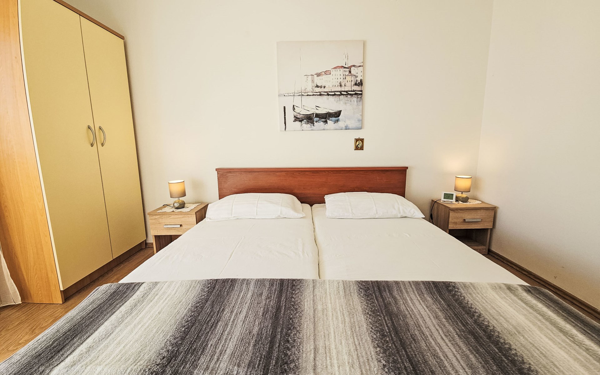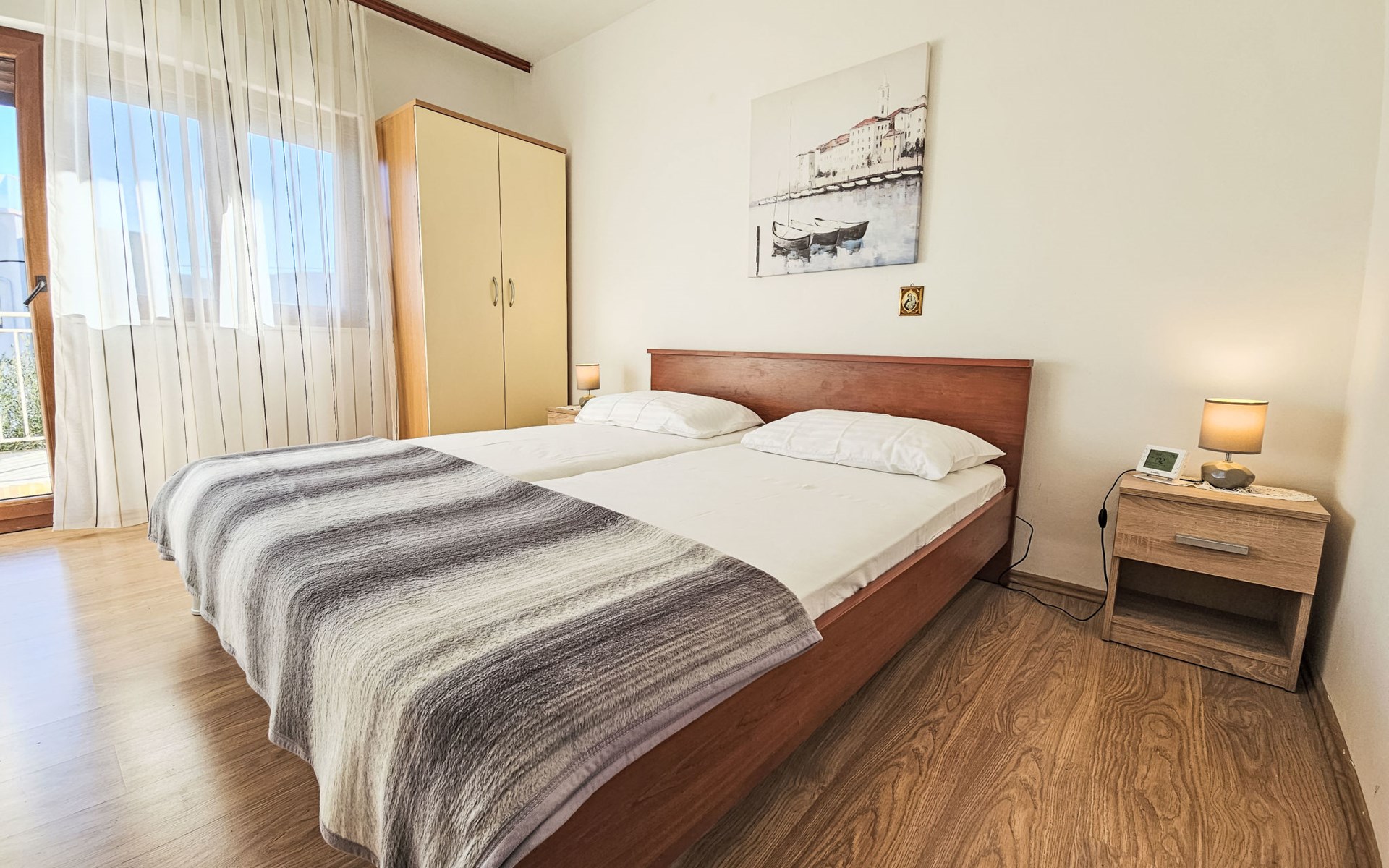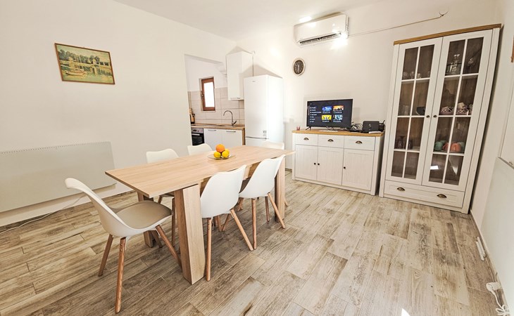 Eengezinswoning "Palada". 700 m van het centrum van Marina, rustige, zonnige ligging, 500 m van zee, 1 km van het strand, aan een doodlopende weg. Voor alleengebruik: terrein 400 m2 (omheind), openluchtzwembad hoekig (7 x 3 m, 150 - 170 cm diepte, seizoensgebonden beschikbaarheid: 01.Mei. - 01.Okt.) met trap. Buitendouche, terras (30 m2), tuinmeubelen, barbecue. In het huis: internetaansluiting, wasmachine. Parkeerplaats (voor 2 auto's) bij het huis op het terrein. Winkel 500 m, restaurant 800 m, bushalte 400 m, kiezelstrand 1 km, rotsstrand 1 km. Jachthaven 600 m, tennis 10 km.