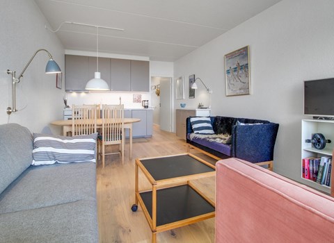 De bezienswaardigheden van de mooie kunstenaarsstad Skagen liggen op loopafstand van de flat, aangezien deze praktisch centraal gelegen is. De inrichting maakt de flat tot een mooi en uitnodigend vakantiehuis. Voor de gezellige woonkamer ligt het open terras op het zuidwesten, waar u heerlijke maaltijden kunt bereiden op de barbecue in het gezelschap van uw familie of vrienden.
