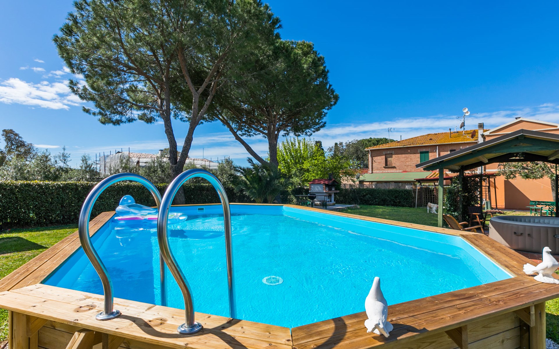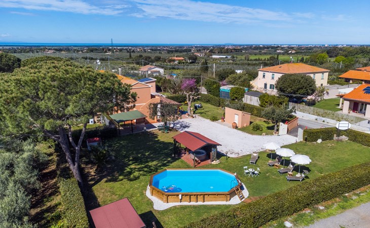 Cottage "La Casina", van 2 verdiepingen, eenzijdig aangebouwd. 2 appartementen in de woning. 7 km van het centrum van Cecina, 7 km van het centrum van Bibbona, rustige, zonnige ligging, 7 km van zee. Voor medegebruik: terrein 700 m2 (omheind) met gazon en bomen, openluchtzwembad (verhoogd) (10 x 5 m, 140 - 140 cm diepte, seizoensgebonden beschikbaarheid: 01.Apr. - 04.Nov.). Buitendouche, hot tub. In het huis: wasmachine (extra). Parkeerplaats (voor 3 auto's) op het terrein. Winkel 4 km, supermarkt 5 km, restaurant 4 km, bushalte "V. Della Macchia, Aurelia" 3 km, zandstrand "Marina di Cecina" 7 km. Attracties in de buurt: Bolgheri 12 km, Livorno 45 km, Pisa 60 km, Lucca 80 km. Auto noodzakelijk. De eigenaar accepteert geen jeugdgroepen.