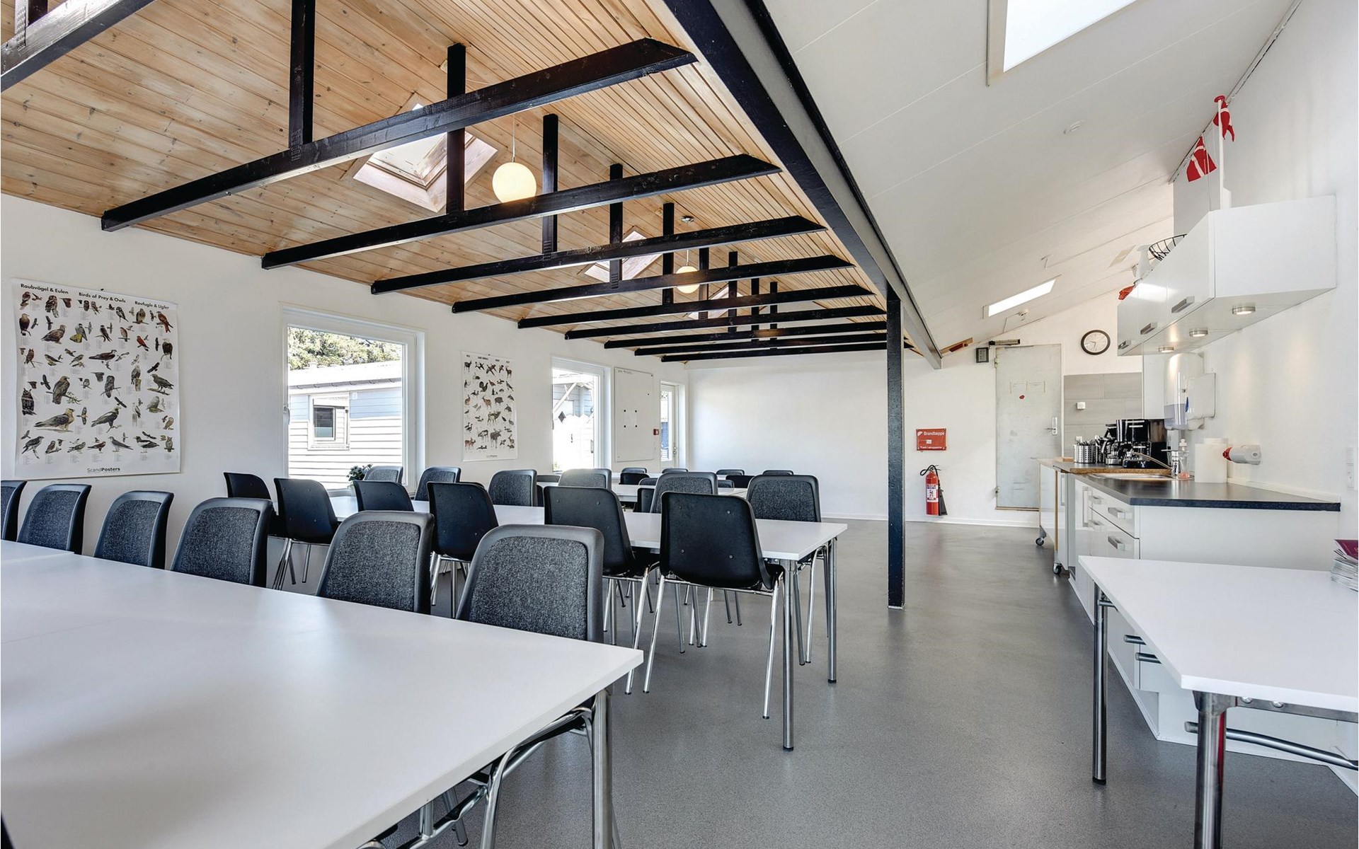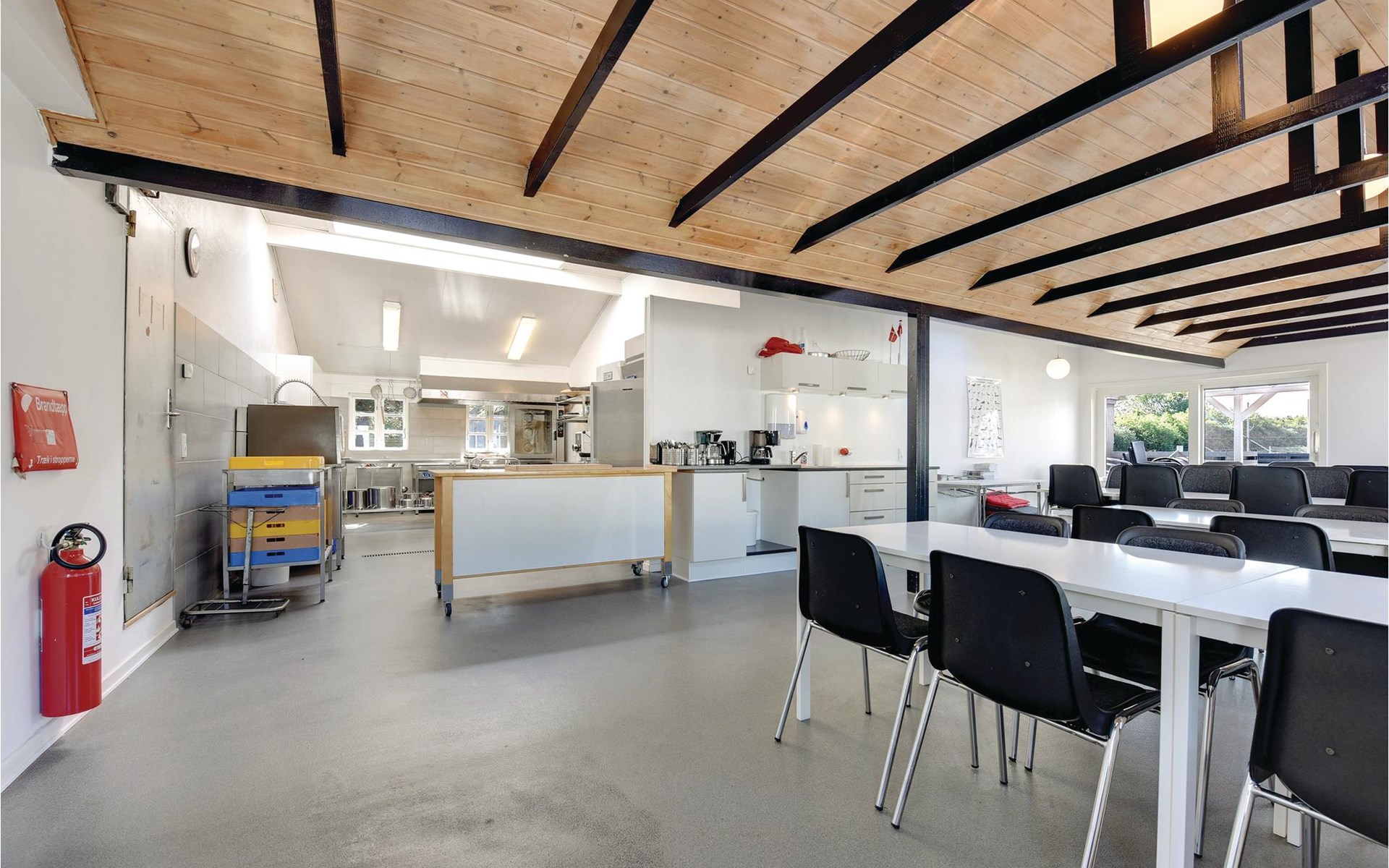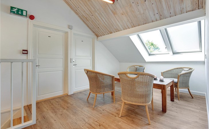 In de keuken kunt u gezellig samen eten. Stinne, de huishoudster, helpt u graag om alles op orde te krijgen in de grote keuken. Als u maar met een paar personen bent, is er een kleinere keuken waar u uw maaltijden kunt bereiden. Als het weer het toelaat, is er ook een mooie barbecueplaats buiten.