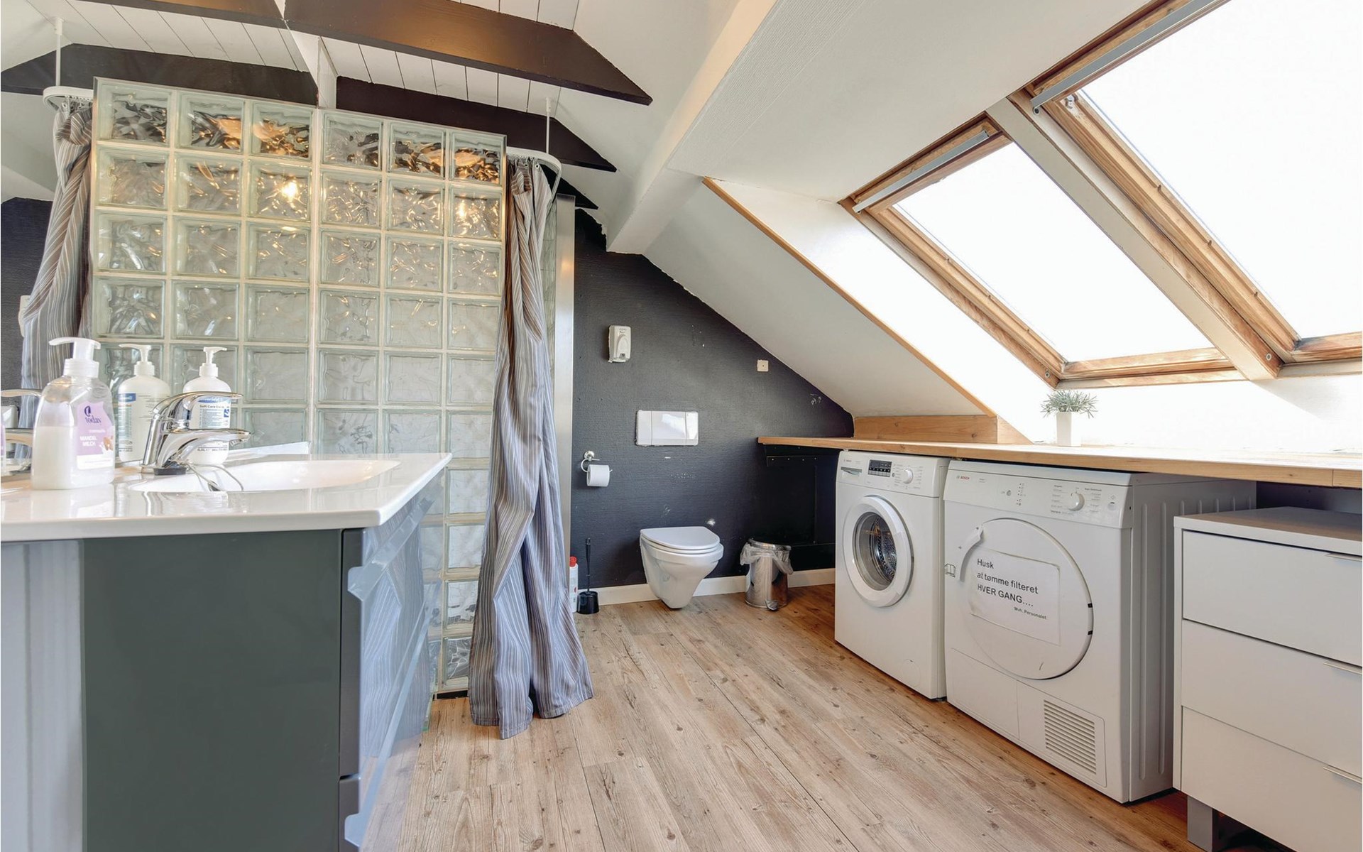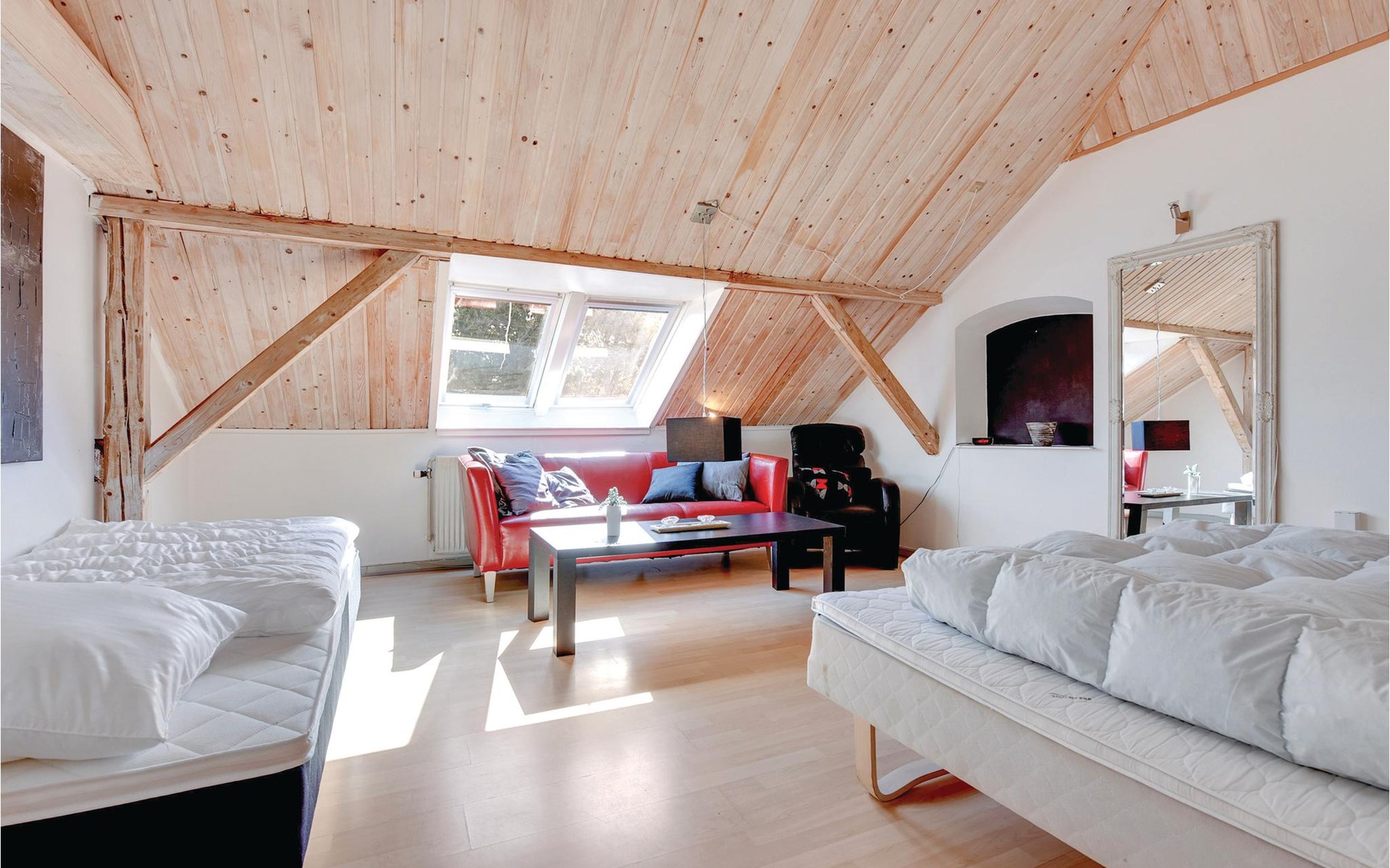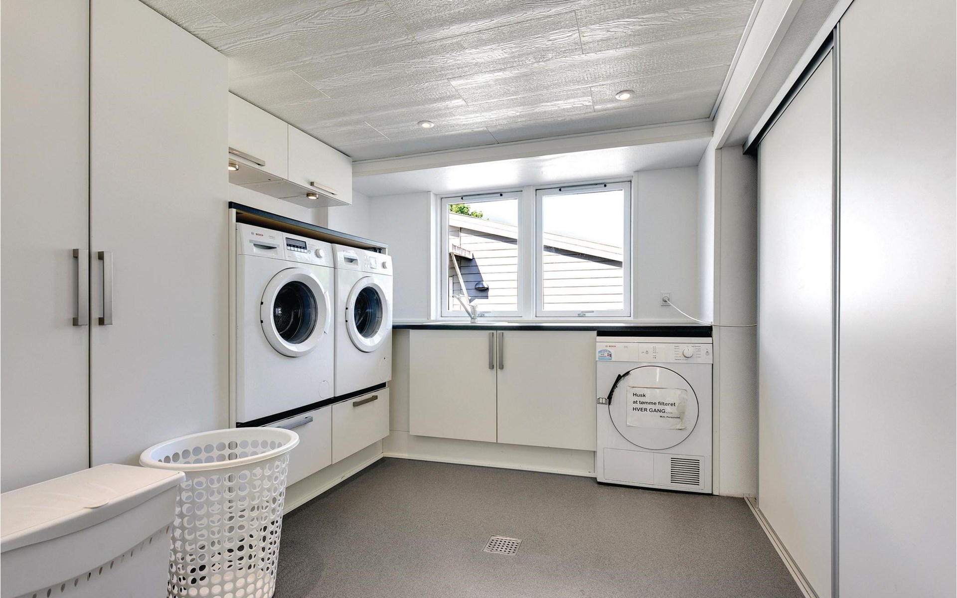 In de keuken kunt u gezellig samen eten. Stinne, de huishoudster, helpt u graag om alles op orde te krijgen in de grote keuken. Als u maar met een paar personen bent, is er een kleinere keuken waar u uw maaltijden kunt bereiden. Als het weer het toelaat, is er ook een mooie barbecueplaats buiten.