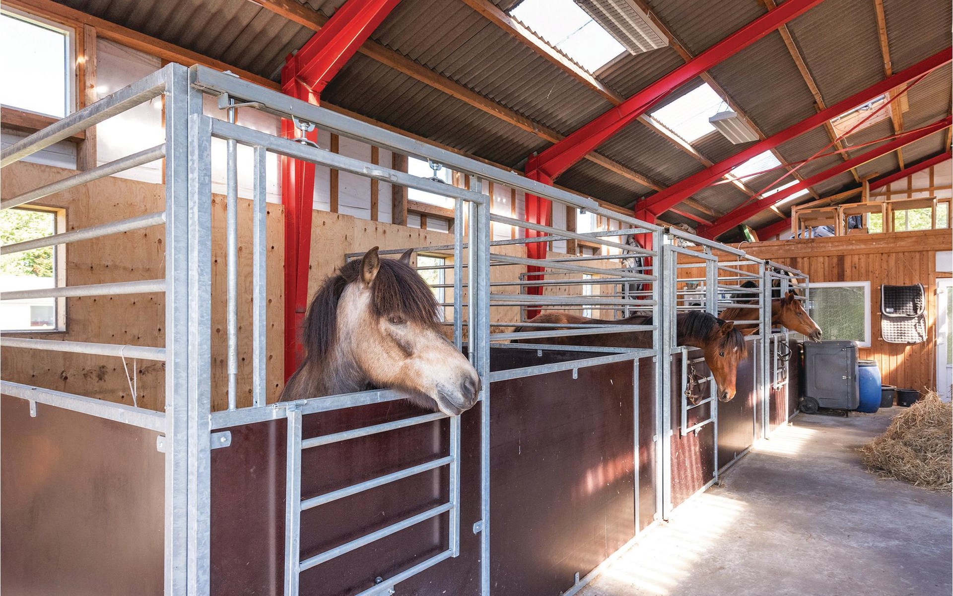 Er zijn paarden, honden en kippen op het terrein. Alle dieren zijn erg vriendelijk en klaar voor actie. Het is een aangename activiteit om uw koffie op de bank te nemen en ervan te genieten terwijl u naar de paarden kijkt die op het gras knabbelen.
