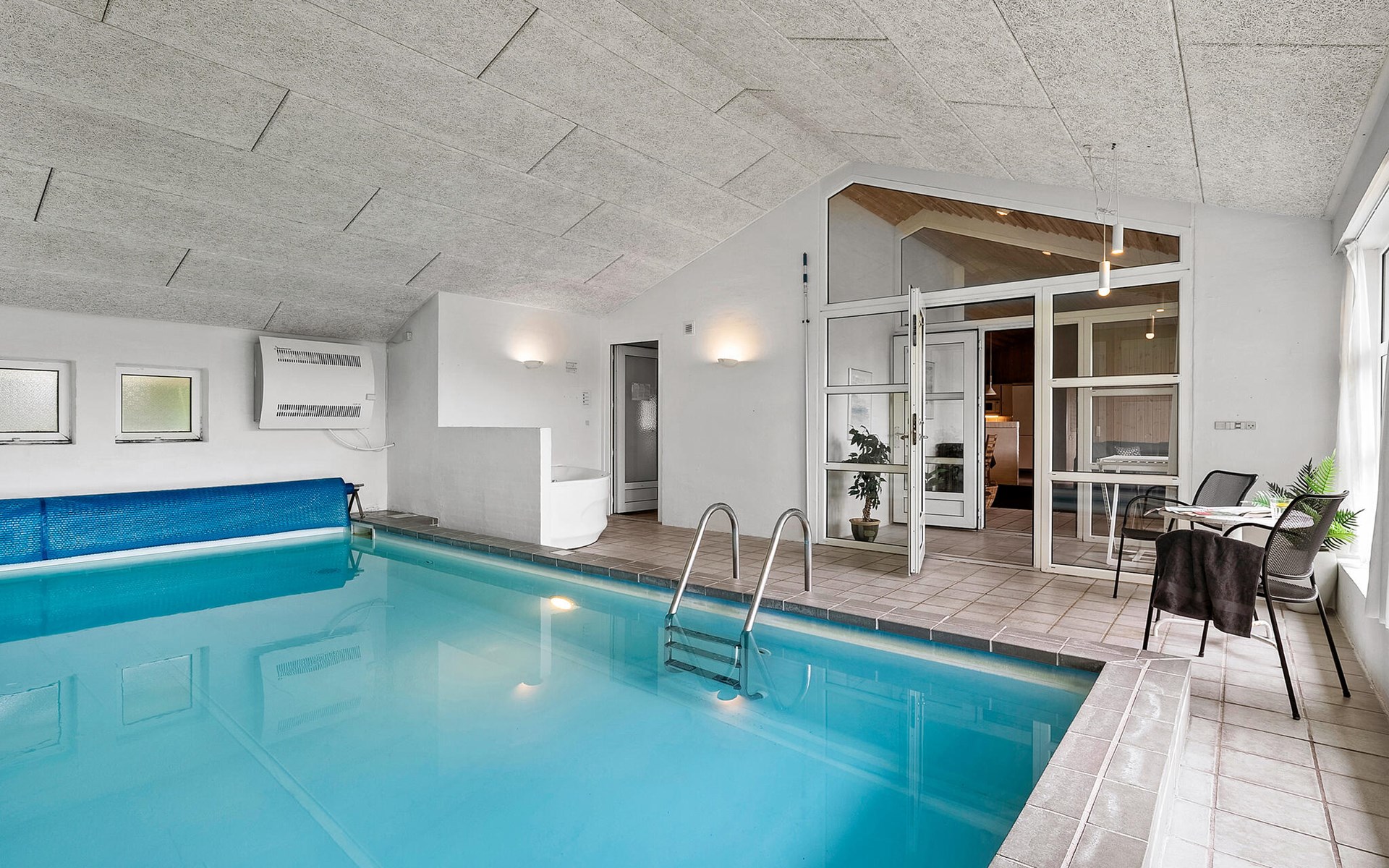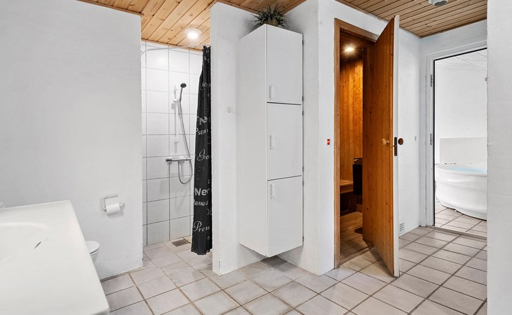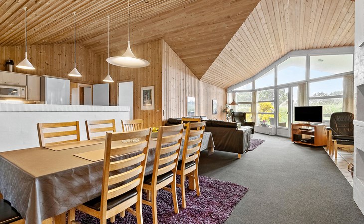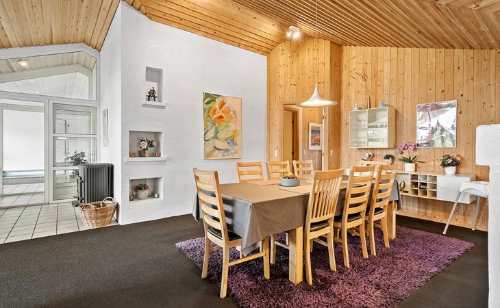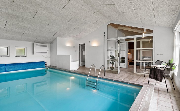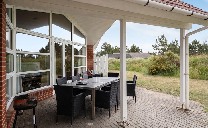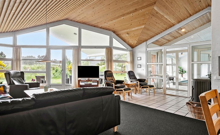 Groot, mooi vakantiehuis met zwembad, in het hart van Blåvand. Het huis is ruim opgezet, zodat er genoeg ruimte is voor iedereen. Als middelpunt van het huis ligt de gezellige woonkamer, gecombineerd met de keuken, van waaruit het hele gezin de verschillende activiteiten kan volgen. Als de kinderen willen zwemmen in het zwembad, zijn hun activiteiten te volgen door de vensterruit vanuit de woonkamer. Buiten zijn er goede terrassen; een overdekt en een gesloten terras waar er meer windbescherming is om ongestoord te kunnen zonnen. De kinderen kunnen spelen op het prachtige terrein. Het huis ligt een paar meter van het centrum van Blåvand, waar veel winkels en restaurants zijn, en vele zijn het hele jaar geopend.
