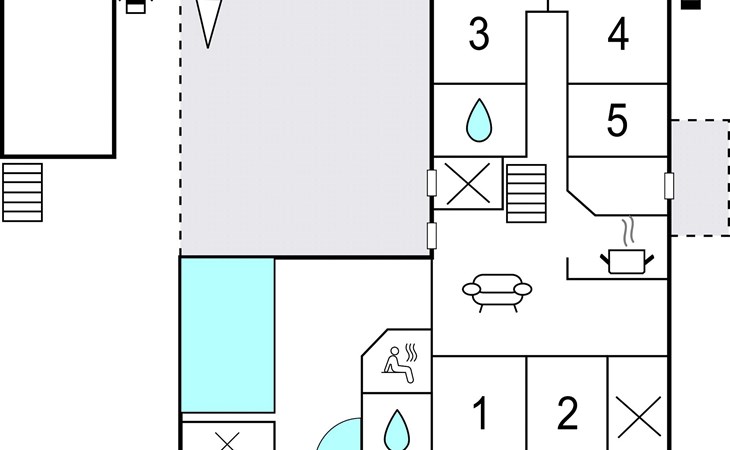 Er is een open keuken-woonkamer die overgaat in de woonkamer met een gezellige houtkachel. Het heeft 5 mooie slaapkamers, een open slaapzolder met 4 matrassen, en twee badkamers. In de grote zwembadkamer vindt u het zwembad met glijbaan en tegenstroomsysteem, evenals de sauna en een whirlpool.