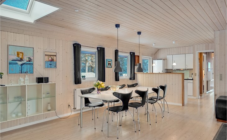 Dit comfortabele vakantiehuis in de buurt van Vejers Strand biedt je alles wat je nodig hebt voor een ontspannen verblijf met zijn ruime zwembad, whirlpool en sauna. De gezellige eetkeuken met houtkachel nodigt uit om samen tijd door te brengen, terwijl de grote terrassen, waarvan sommige overdekt, je uitnodigen om te genieten van de frisse lucht. Het huis ligt op een ruim natuurperceel in de buurt van een ongerepte bosrijke omgeving en is uitgerust om energie te besparen. Geniet van de lichte kamers en de smaakvolle inrichting, die zorgen voor ontspanning en een gevoel van welzijn.