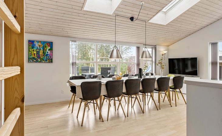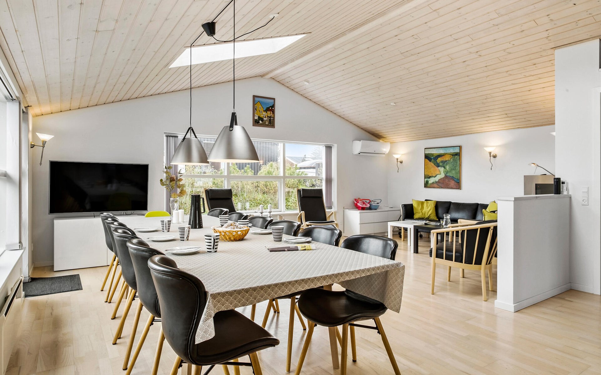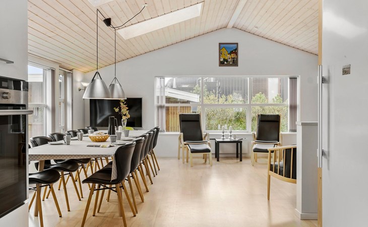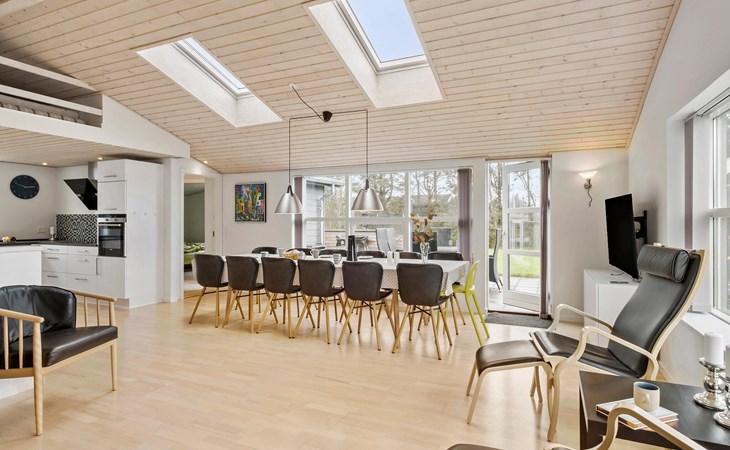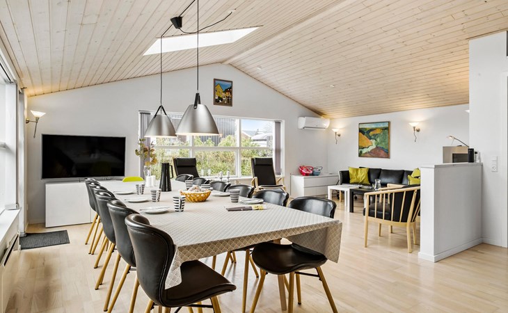 Je ruime vakantiehuis is ideaal voor vakanties met meerdere generaties of vriendenfamilies. Het ligt in Lønstrup aan de Deense Noordzeekust en biedt zowel binnen als buiten veel ruimte om samen tijd door te brengen en om je individueel terug te trekken. Maak het jezelf gemakkelijk in de lichte woonkamer met grote ramen en open plafondconstructie. Gebruik de zithoek voor ontspannende uren bij de houtkachel of verzamel je rond de lange eettafel. Kook samen in de keuken en gebruik het grote werkoppervlak om culinaire meesterwerken te bereiden.