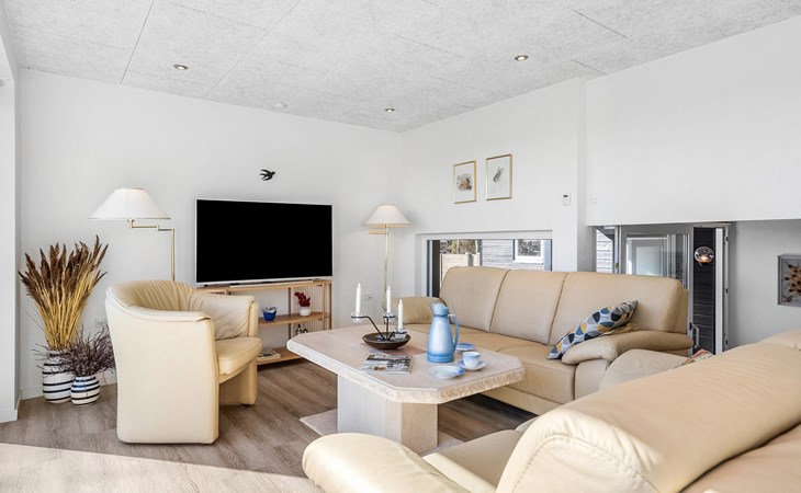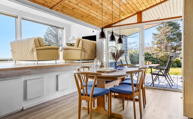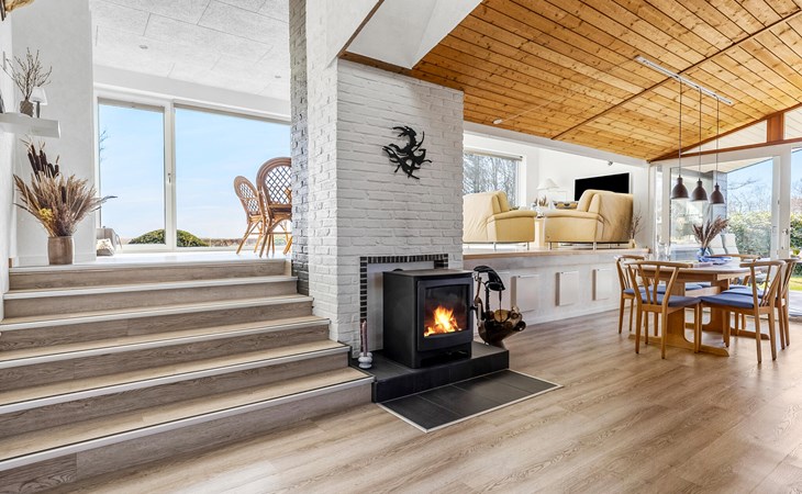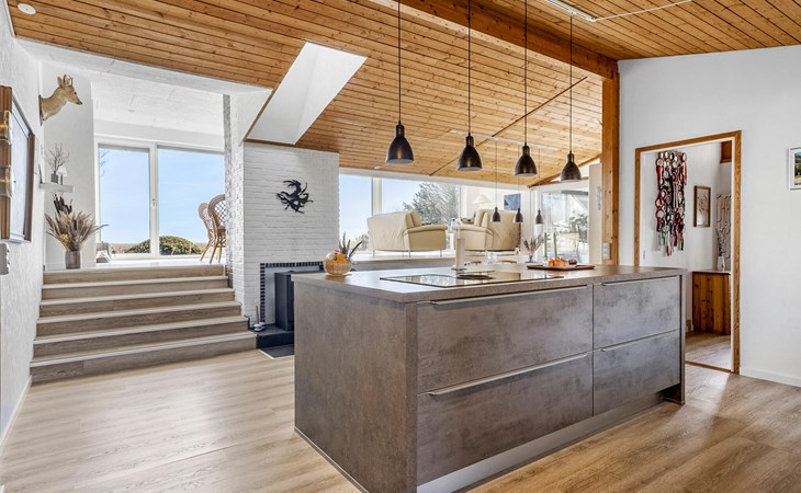 Geniet van ontspannende vakantiemomenten in dit gezinsvriendelijke vakantiehuis, op slechts een steenworp afstand van de baai van Aalborg. Omgeven door kustlandschap en frisse zeelucht biedt het huis ideale omstandigheden voor ontspannen dagen met jong en oud. Maak het jezelf gemakkelijk en organiseer je vrije tijd naar wens. Het woongedeelte met verspringende niveaus en grote panoramische ramen vormt het centrum van het huis. Hier kun je leuke spelletjes spelen, ontspannen of gewoon samen zijn. Bereid je maaltijden in de stijlvolle keuken.