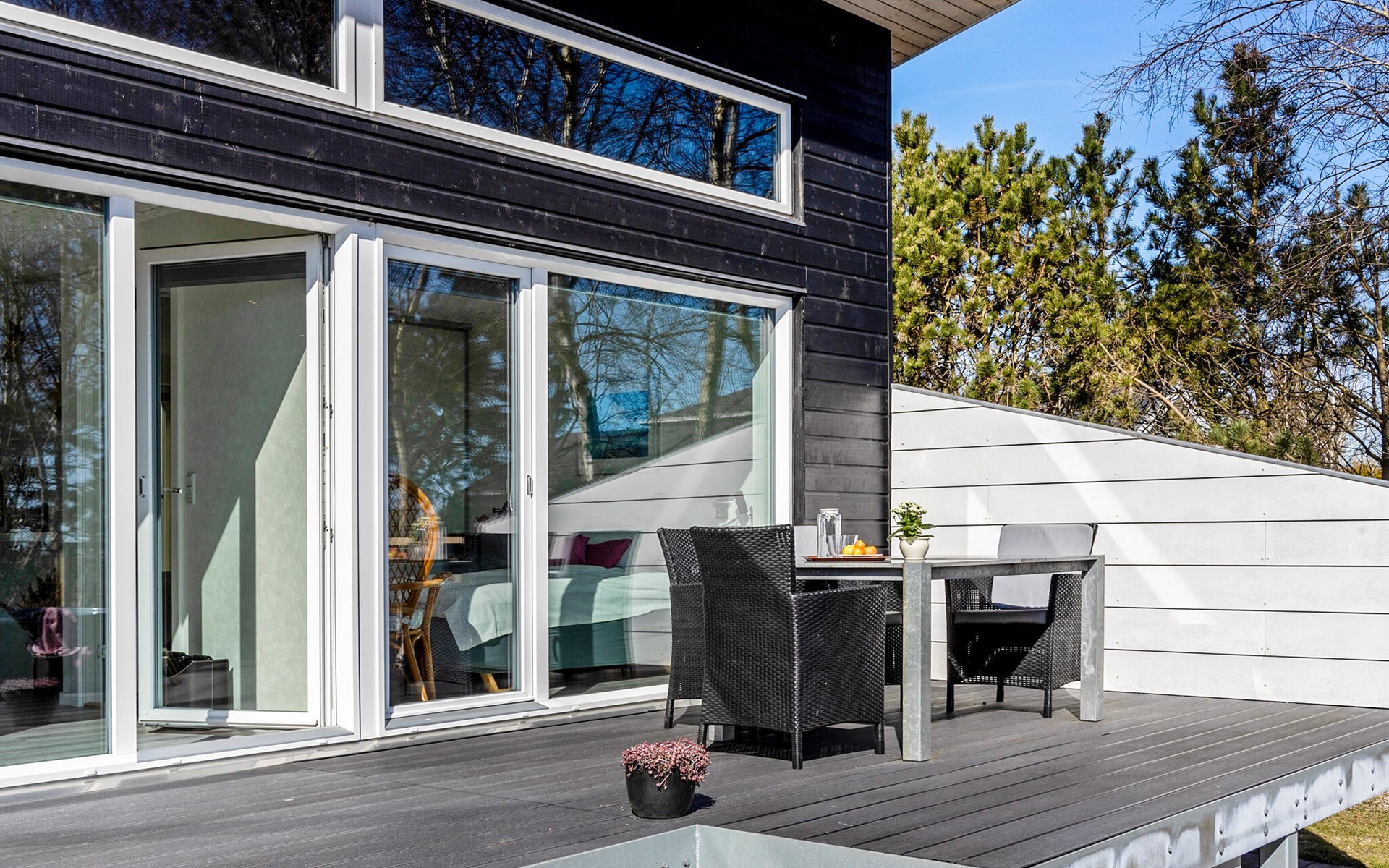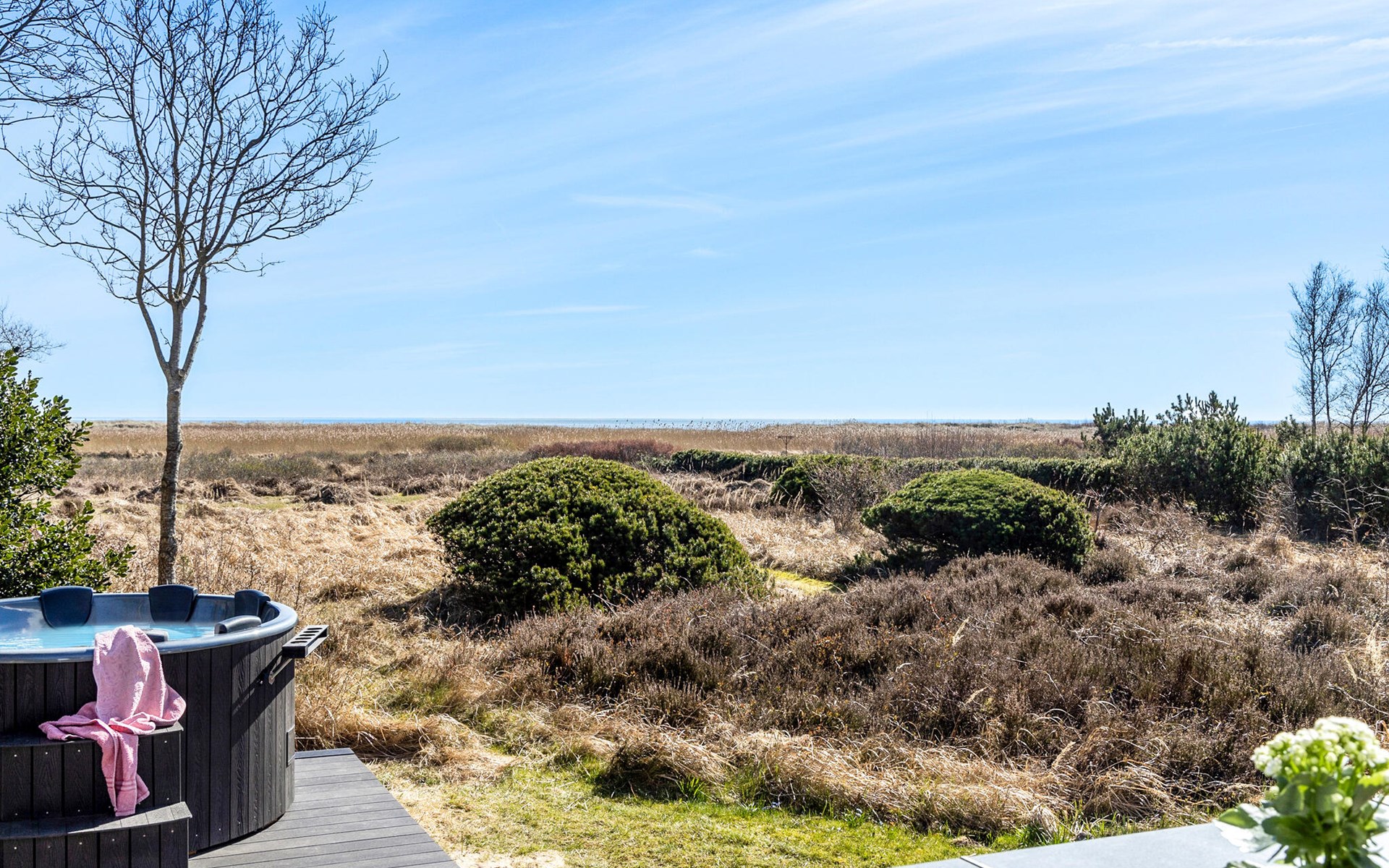 Neem je koffie mee naar buiten op het terras. Er is hier een plek voor iedereen, of je nu wilt kletsen in de zon of wilt genieten van een ontspannen diner in de buitenlucht. Ontspan in het Finse houten bad en geniet van het weidse uitzicht tot aan de zee.