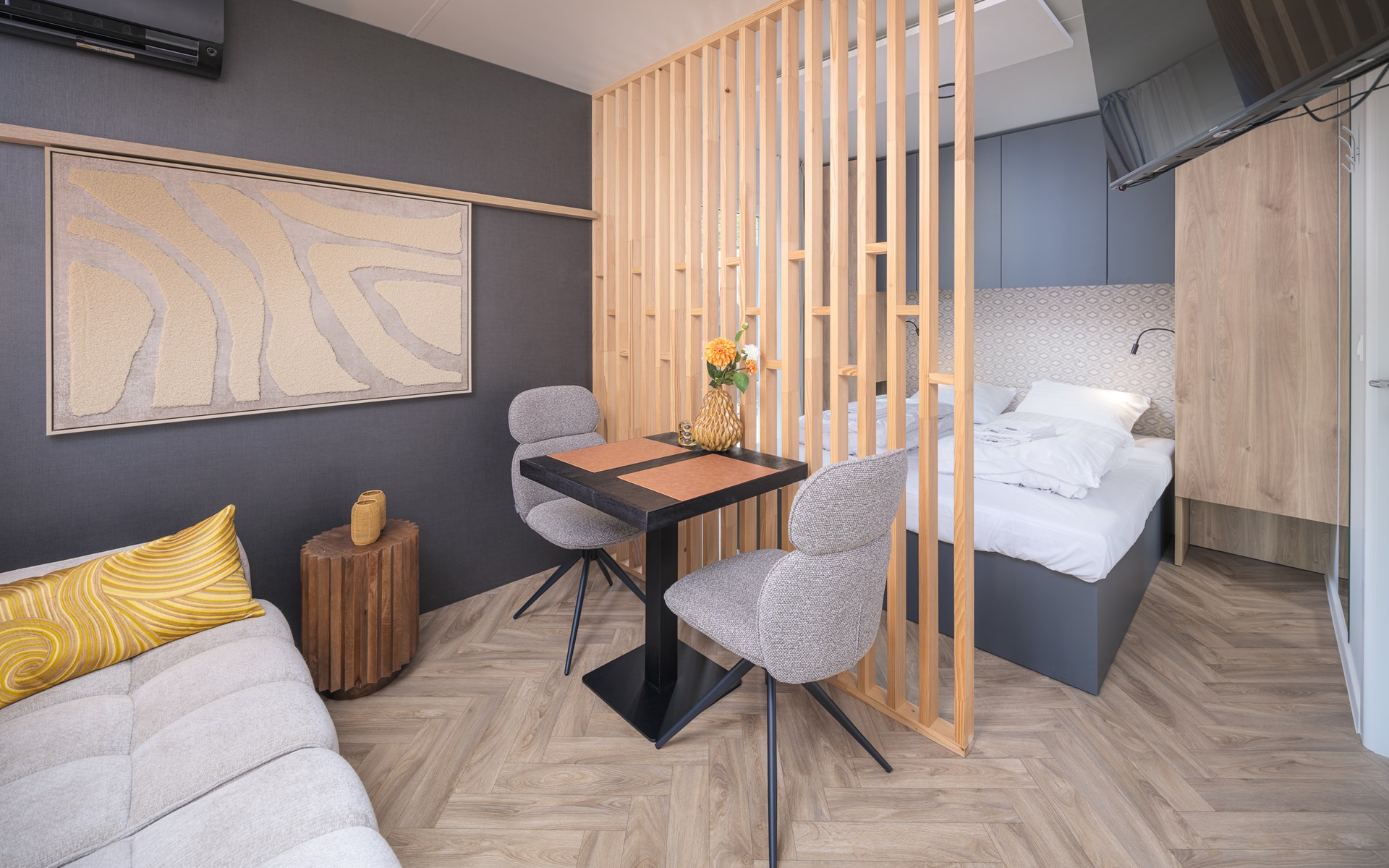 Midden in het adembenemende landschap van Luxemburg ligt Resort Walsdorf, een vakantiepark dat luxe en natuur perfect samenbrengt. Deze sfeervolle Tiny Lodge is een gelijkvloerse accommodatie speciaal ontworpen voor 2 personen – ideaal voor een romantisch en ontspannen verblijf.